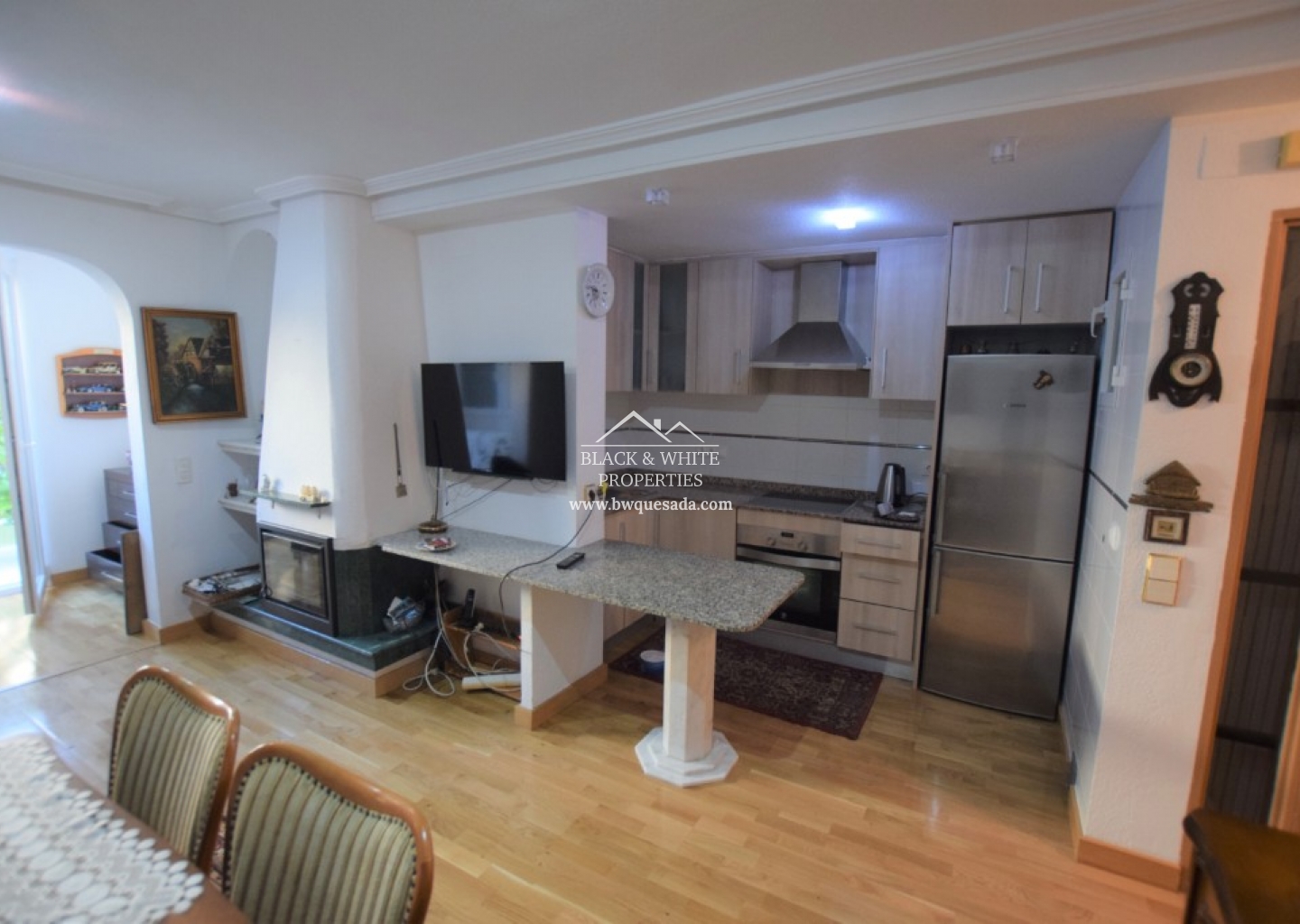 Este apartamento en planta baja de un dormitorio y un baño está situado en Pórtico Mediterráneo, Guardamar del Segura. A través de la puerta principal, se abre a un salón/comedor de planta abierta que integra la cocina con barra desayunadora. Desde el salón se accede a una pequeña terraza orientada a la piscina comunitaria. El apartamento se completa con una zona de lavadero/trastero con acceso desde la terraza. El apartamento se beneficia de un split de aire acondicionado y una chimenea.