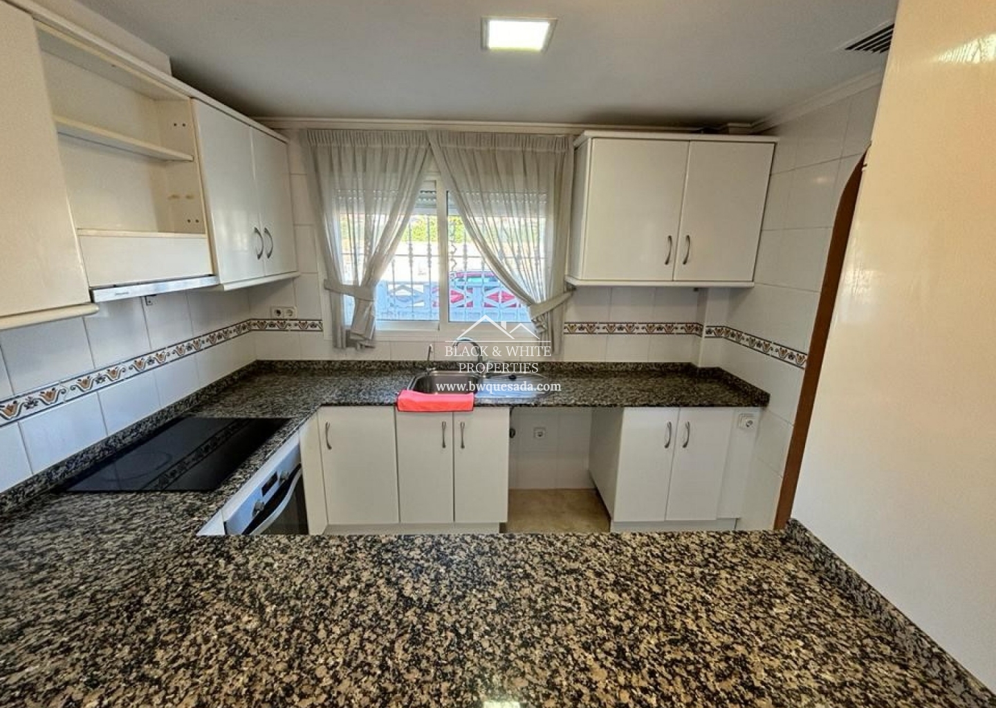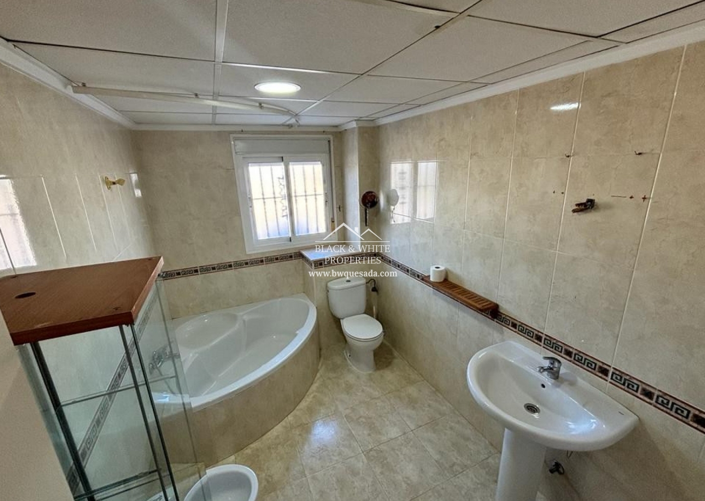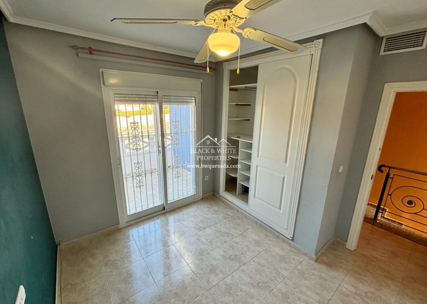 Aquí tenemos esta fantástica super lola de 3 habitaciones 3 baños distribuida en 3 plantas, planta alta 2 habitaciones 1 baño completo terraza delantera y trasera. Cuarto de baño de nivel medio, salón, cocina con terraza cubierta con vistas a la piscina. Dormitorio en la planta baja, cuarto de baño con ducha y salón abierto con cocina. Patio trasero con área de servicios públicos. En general, esta gran propiedad necesita algo de cariño y algunas actualizaciones, pero sería adecuada para una familia numerosa para vacaciones o para vivir a tiempo completo. a sólo un corto paseo tanto de la ciudad de Quesada como de los servicios locales.