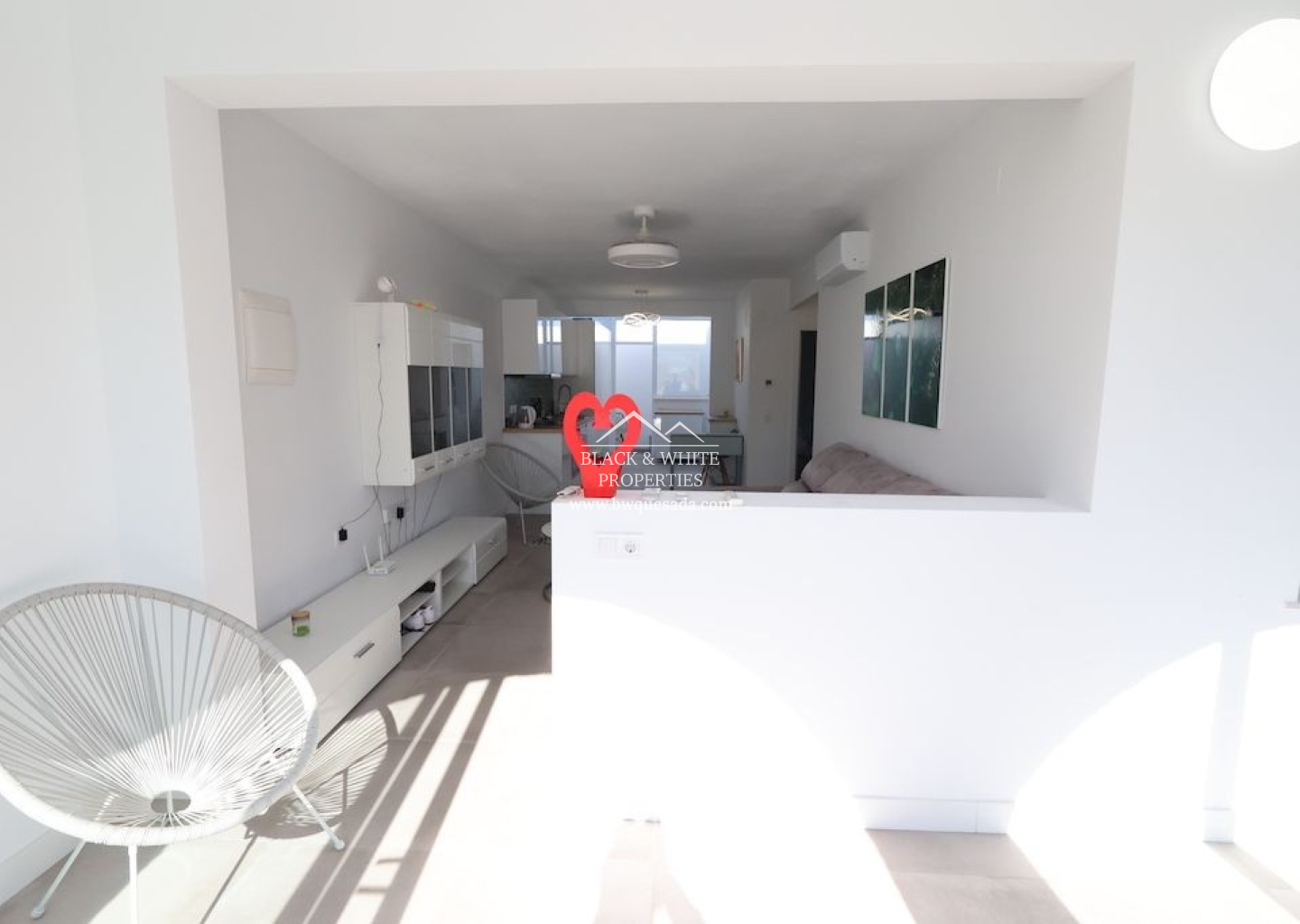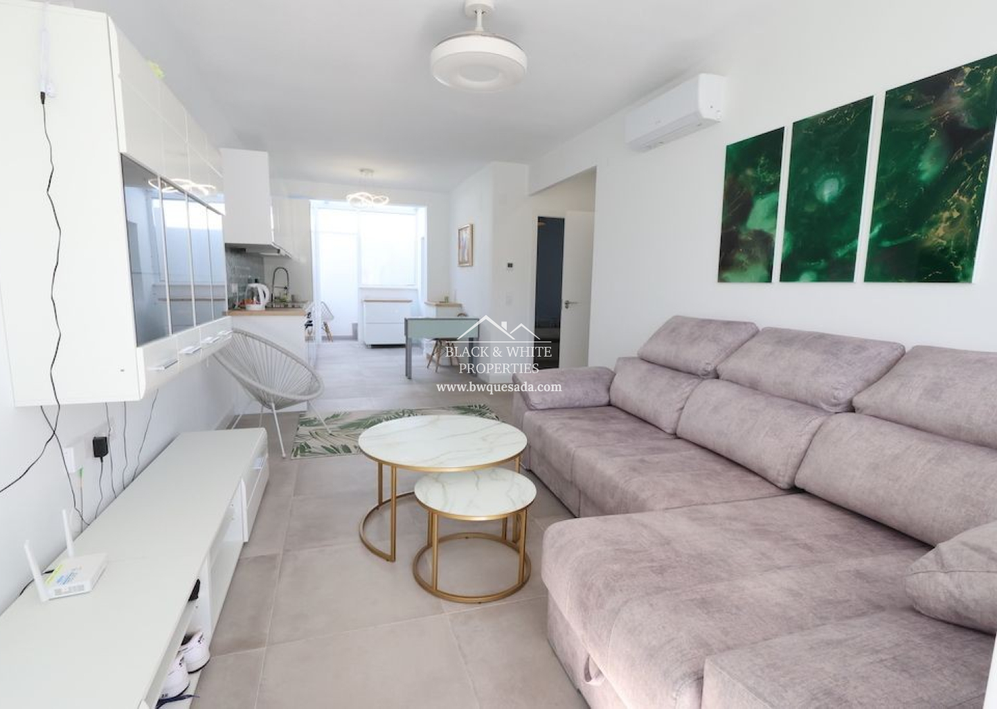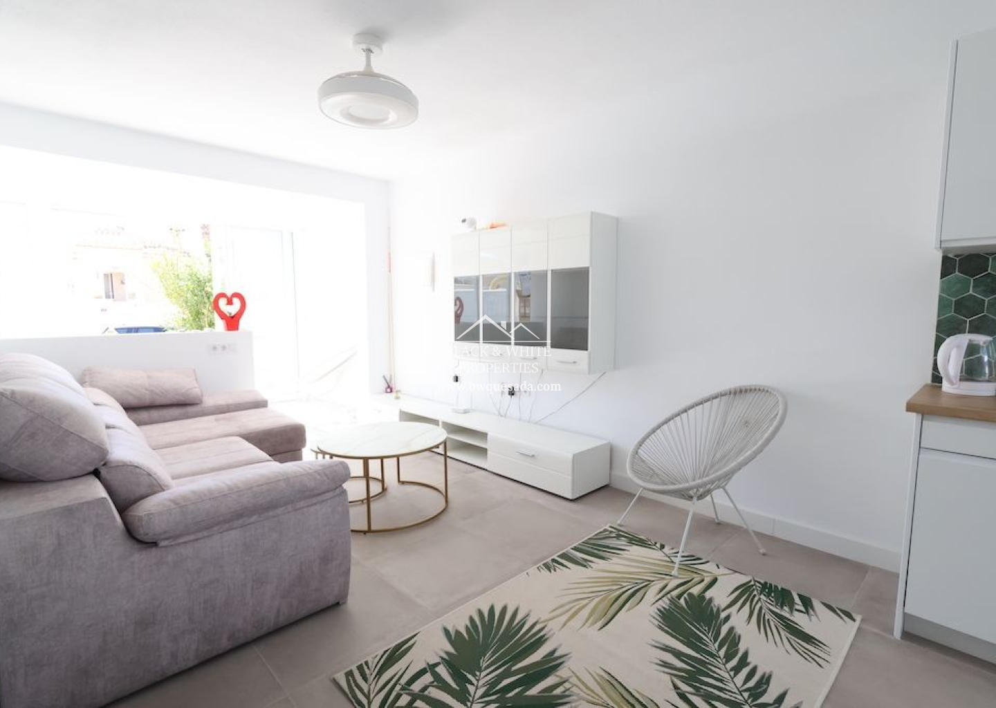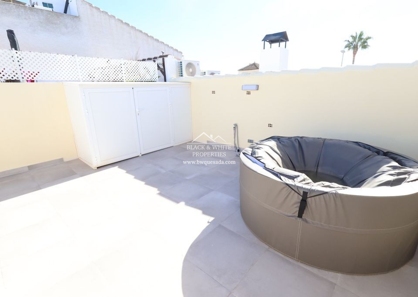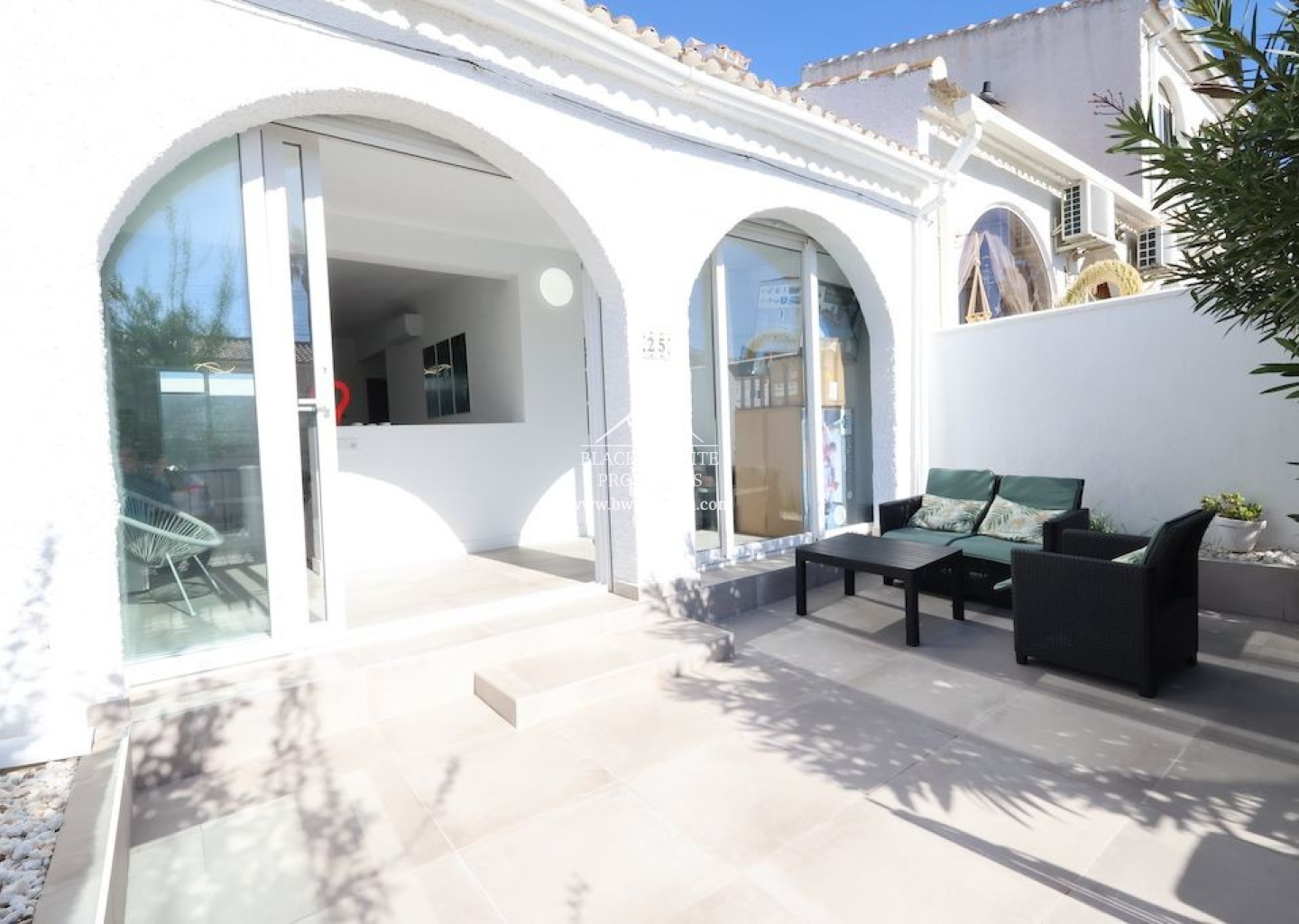 Situado en Benijofar, precioso bungalow en planta baja sin vecinos arriba y orientación sur, vivienda totalmente reformada de 77 m2 con 2 dormitorios, baño, cocina abierta al salón comedor, terraza y gran solarium de 30 m2 con un Jacuzzi y trastero, jardín enlosado de 20 m2, la vivienda se vende amueblada y equipada, dispone de suelo radiante en toda la vivienda y aire acondicionado.