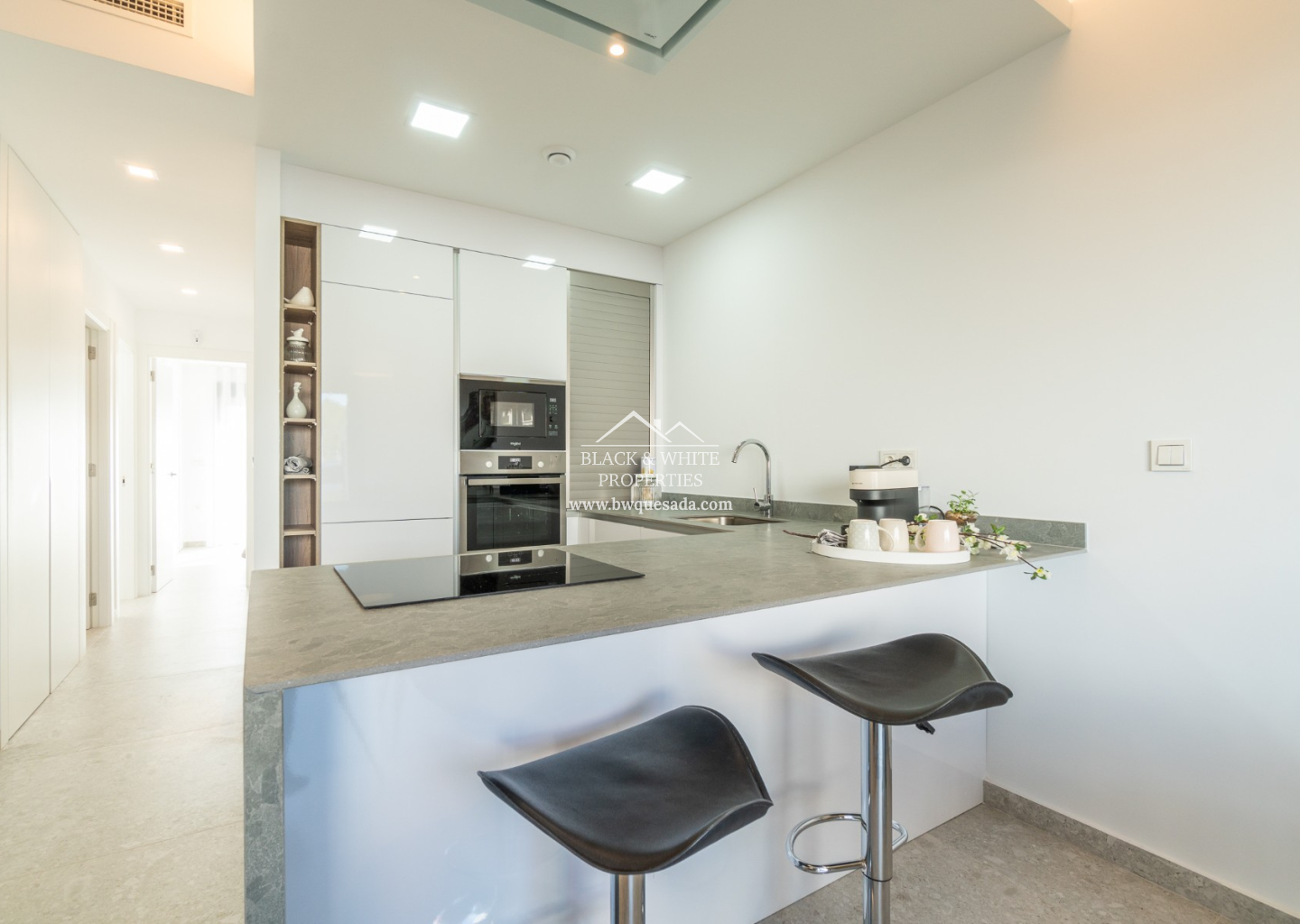 En las plantas superiores, se ha previsto la preinstalación para una cocina exterior, ideal para disfrutar del clima y las vistas.