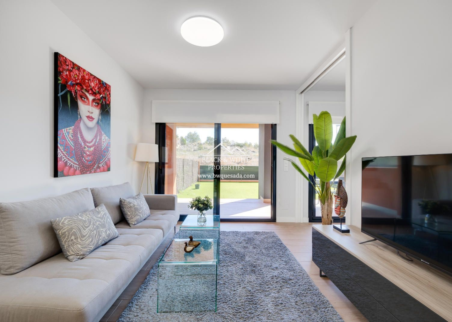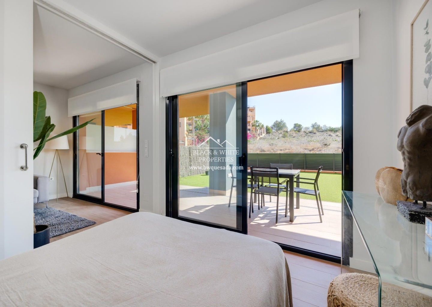 Te presentamos esta excelente propiedad en planta baja, perfecta tanto para vivir todo el año como para obtener rentabilidad a través del alquiler vacacional. Con una superficie construida de 106 m², el apartamento ofrece un diseño práctico y cómodo, distribuido en dos amplios dormitorios y dos baños completos. Uno de sus mayores atractivos son las zonas exteriores: cuenta con dos terrazas, un luminoso patio interior y un magnífico jardín privado de 79 m², ideal para disfrutar de la vida al aire libre con total privacidad y tranquilidad. La vivienda está equipada con aire acondicionado y calefacción, lo que asegura confort en cualquier estación del año. Se entrega totalmente amueblada y decorada con un estilo moderno, lista para entrar a vivir. Forma parte de un cuidado complejo residencial que ofrece ascensor, piscina comunitaria y zonas ajardinadas. Además, incluye una plaza de aparcamiento subterránea en el precio, aportando un plus de comodidad y valor. En definitiva, se trata de una propiedad completa, bien equipada y situada en una zona residencial que combina serenidad con buenas conexiones. Ideal para quienes buscan calidad de vida, espacios exteriores y todas las comodidades actuales.
