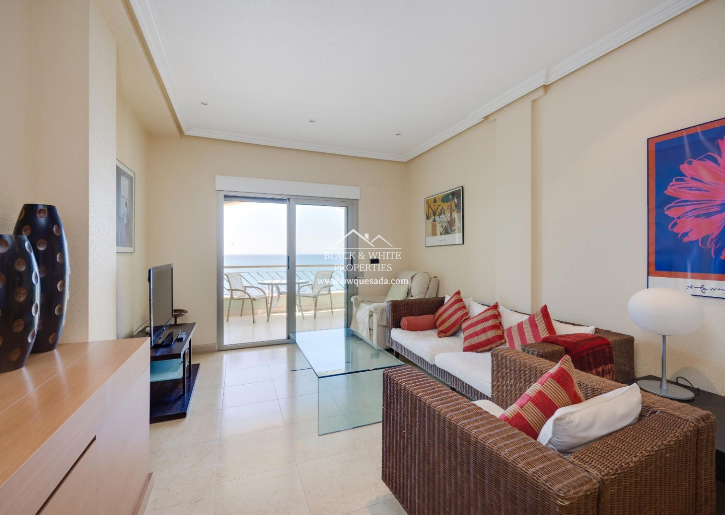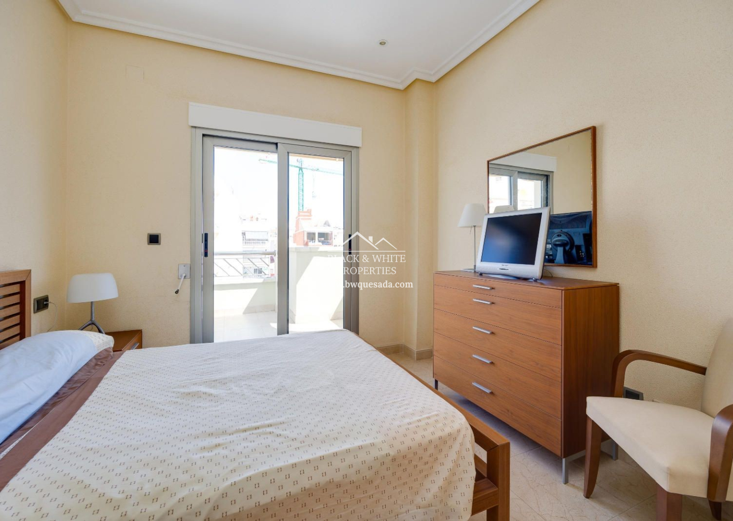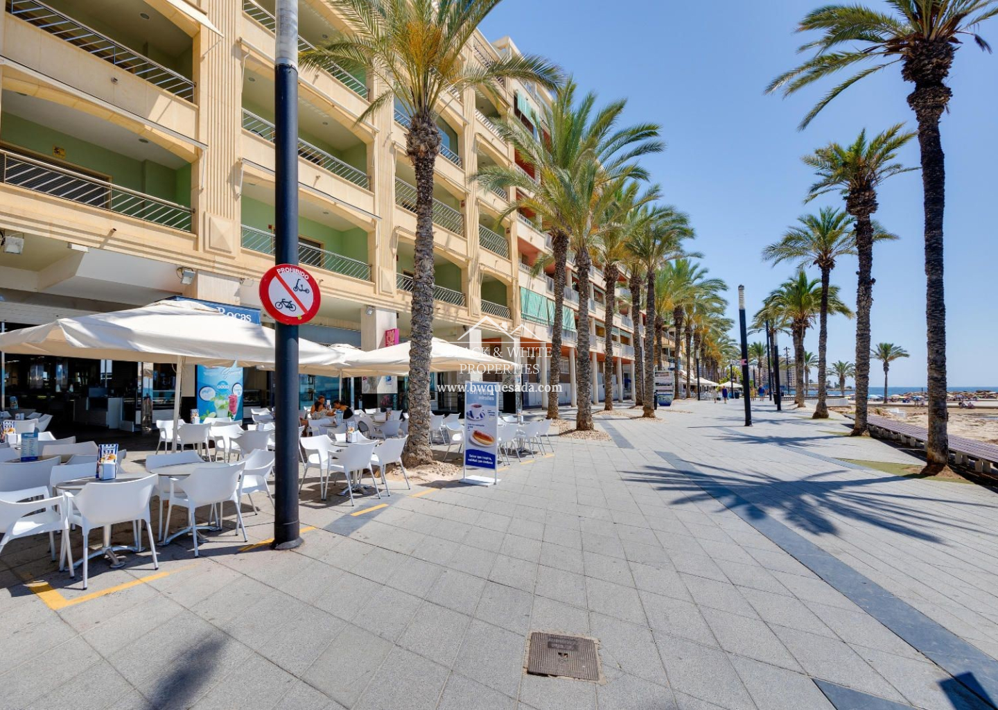Descubre este magnífico apartamento situado en Torrevieja en la cuarta planta de un edificio con ascensor, en una ubicación privilegiada frente al mar. Con una superficie construida de 133 m², esta propiedad ofrece amplitud, comodidad y luz natural en cada rincón. La vivienda cuenta con 3 amplios dormitorios con armarios empotrados y 2 baños completos, se entrega totalmente amueblada y equipada, lista para entrar a vivir. Además, dispone de un solárium privado, ideal para tomar el sol o relajarse con vistas abiertas al mar. Incluye plaza de garaje en el precio.