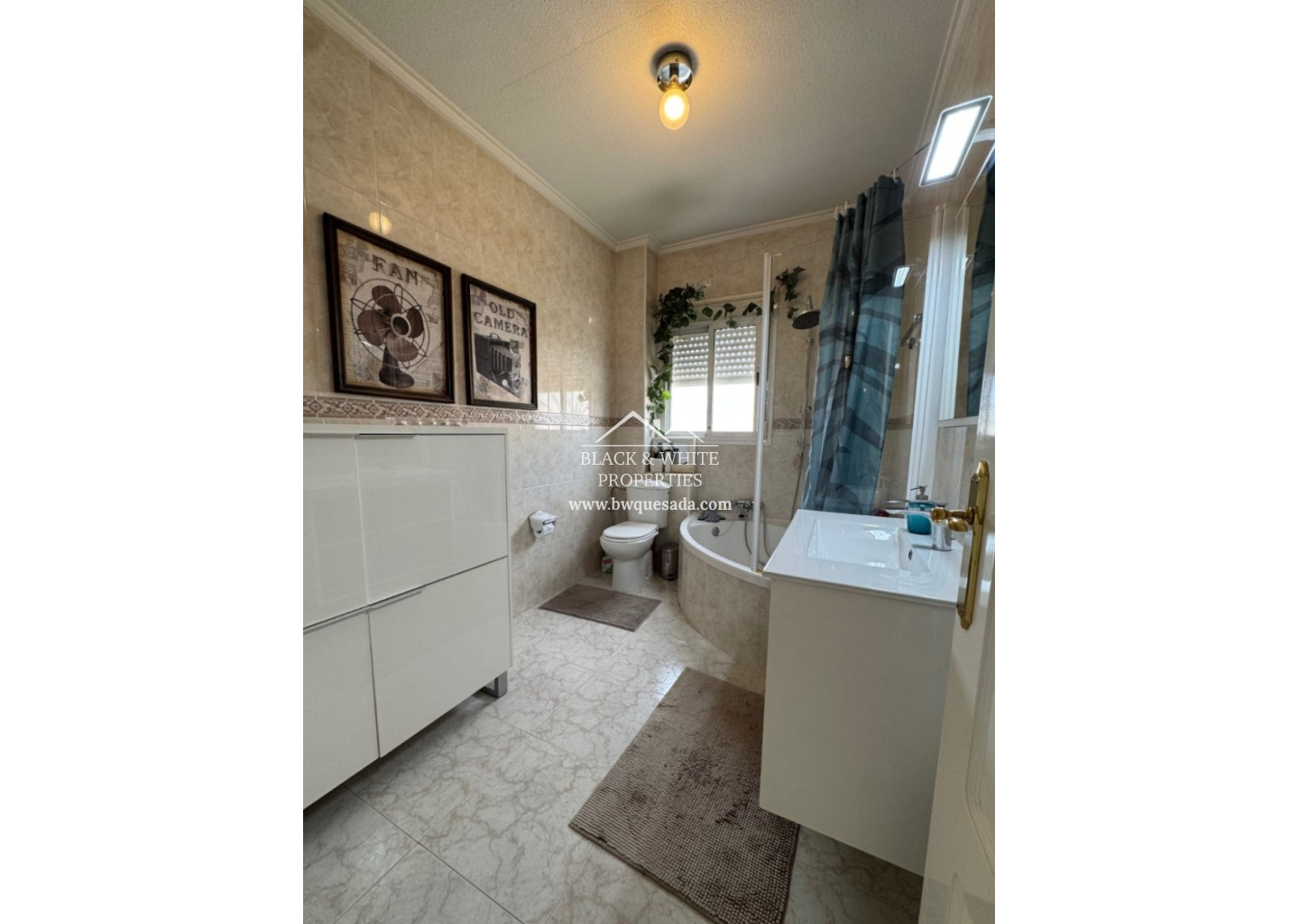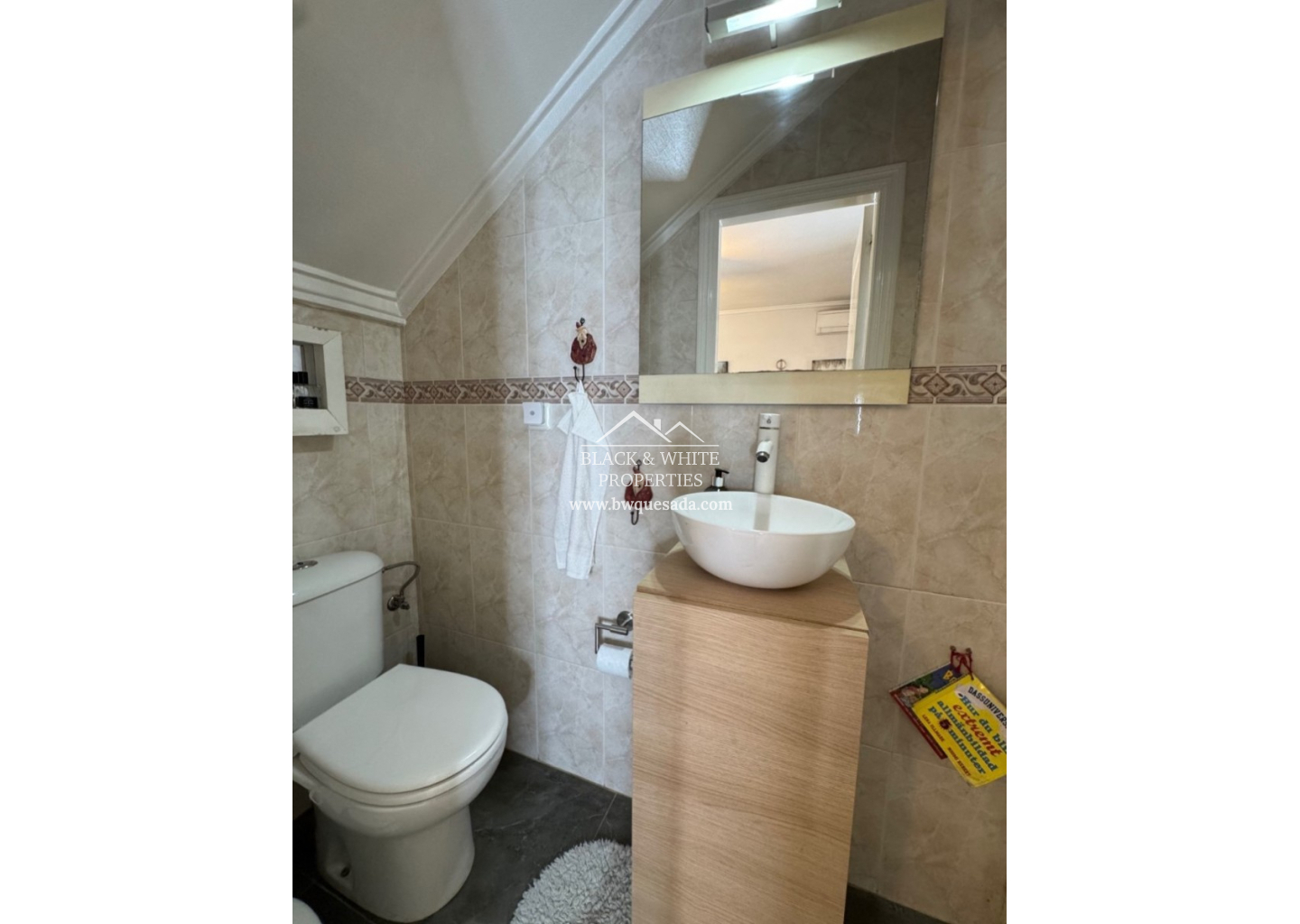 En la planta superior hay dos amplios dormitorios, cada uno con salida a soleadas terrazas, y un baño espacioso.