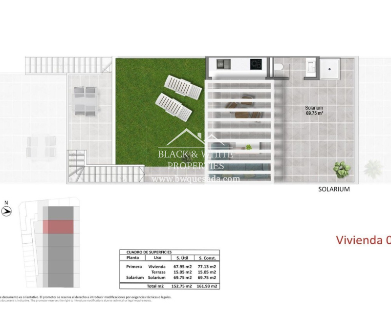 - Incluido en SOLARIUM: Cocina de verano cerrada + aseo + Pérgola + césped artificial + iluminación + ducha estándar.