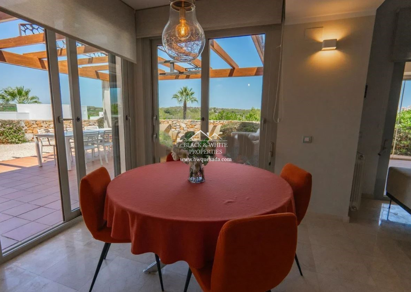 Casa unifamiliar de 3 dormitorios y 3 baños ubicada en el prestigioso Las Colinas Golf & Country Club. Ubicada en una parcela elevada de 860 m². Al entrar, encontrará un luminoso salón-comedor de planta abierta, decorado con gusto y con un impresionante techo de doble altura. Las amplias puertas acristaladas del patio maximizan las vistas y conducen directamente a los jardines, todos ellos bellamente cuidados. La terraza acristalada, tanto interior como exterior. La cocina moderna, de diseño impecable, cuenta con un lavadero independiente. El espacioso dormitorio de la planta baja ofrece un patio exterior privado y un baño con ducha enfrente. En la planta superior, le esperan dos amplios dormitorios, el principal con baño en suite, vestidores y un lujoso baño principal. El jardín envolvente está diseñado para la relajación y el entretenimiento, con patios, terrazas y terrazas acristaladas que combinan a la perfección la vida interior y exterior. Con amplio espacio para una piscina privada sin sacrificar espacio ni vistas impresionantes. Como alternativa, al final del jardín, disfrute de la gran piscina comunitaria con duchas y baños, accesible solo por unas pocas propiedades.