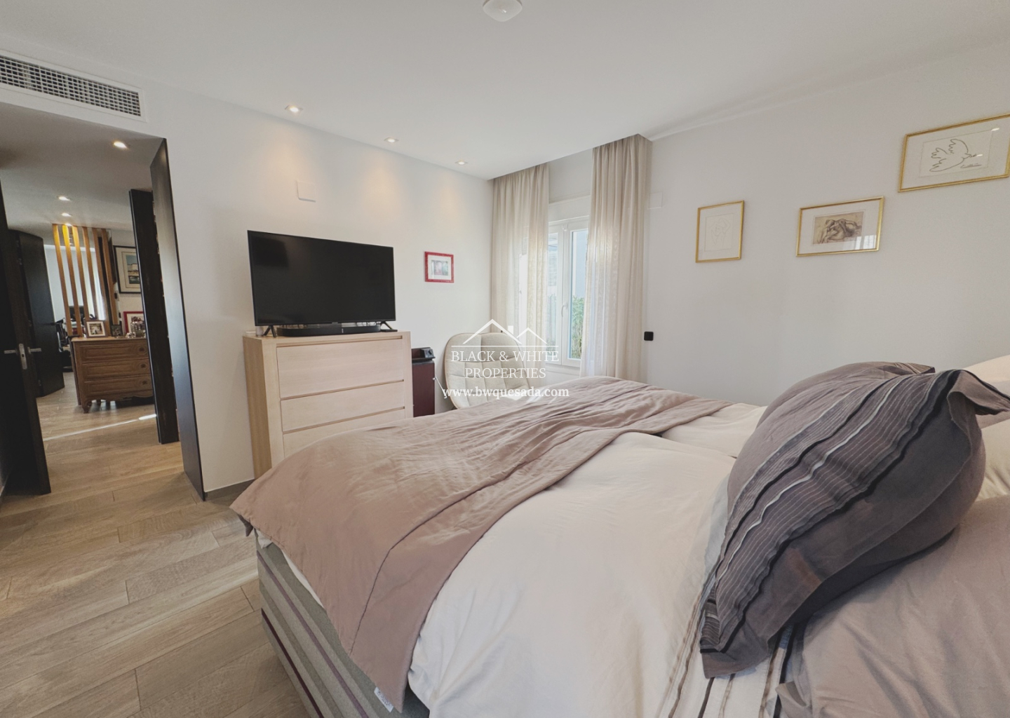 La propiedad dispone de dos dormitorios amplios y luminosos, acompañados de tres baños modernos que combinan funcionalidad y diseño. El dormitorio principal incorpora vestidor, aportando un extra de comodidad y organización, mientras que los armarios empotrados optimizan el espacio en toda la vivienda.