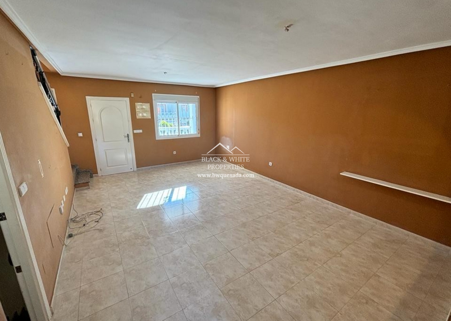 Ici, nous avons cette fantastique super lola avec 3 chambres 3 salles de bains sur 3 étages, dernier étage 2 chambres 1 salle de bain complète terrasse avant et arrière. niveau intermédiaire salle de douche salon cuisine avec terrasse couverte avec vue sur la piscine. Rez-de-chaussée chambre salle de douche et salon ouvert avec cuisine. cour arrière avec buanderie. Dans l'ensemble, cette grande propriété a besoin d'un peu d'entretien et de mise à jour, mais conviendrait à une grande famille pour des vacances ou pour vivre à temps plein. à seulement quelques pas de la ville de Quesada et des commodités locales.