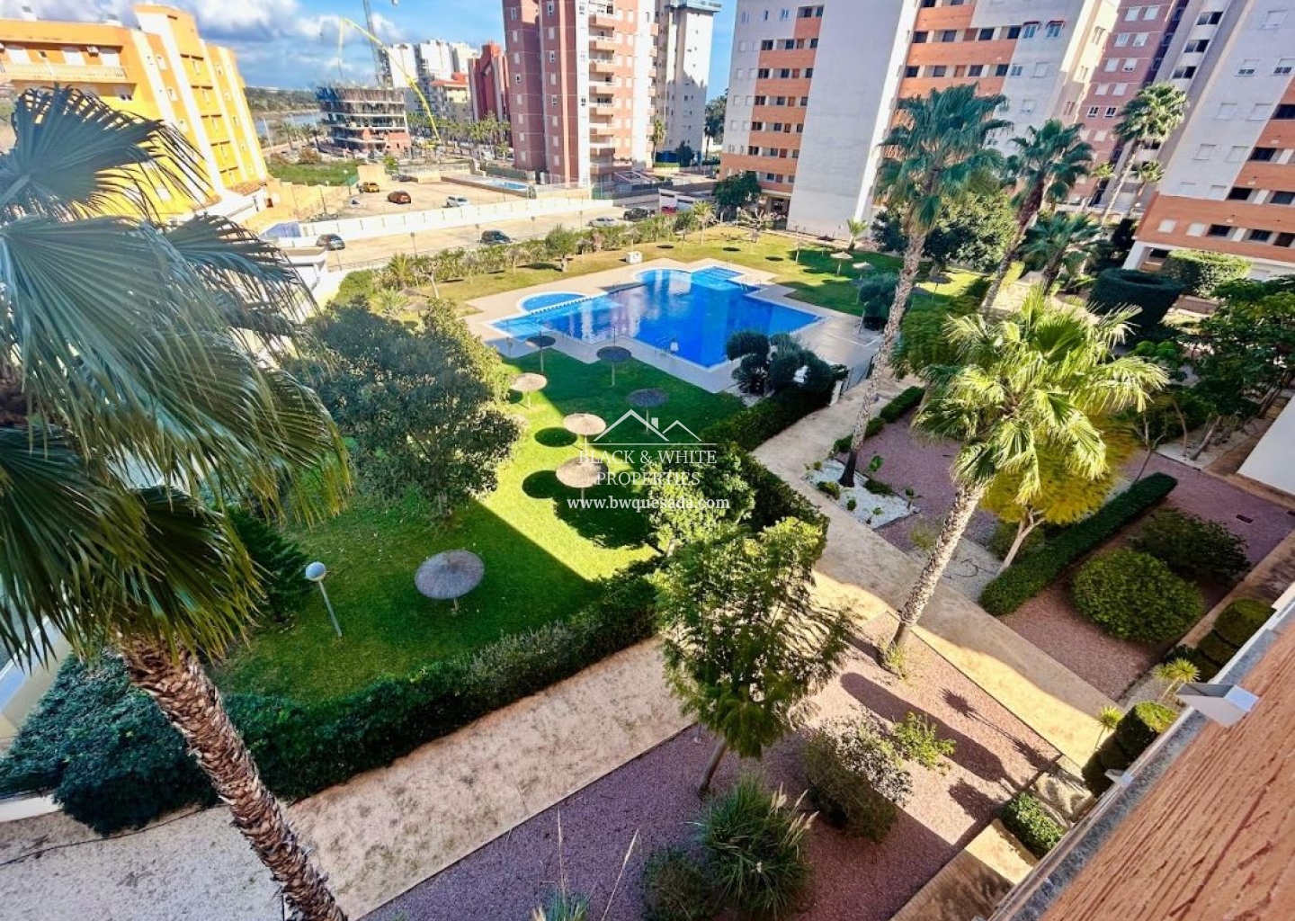 Espaces communs: Place de parking au sous-sol de la même résidence. Piscine commune entourée de pelouse, avec jacuzzi, jets d’hydromassage et siège élévateur pour les personnes à mobilité réduite. Installations sportives: terrain de football/basketball, tennis, paddle, table de ping-pong et salle de sport. Espaces de loisirs: aire de jeux pour enfants, terrain de pétanque et club social pour adultes et enfants.