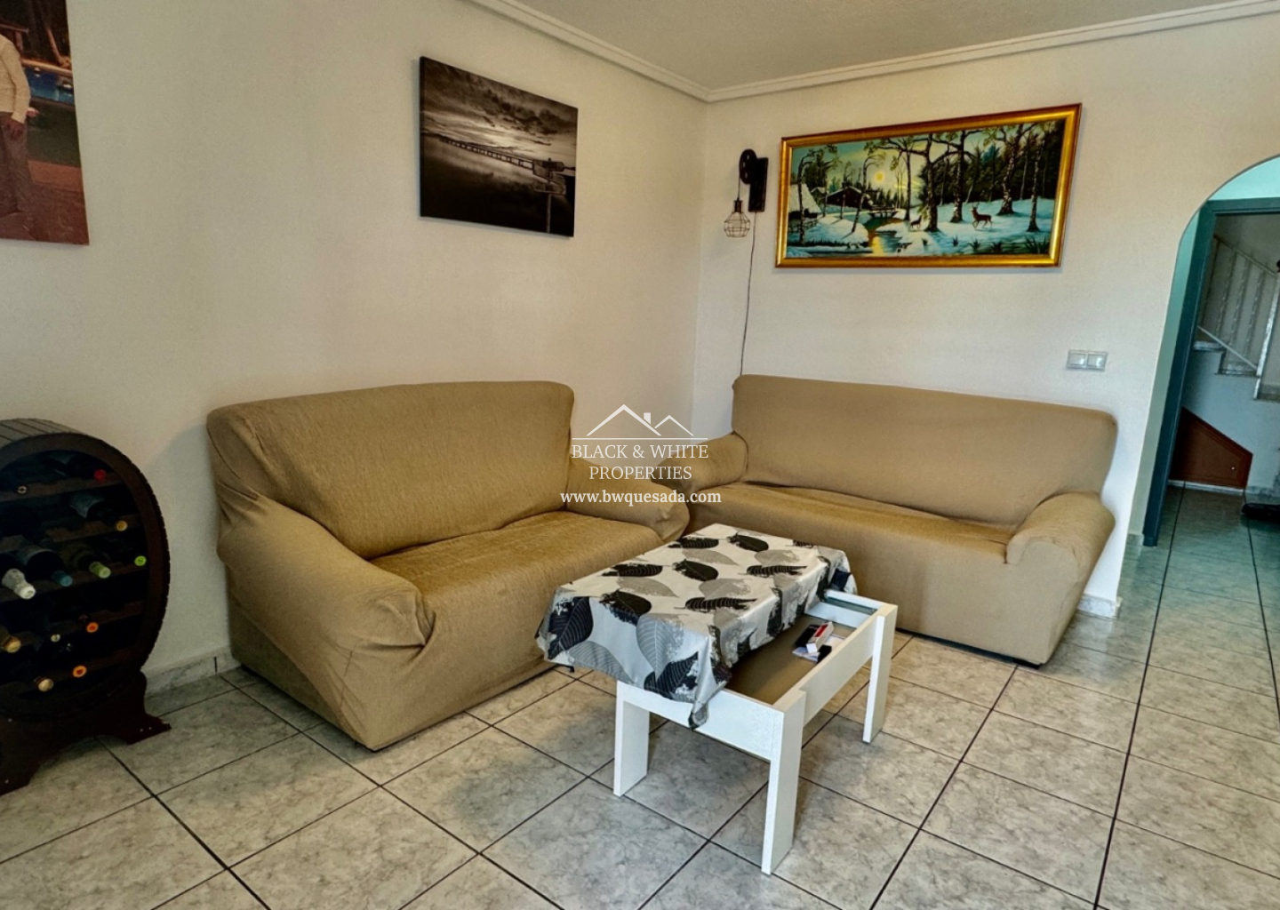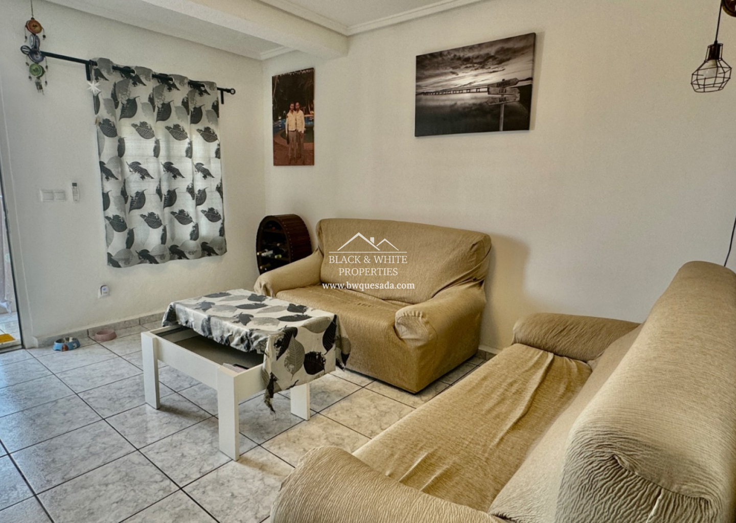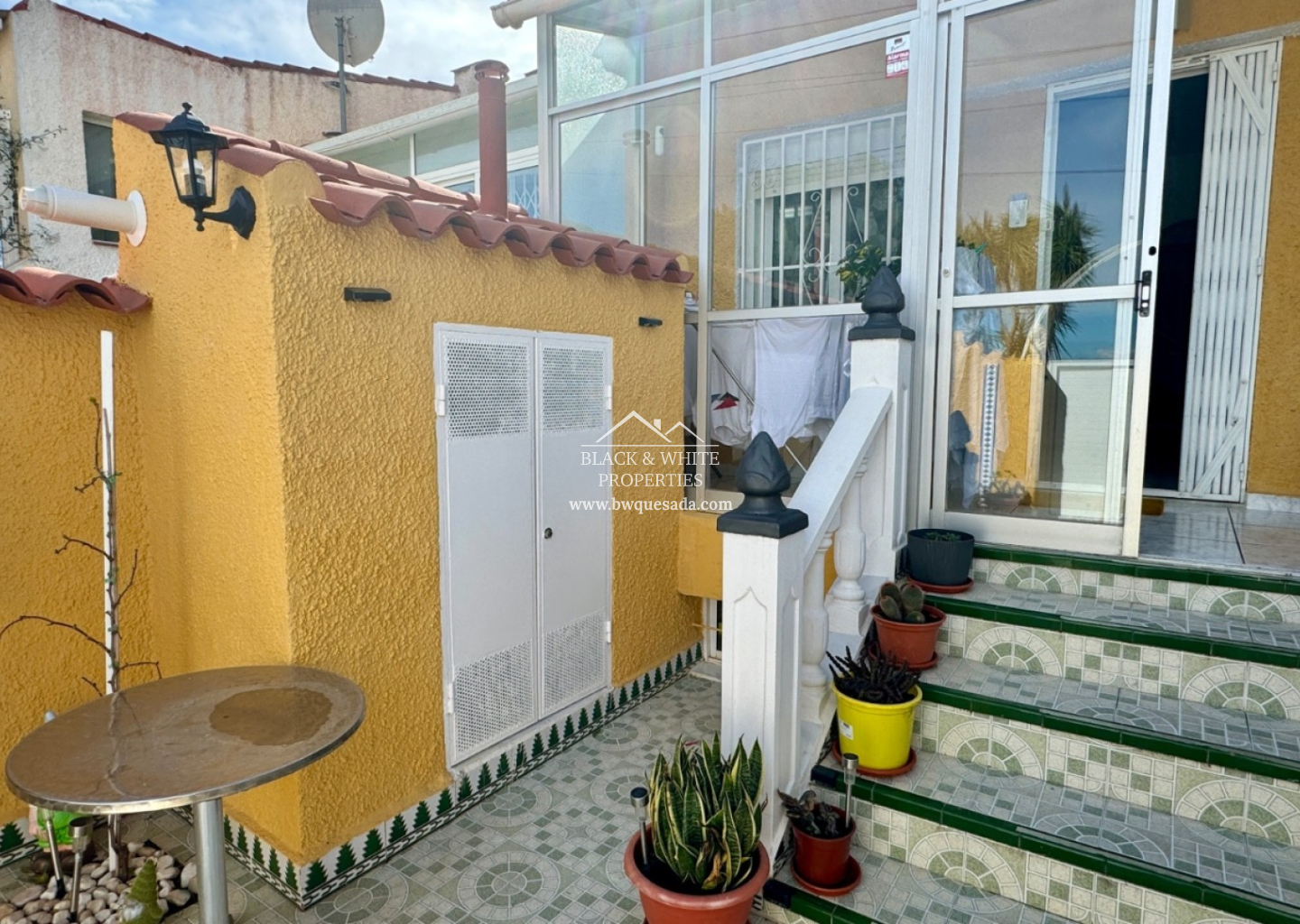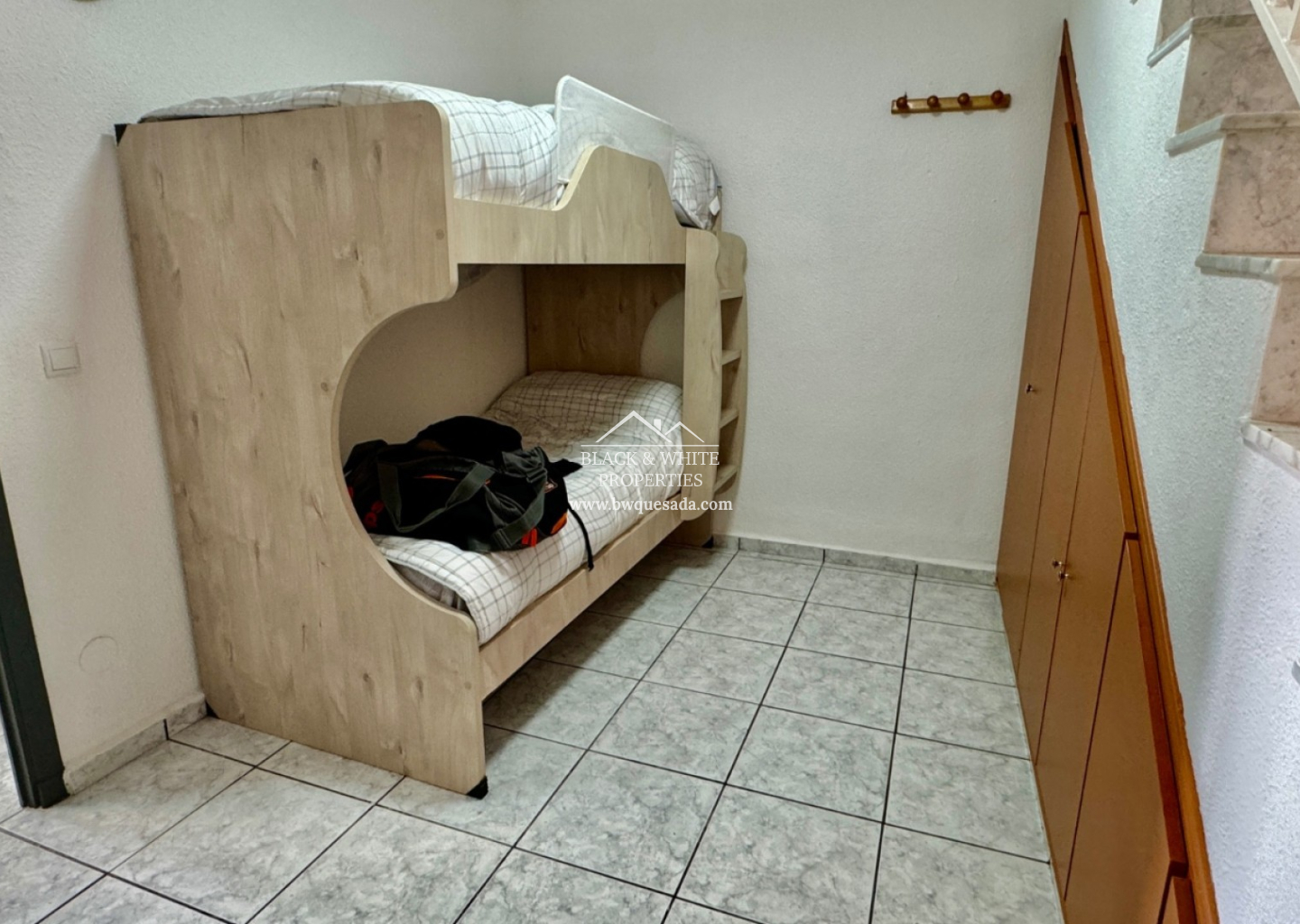 Cette maison de ville de deux chambres est située dans le quartier populaire de Harry’s Bar, offrant l'une des meilleures vues de Quesada. À quelques pas, vous trouverez le célèbre bar et la piscine municipale, idéale pour passer toute la journée. La maison comprend une chambre au rez-de-chaussée et une suite parentale à l'étage. Elle dispose de trois salles de bain, une à chaque niveau, et d'un sous-sol avec espace de rangement. Un jardin et des terrasses fermées permettent de profiter du soleil et des vues magnifiques. Une place de parking privée est également incluse.