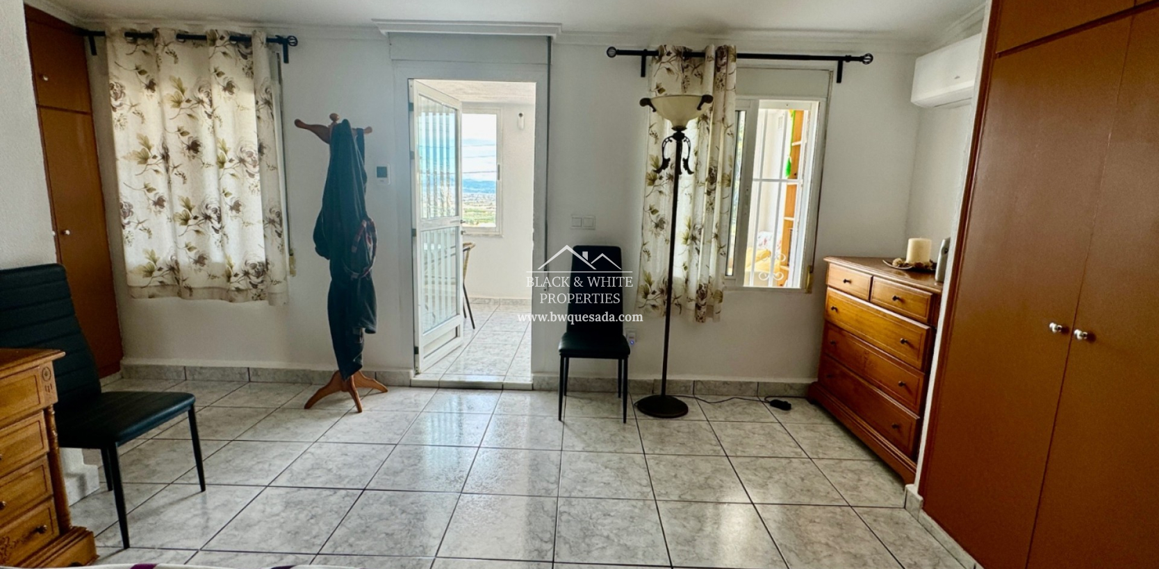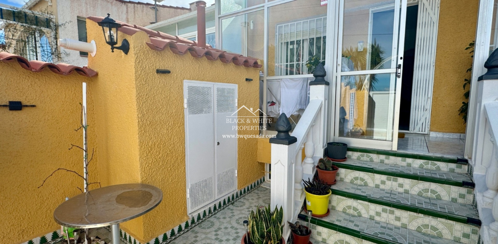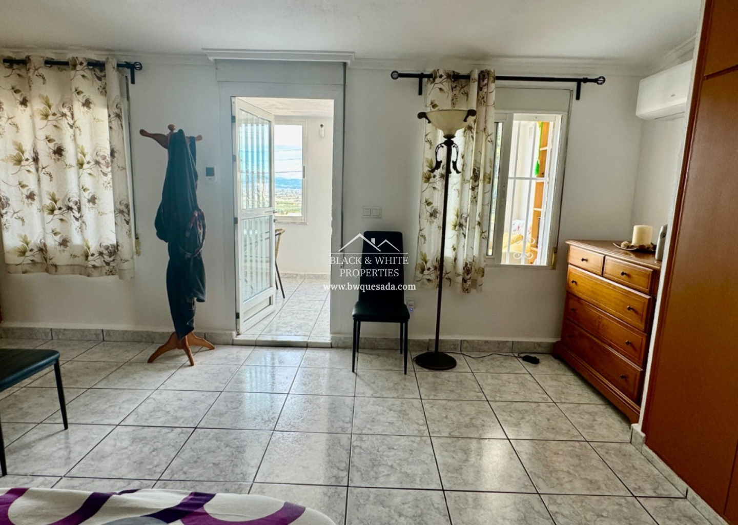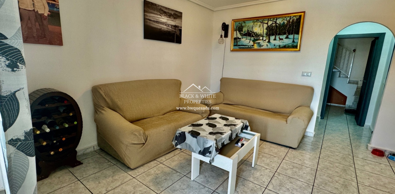 Cette maison de ville de deux chambres est située dans le quartier populaire de Harry’s Bar, offrant l'une des meilleures vues de Quesada. À quelques pas, vous trouverez le célèbre bar et la piscine municipale, idéale pour passer toute la journée. La maison comprend une chambre au rez-de-chaussée et une suite parentale à l'étage. Elle dispose de trois salles de bain, une à chaque niveau, et d'un sous-sol avec espace de rangement. Un jardin et des terrasses fermées permettent de profiter du soleil et des vues magnifiques. Une place de parking privée est également incluse.