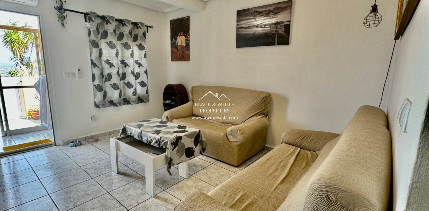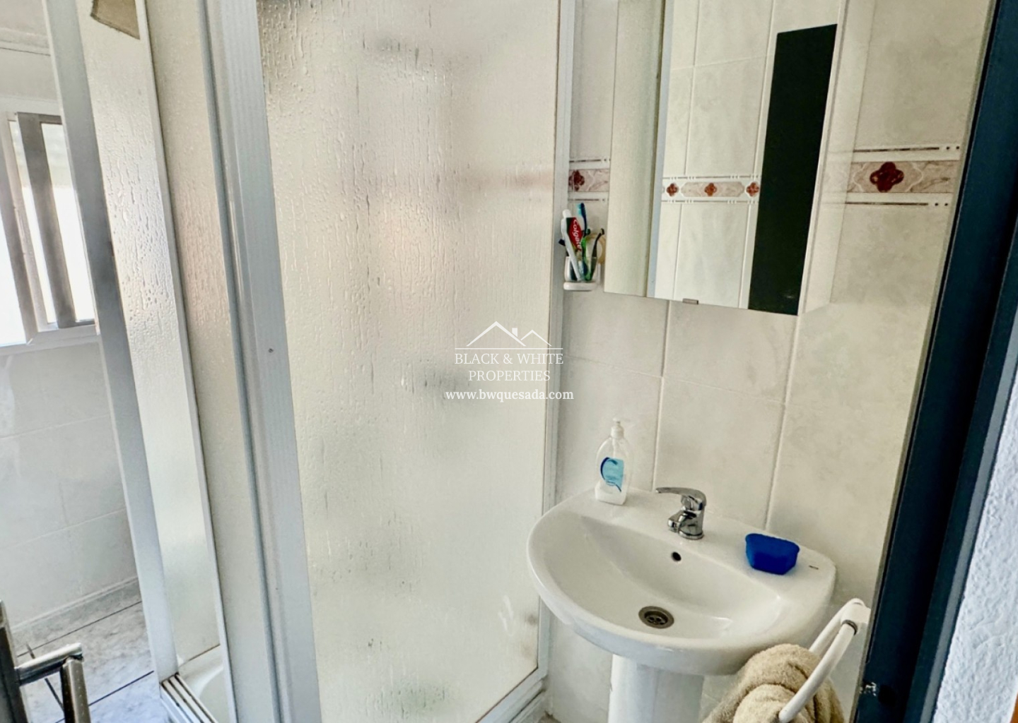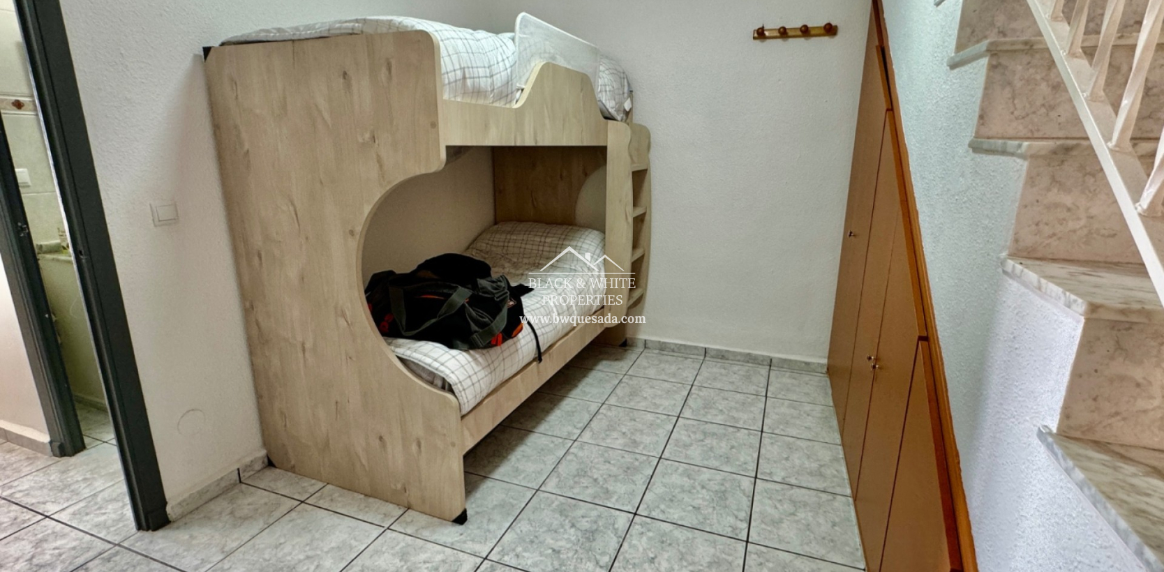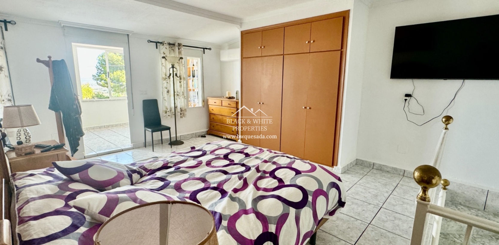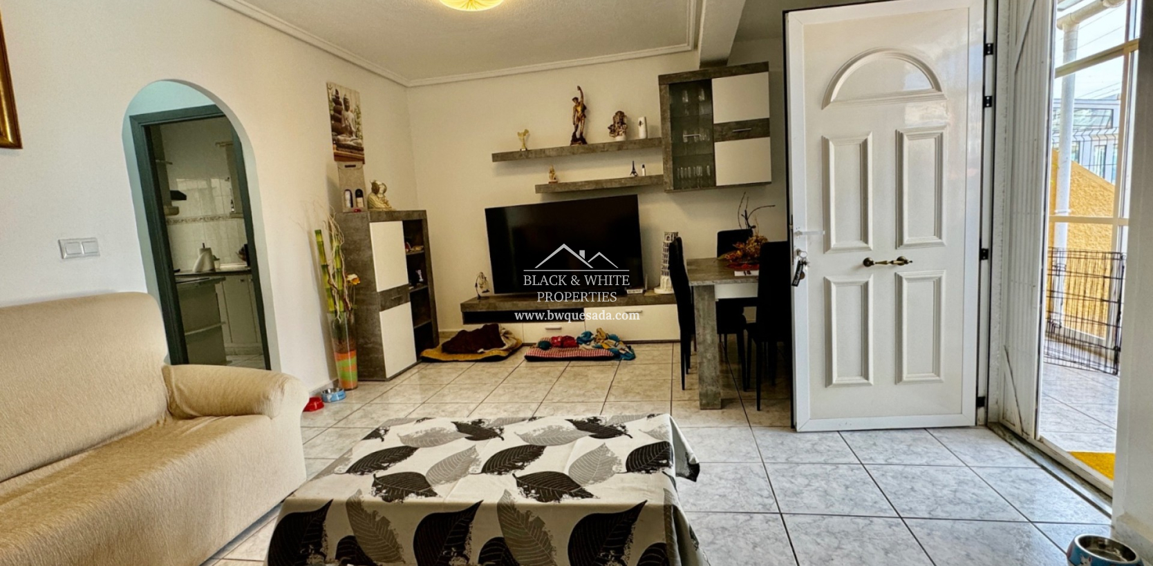 Cette maison de ville de deux chambres est située dans le quartier populaire de Harry’s Bar, offrant l'une des meilleures vues de Quesada. À quelques pas, vous trouverez le célèbre bar et la piscine municipale, idéale pour passer toute la journée. La maison comprend une chambre au rez-de-chaussée et une suite parentale à l'étage. Elle dispose de trois salles de bain, une à chaque niveau, et d'un sous-sol avec espace de rangement. Un jardin et des terrasses fermées permettent de profiter du soleil et des vues magnifiques. Une place de parking privée est également incluse.