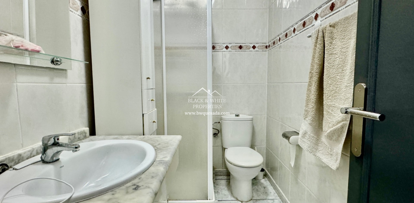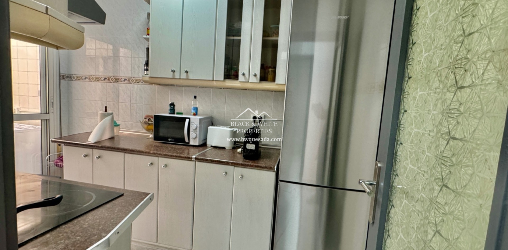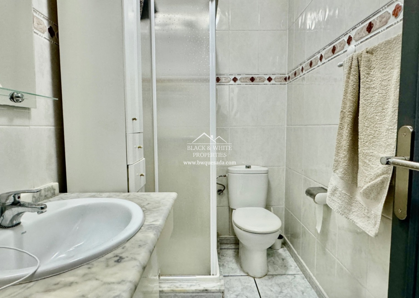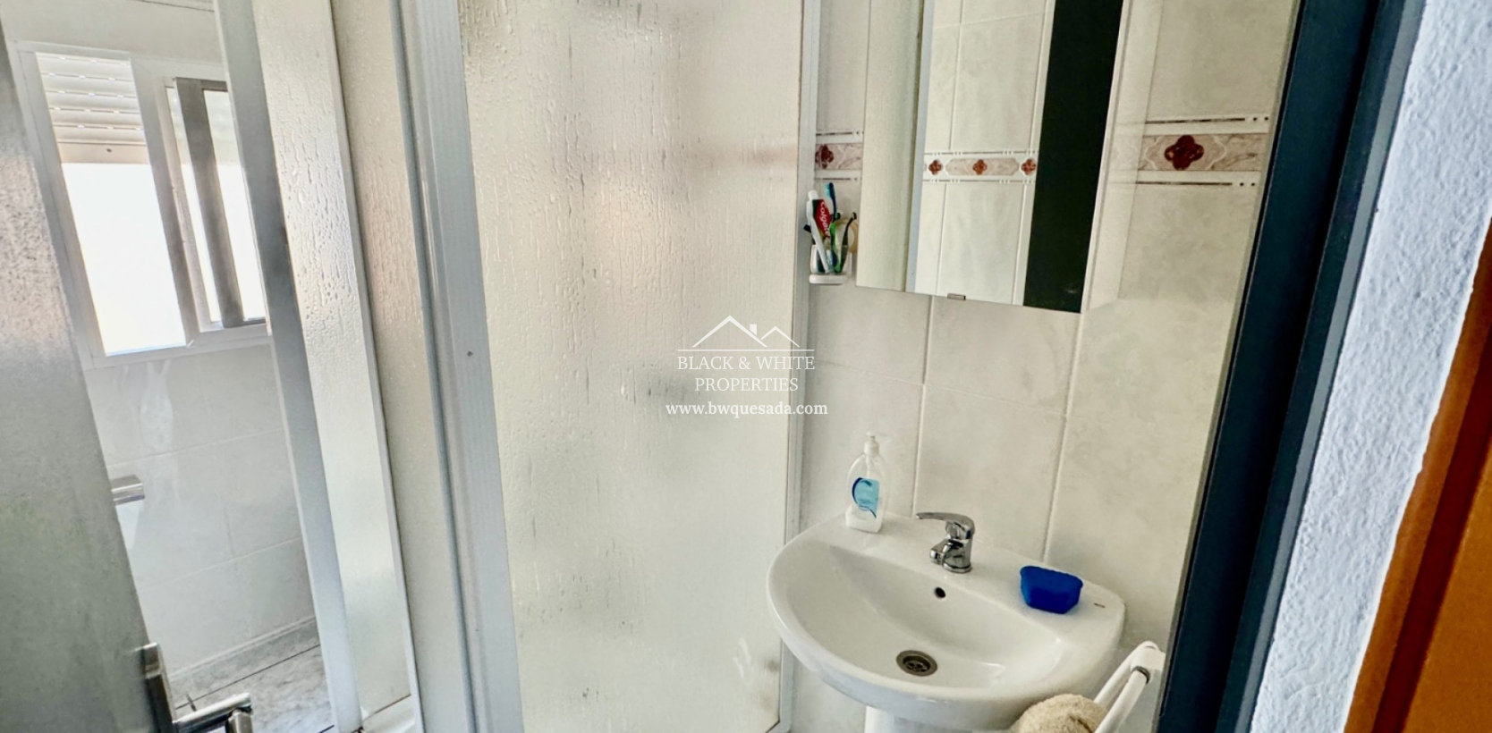 Cette maison de ville de deux chambres est située dans le quartier populaire de Harry’s Bar, offrant l'une des meilleures vues de Quesada. À quelques pas, vous trouverez le célèbre bar et la piscine municipale, idéale pour passer toute la journée. La maison comprend une chambre au rez-de-chaussée et une suite parentale à l'étage. Elle dispose de trois salles de bain, une à chaque niveau, et d'un sous-sol avec espace de rangement. Un jardin et des terrasses fermées permettent de profiter du soleil et des vues magnifiques. Une place de parking privée est également incluse.