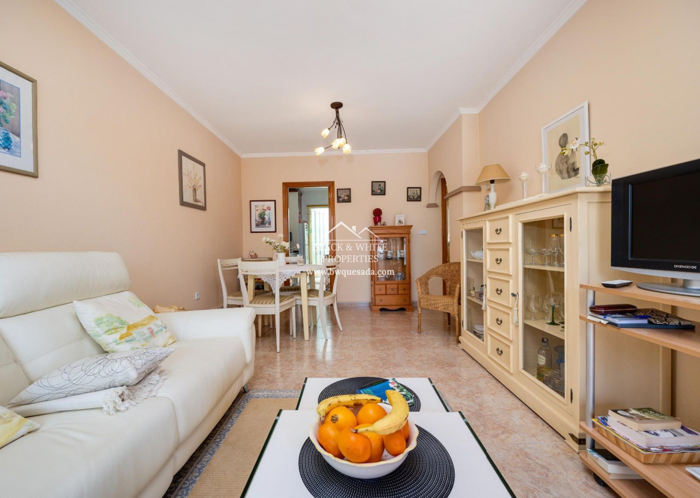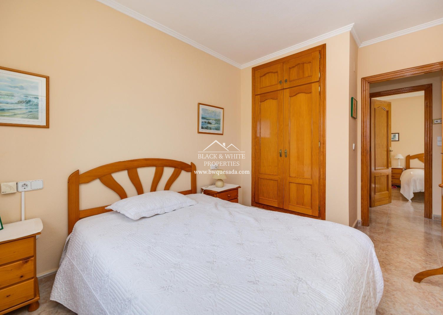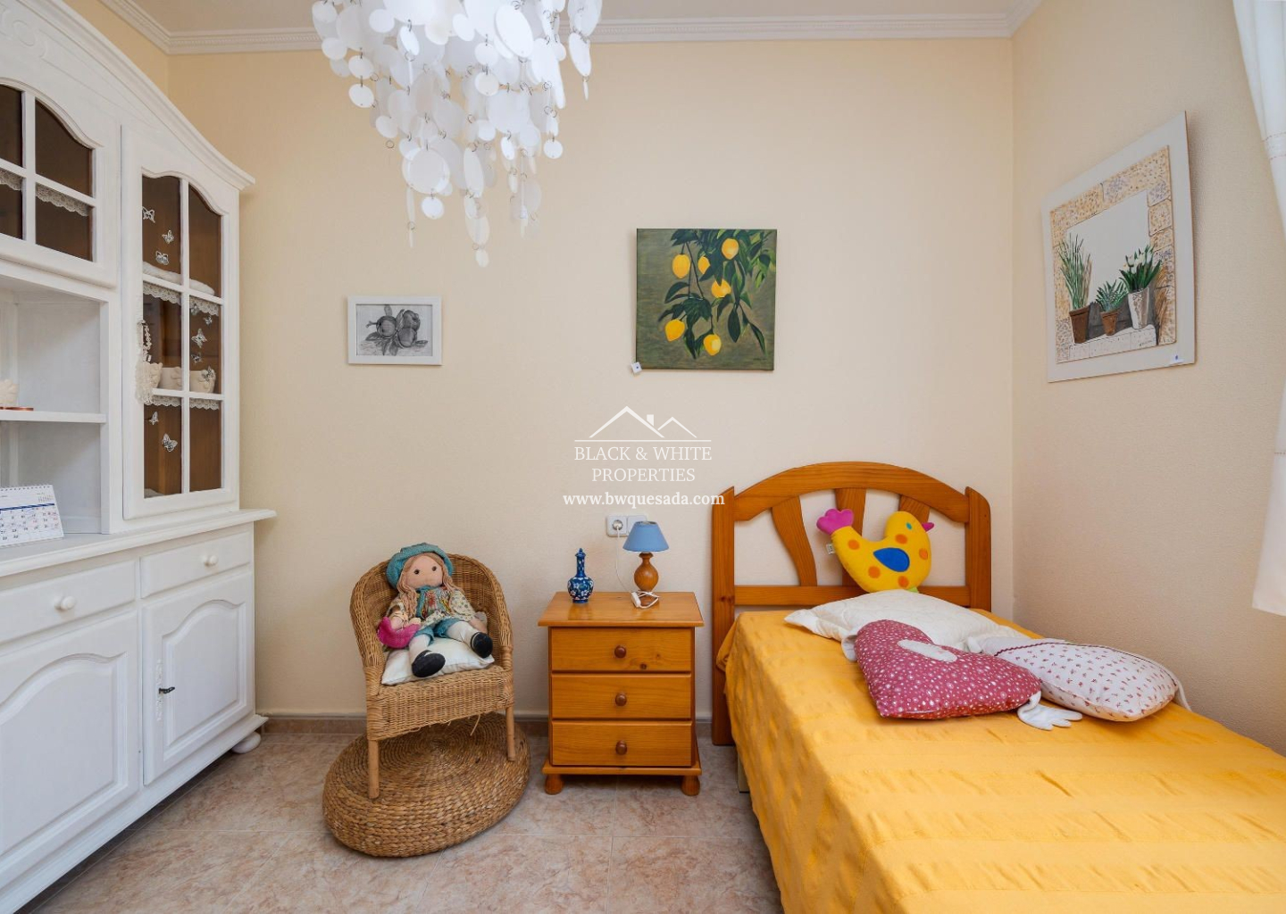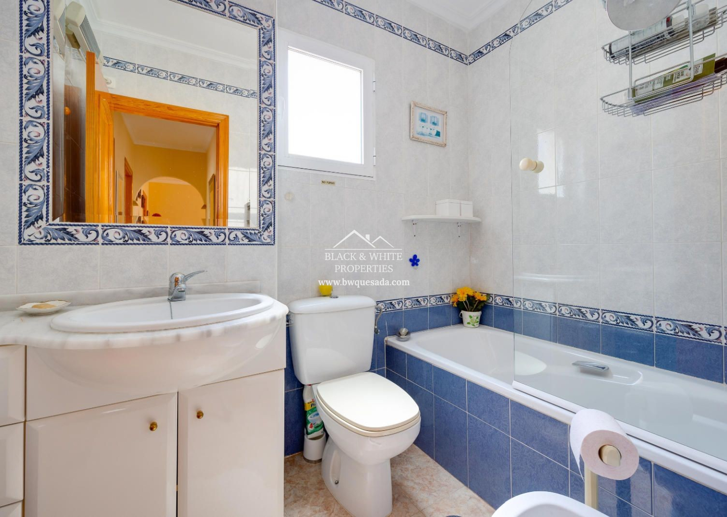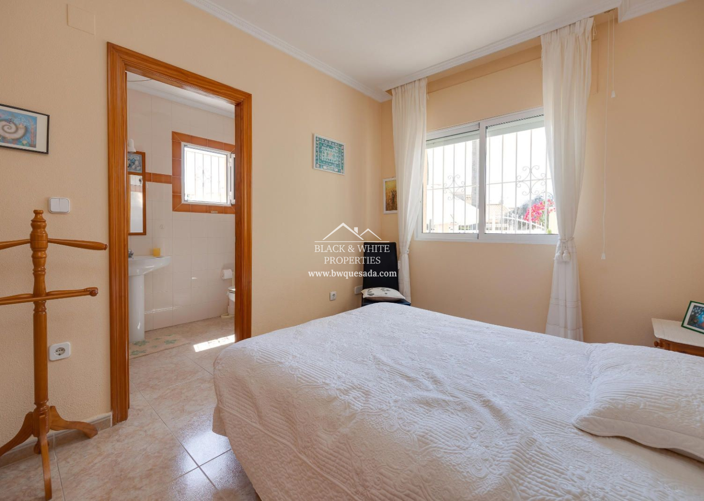Chalet mitoyen de 71 mètres carrés construits, situé sur un terrain de 176 mètres carrés, idéal pour ceux qui recherchent confort, fonctionnalité et un style de vie paisible près de la mer. Situé dans le quartier prisé d’Aguas Nuevas, ce bien se distingue par son excellente orientation plein sud, garantissant une grande luminosité tout au long de la journée. La maison se compose de 3 chambres bien aérées, dont une avec salle de bains privative, et d'une seconde salle de bains complète, toutes avec des finitions pratiques et soignées. L'intérieur dispose de la climatisation et du chauffage, assurant un confort optimal en toute saison. Elle est vendue entièrement meublée, permettant une installation immédiate ou une personnalisation selon les goûts du nouveau propriétaire. À l’extérieur, le chalet offre une agréable terrasse, un grand solarium parfait pour bronzer ou profiter de dîners en plein air, ainsi qu’un jardin privé avec la possibilité de créer un espace détente ou une aire de jeux.
