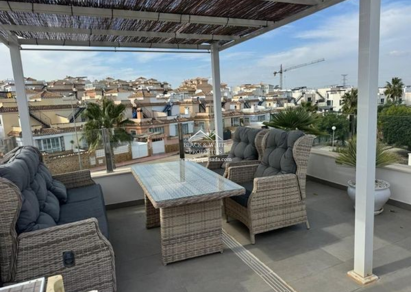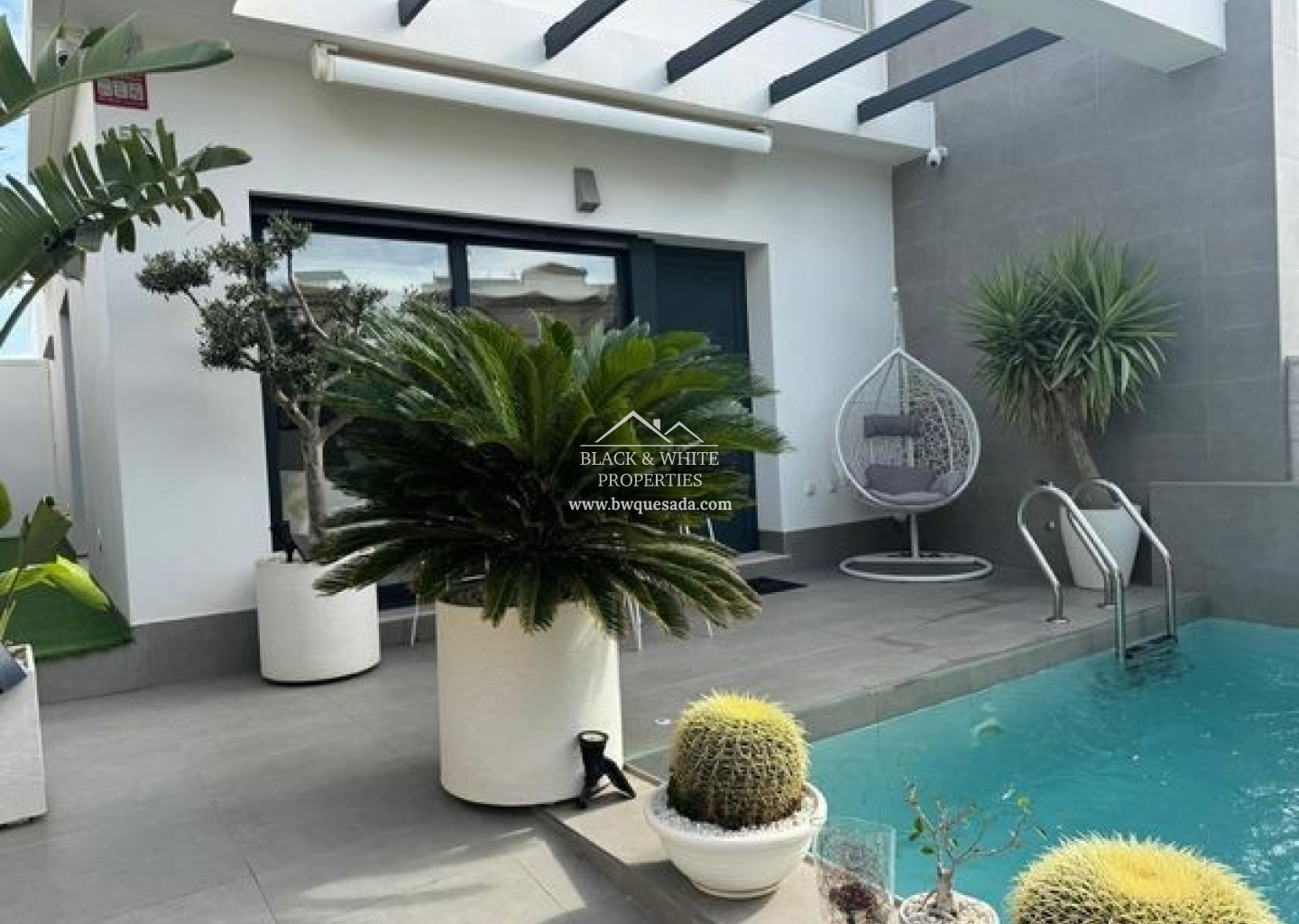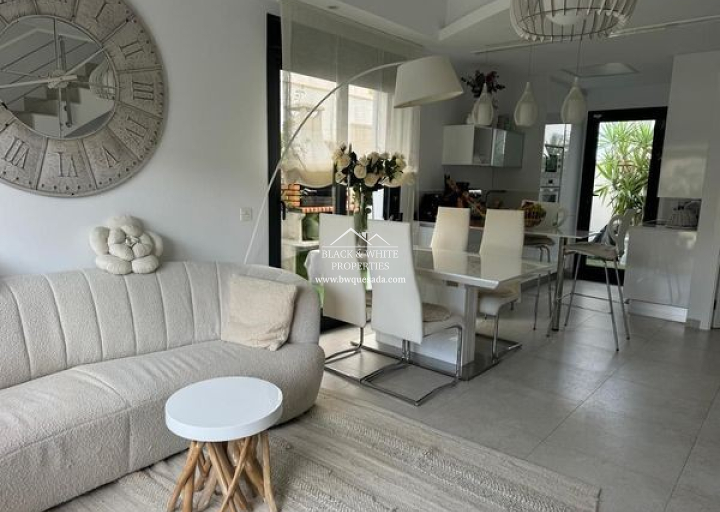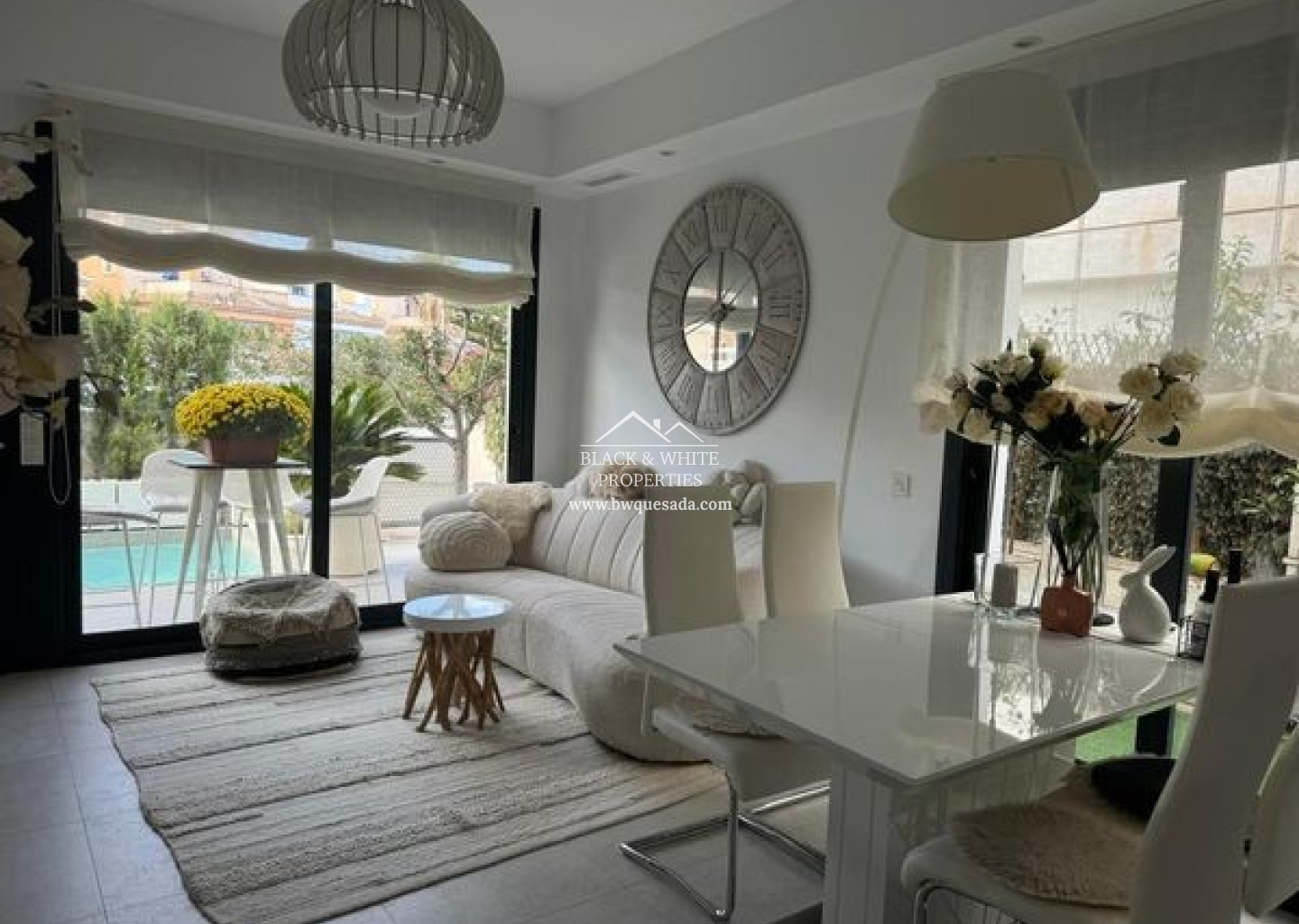 Cette charmante maison de ville est un excellent choix pour ceux qui recherchent une maison confortable et fonctionnelle dans un cadre paisible. Avec 90 m² de surface construite et un beau jardin privé de 54 m², cette maison offre un espace idéal pour profiter de la vie en plein air et profiter au maximum du climat méditerranéen. La propriété dispose d'une piscine privée équipée d'un éclairage coloré qui crée une ambiance unique la nuit, parfaite pour se détendre au coucher du soleil. Répartie sur deux étages, cette maison dispose de trois chambres spacieuses et de trois salles de bain complètes, toutes avec chauffage au sol pour un confort toute l'année. Le solarium à l'étage est également un point fort de la maison, parfait pour profiter de la vue dégagée et prendre un bain de soleil. La propriété comprend également un balcon, un espace barbecue et un jardin bien entretenu, offrant des espaces supplémentaires pour profiter du plein air et socialiser. Situé dans une communauté calme, les frais de communauté sont très abordables, à seulement 22 € par mois. De plus, la taxe annuelle, qui comprend les frais de collecte des déchets, est de 300 €, ce qui fait de cette propriété une option économique et nécessitant peu d'entretien. Cette maison est idéalement située, avec accès à tous les services nécessaires tels que supermarchés, écoles et zones de loisirs. Parfait pour une résidence permanente ou pour des vacances reposantes sur la Costa Blanca. Ne manquez pas l'occasion de voir cette charmante propriété en personne !