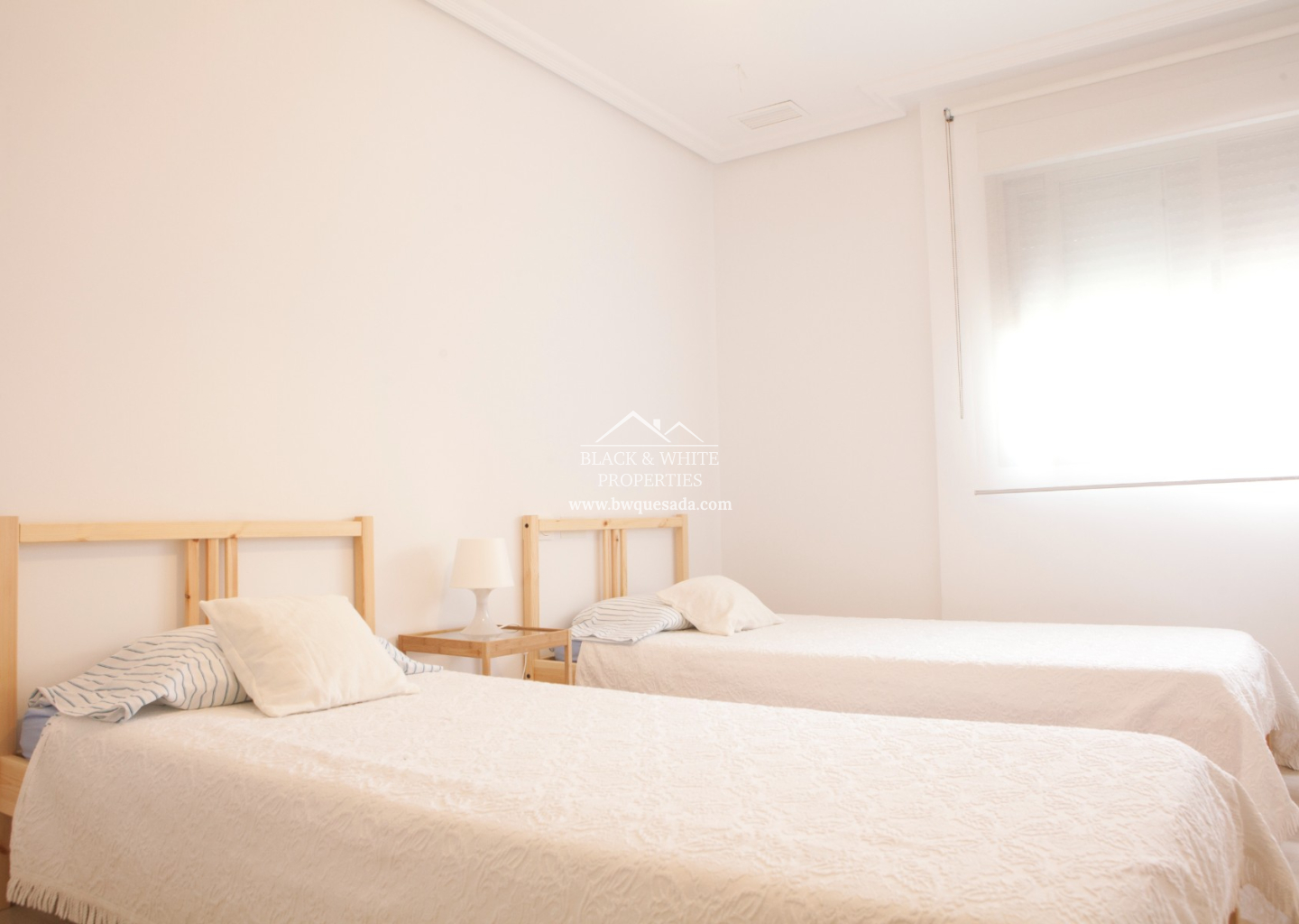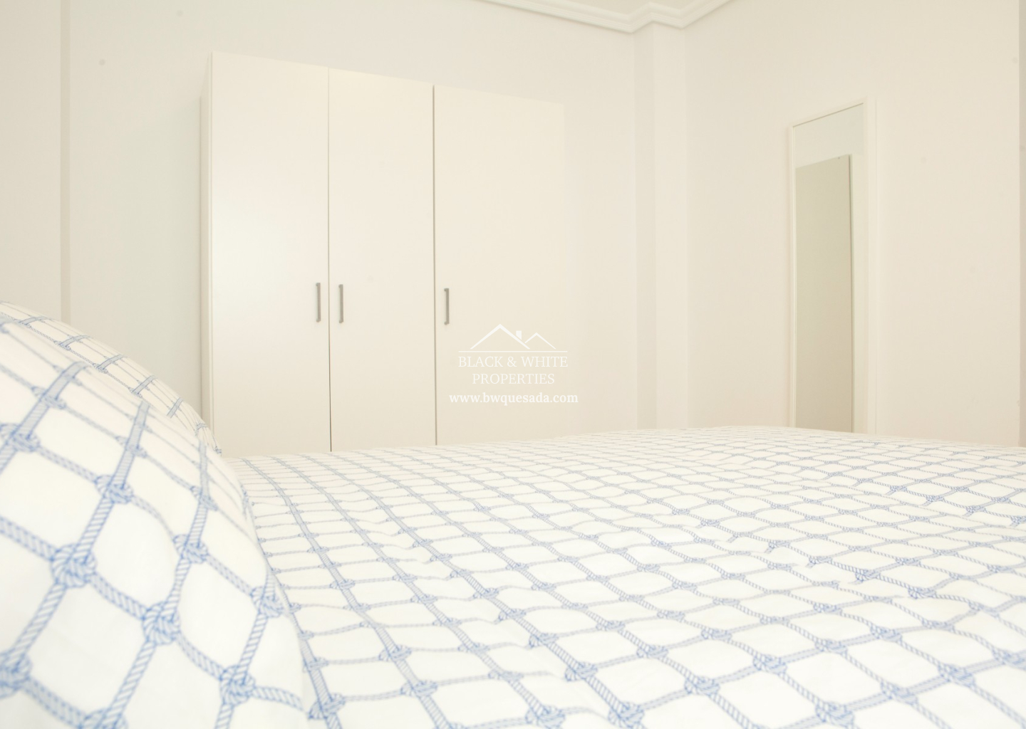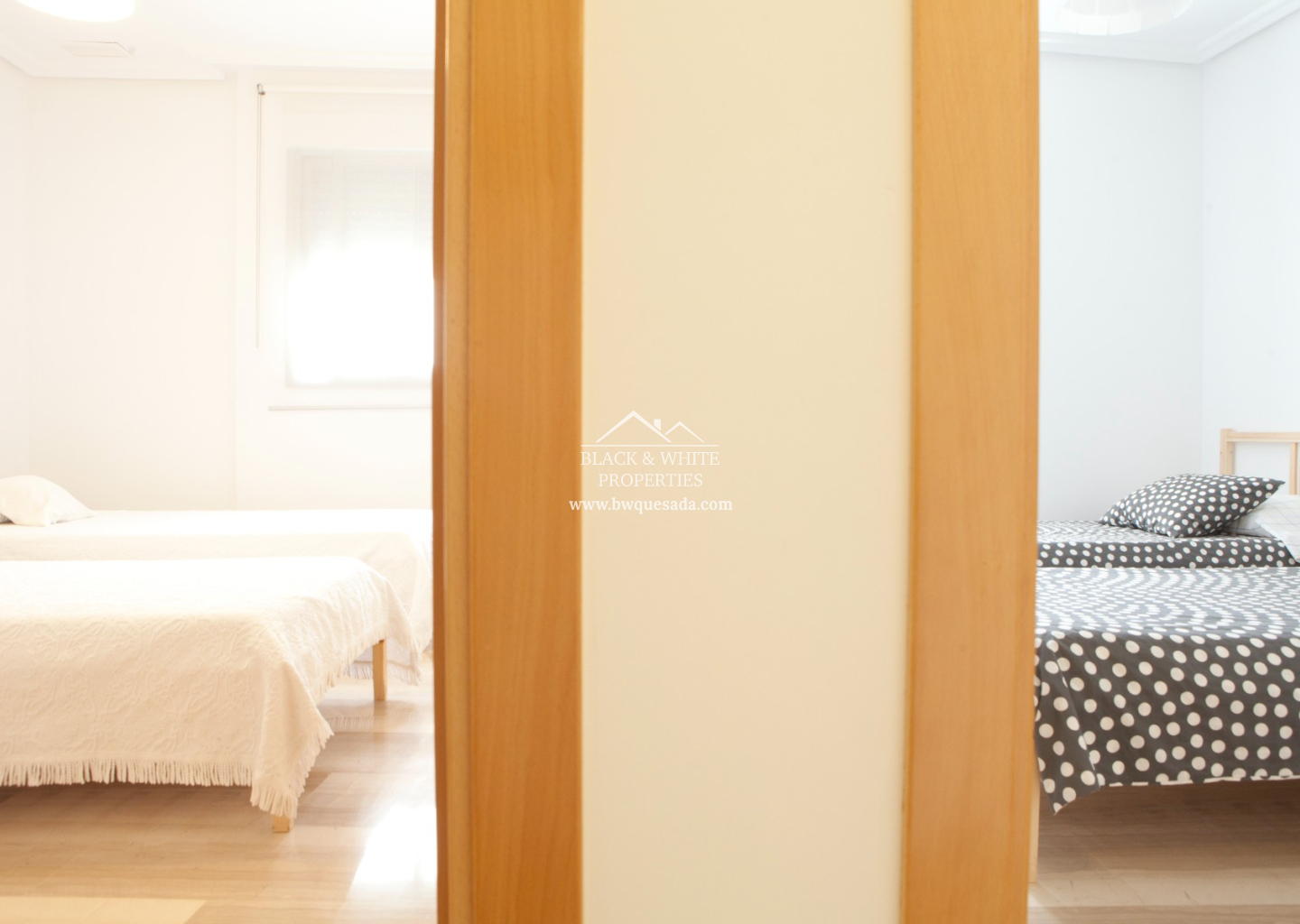 Nous vous présentons cette fantastique propriété située en plein cœur du centre historique, à seulement 150 mètres de la mer et à quelques pas de la Plaza de la Glorieta et de l'emblématique Castillo-Fortaleza. Spacieuse et lumineuse, cette propriété, située au deuxième étage avec ascenseur, se trouve dans un immeuble calme de seulement 9 voisins. Elle est idéale pour un usage résidentiel ou un investissement locatif, grâce à sa licence touristique valide. D'une superficie construite de 127 m² (dont 115 m² utiles), elle comprend 4 chambres doubles, dont une en suite avec salle de bain attenante, 2 salles de bain complètes aux finitions modernes, un salon-salle à manger chaleureux et baigné de lumière naturelle, ainsi qu'une cuisine indépendante, entièrement équipée et fonctionnelle. Le balcon privé offre un espace idéal pour profiter du plein air et de la douceur du climat méditerranéen. Le hall d'entrée distinctif vous accueille dans une maison de caractère et soignée. Elle comprend également un débarras privé de 4 m² situé au dernier étage, idéal pour un espace de rangement supplémentaire. La maison est équipée de la climatisation, garantissant un confort optimal toute l'année. Les charges de copropriété sont faibles (77,36 € par trimestre), la taxe foncière est de 572,35 € par an et les frais d'enlèvement des ordures ménagères ne sont que de 60,27 € par an, ce qui en fait un bien immobilier performant et économique. Son emplacement privilégié, à l'angle des Calle del Muelle et Calle Cervantes, vous permet de profiter de tous les charmes du centre historique : port de plaisance, plages, boutiques, restaurants, marchés et excellentes connexions avec l'aéroport international d'Alicante (à seulement 7 km) et les villes voisines comme Elche et Alicante. Cette propriété a toutes les qualités pour devenir votre nouveau domicile en bord de mer ou un investissement prometteur.