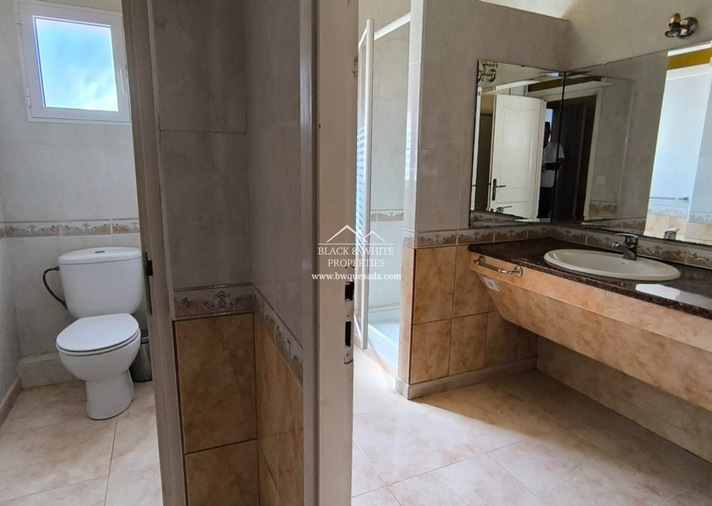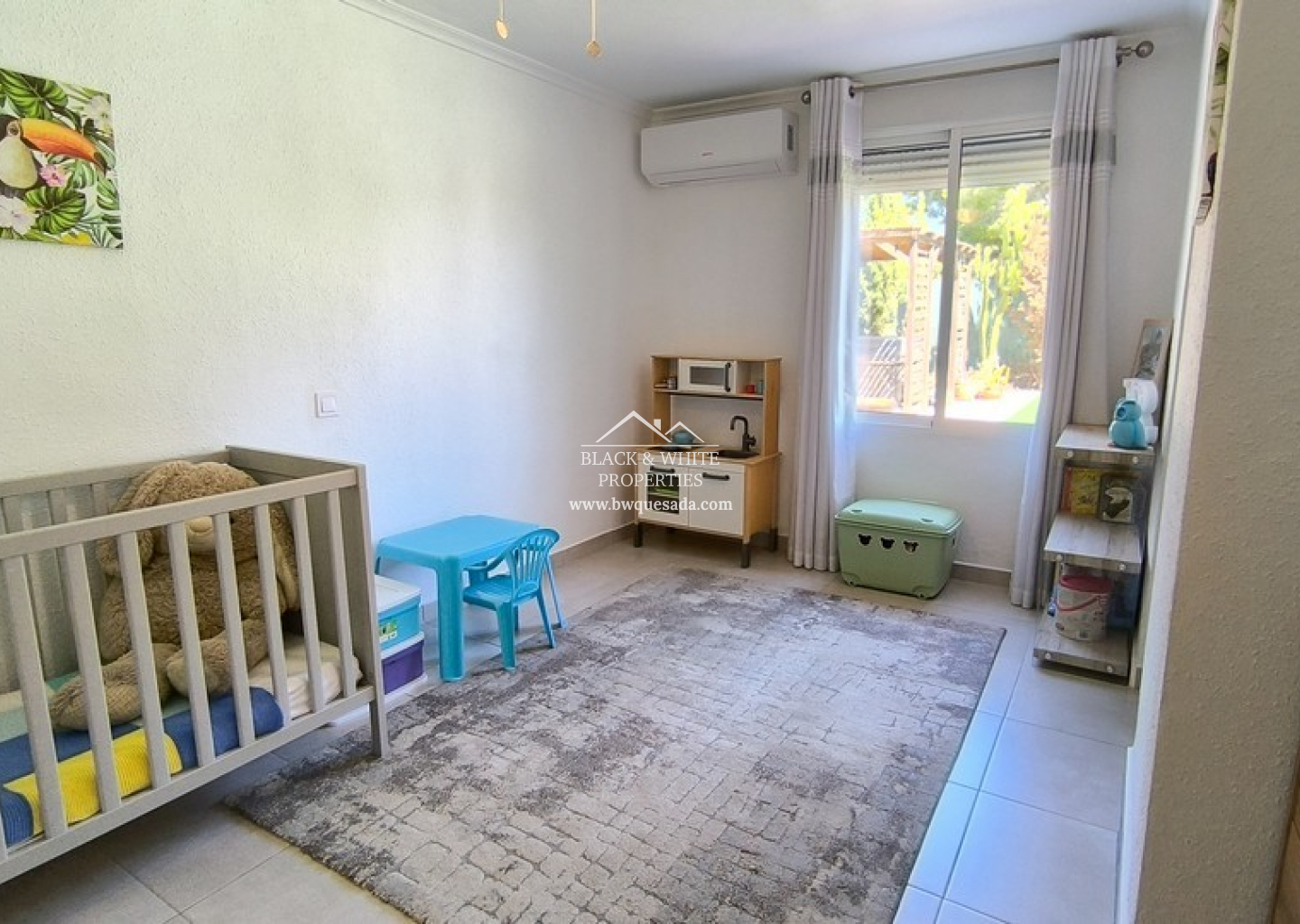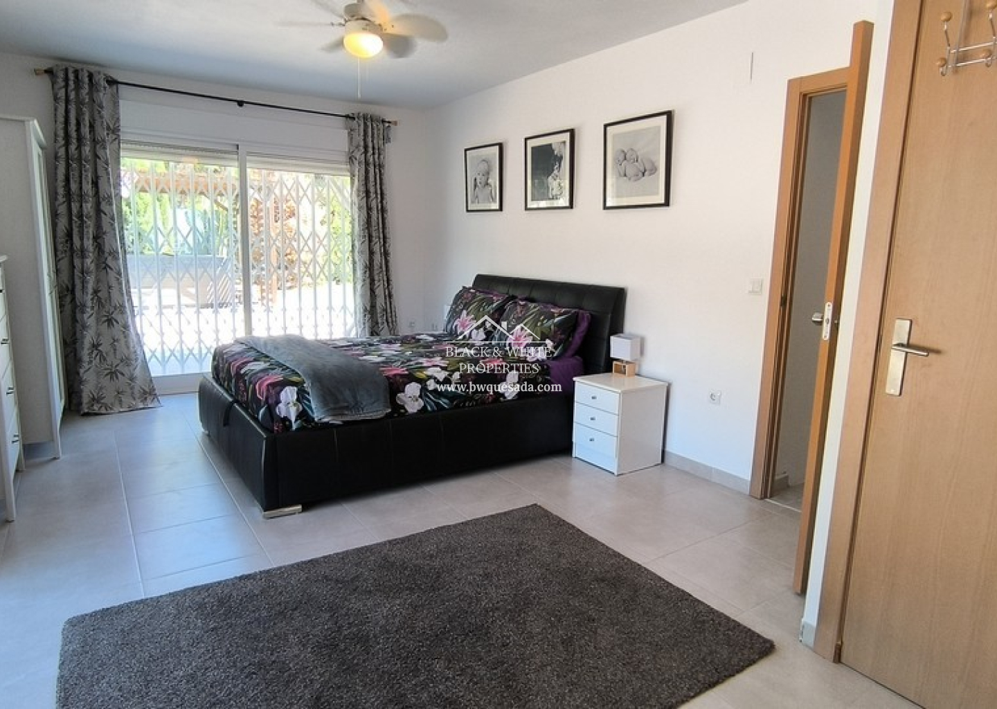 L’entrée principale mène à une terrasse couverte, idéale pour profiter du climat méditerranéen tout au long de l’année. À l’intérieur, un espace ouvert regroupe salon, salle à manger et cuisine, créant un environnement chaleureux et fonctionnel. Le salon dispose d’un poêle à bois, parfait pour les mois les plus frais. La villa compte cinq chambres, chacune avec sa propre salle de bain attenante, ainsi qu’une salle de bain familiale supplémentaire pour plus de praticité. Tout se trouve sur un seul niveau, facilitant la vie quotidienne.