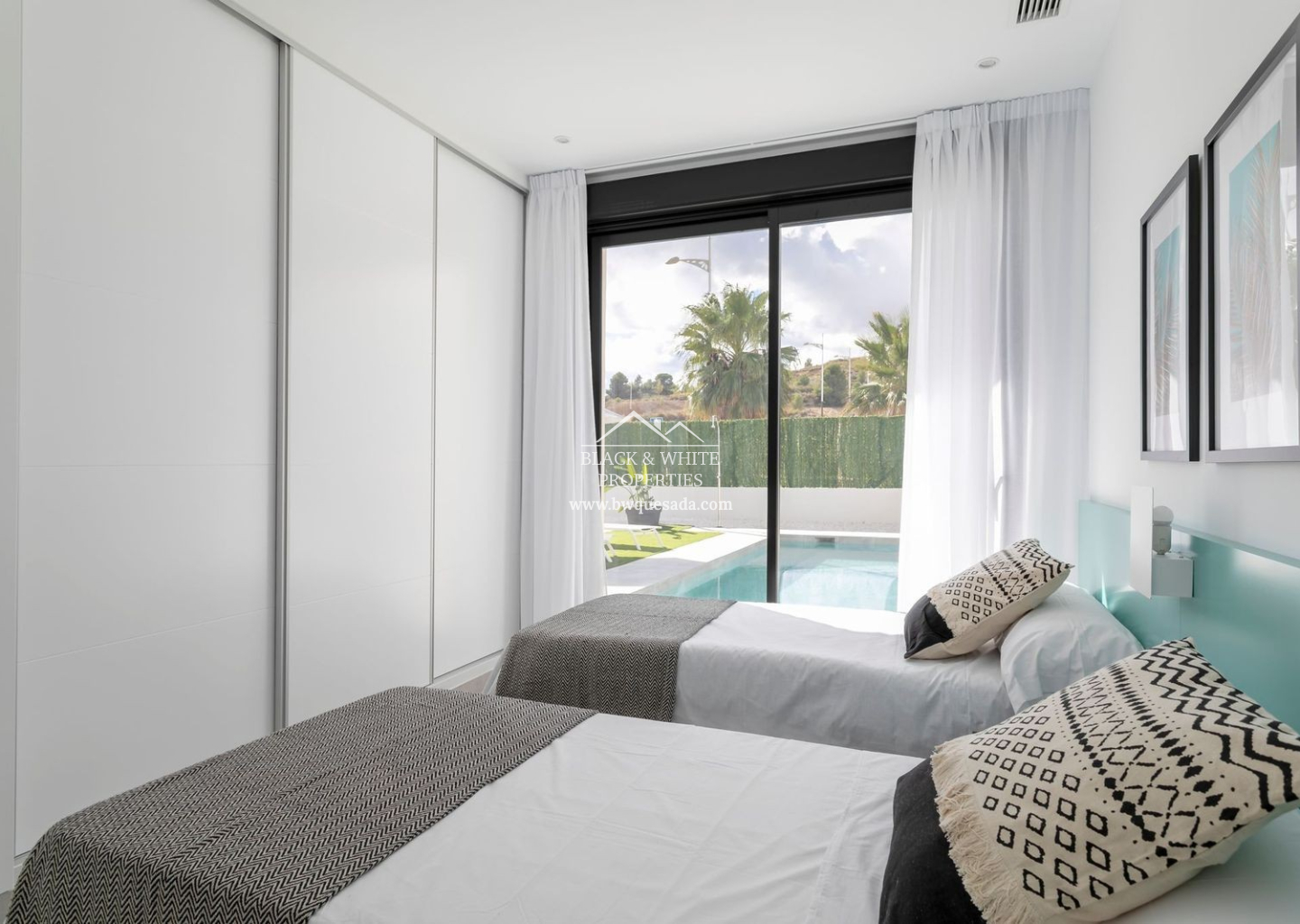 Villa individuelle de plain-pied avec 3 chambres, 2 salles de bains et piscine privée sur un terrain de 550 m². Modèle E. Située dans un développement immobilier à Murcie composé de 215 villas individuelles : 170 construites sur des parcelles de 545 m² et 45 sur des parcelles de 1 250 m².