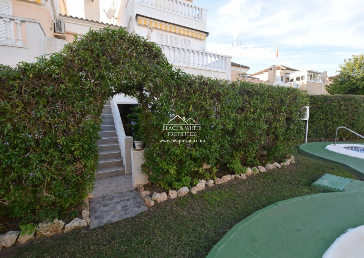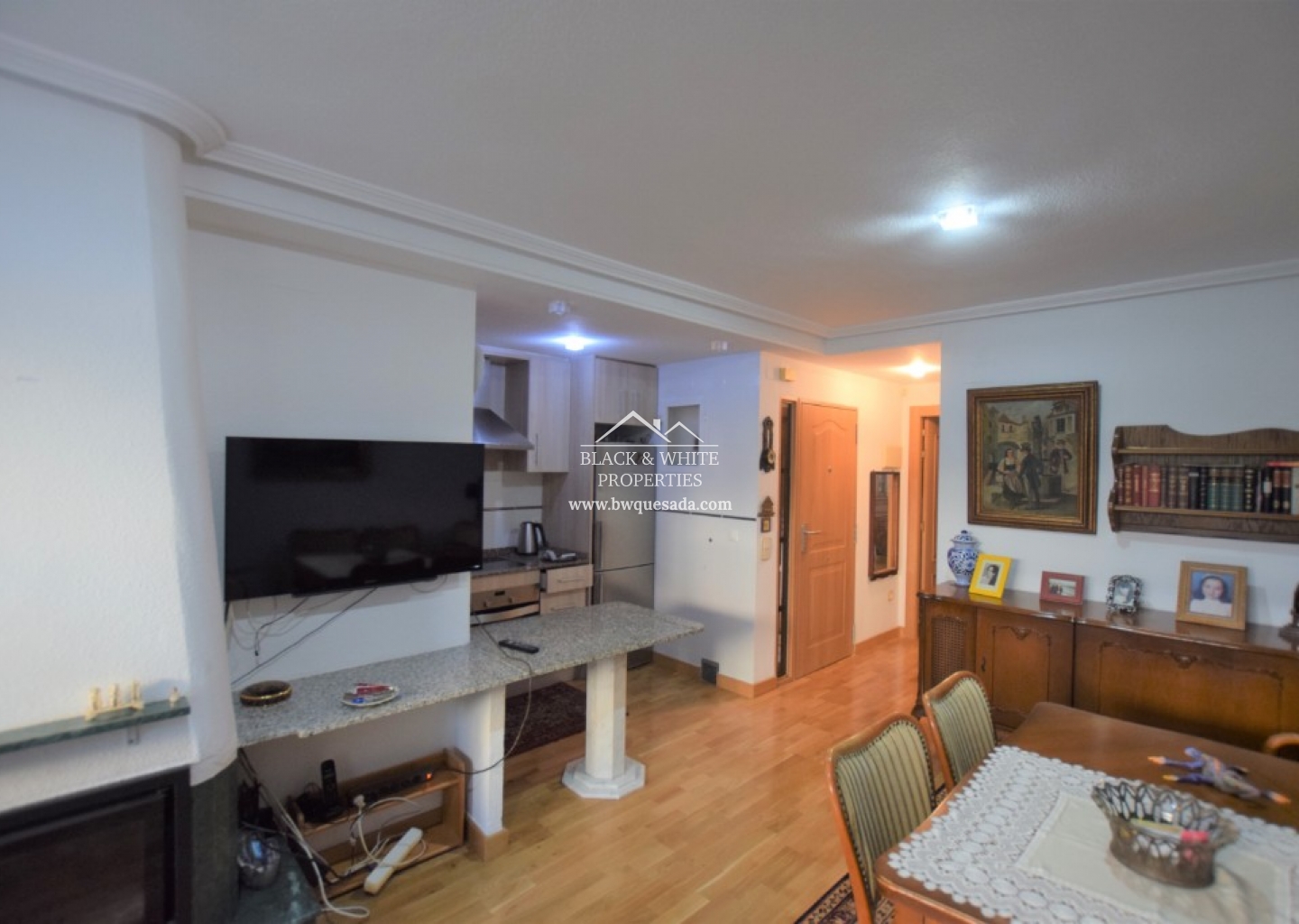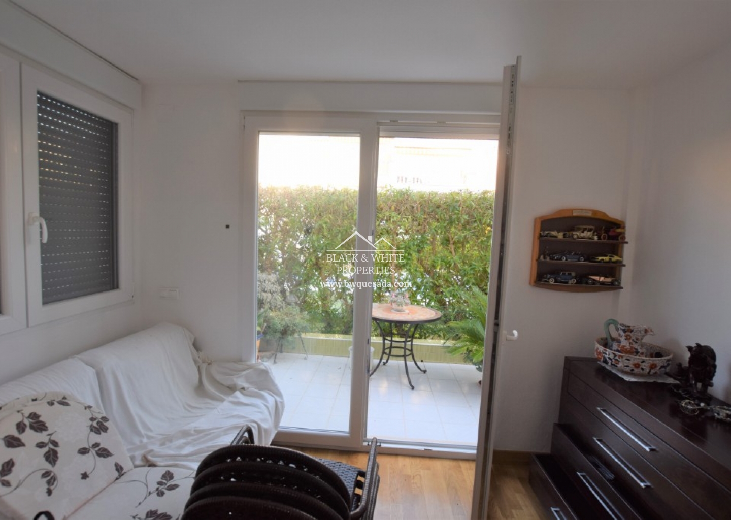 Ten apartament na parterze z jedną sypialnią i jedną łazienką znajduje się w Pórtico Mediterráneo, Guardamar del Segura. Przez główne drzwi otwierasz się na salon/jadalnię na otwartym planie, który integruje kuchnię z barem śniadaniowym. Z salonu wyjście na niewielki taras z widokiem na wspólny basen. Do mieszkania przynależy część pralnio-magazynowa z wyjściem na taras. Mieszkanie posiada klimatyzację typu split oraz kominek.
