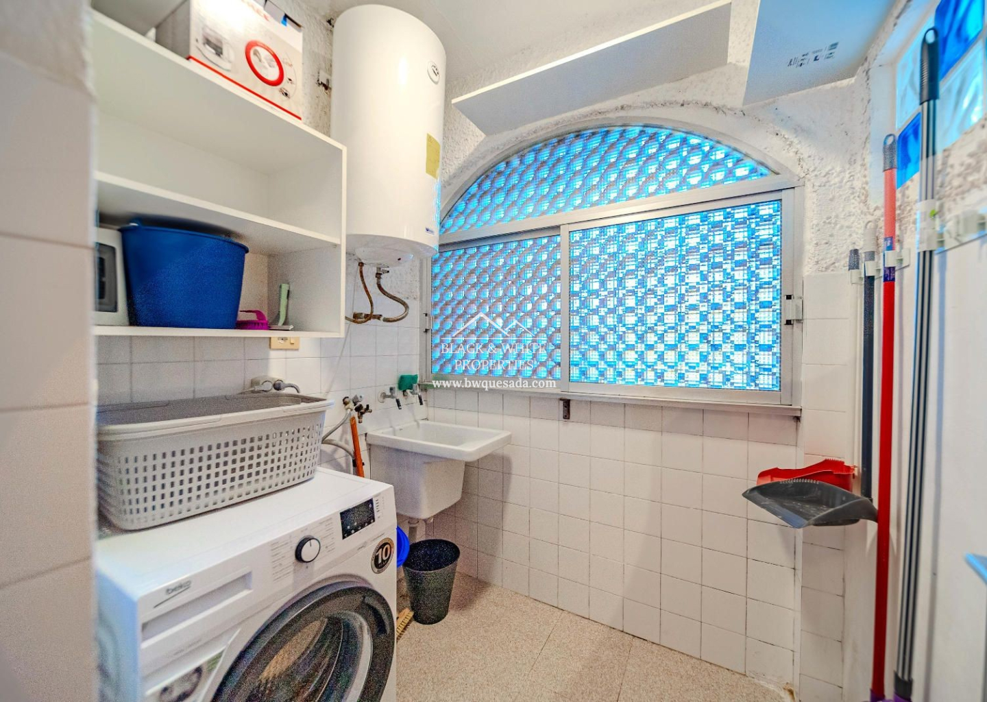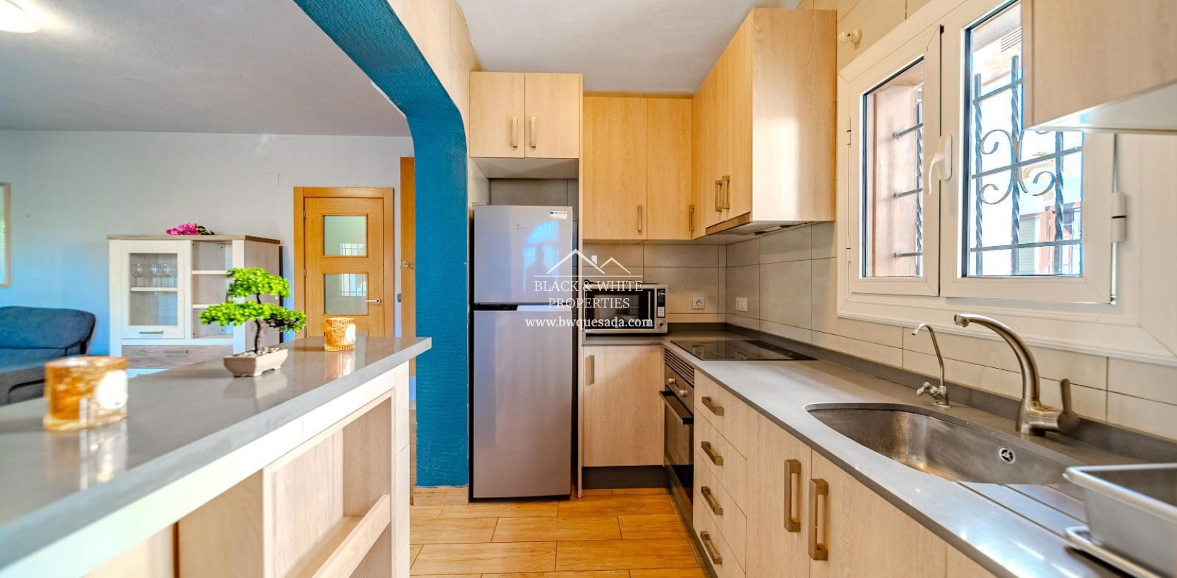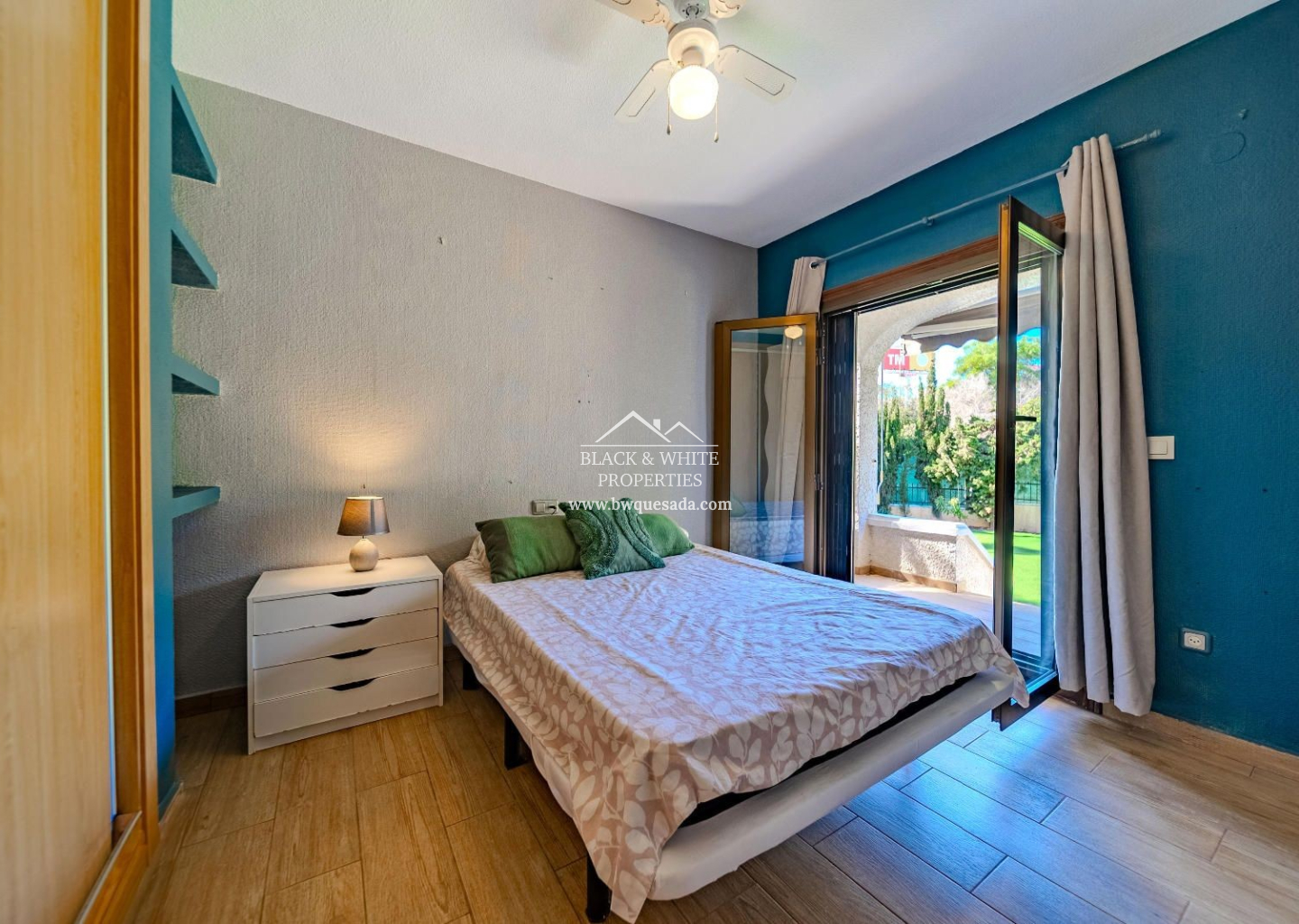 Ten wolnostojący dom w Playa Flamenca, z działką o powierzchni 406 m² i zabudowaną powierzchnią 142 m², to idealna opcja dla osób szukających przestronnego domu w uprzywilejowanej lokalizacji. Nieruchomość oferuje 3 sypialnie, 2 łazienki i wygodny, funkcjonalny układ pomieszczeń. Do dyspozycji są 3 tarasy, idealne do korzystania z śródziemnomorskiego klimatu. Duży prywatny ogród to doskonałe miejsce na relaks i spędzanie czasu na świeżym powietrzu, a wspólny basen pozwala ochłodzić się w cieplejsze dni. Dodatkowo dom posiada schowek i miejsce parkingowe, co zapewnia wygodę i dodatkową przestrzeń do przechowywania. Położony w spokojnej okolicy, z łatwym dostępem do wszystkich usług, ten dom jest doskonałym wyborem dla osób poszukujących wysokiej jakości życia na Costa Blanca.