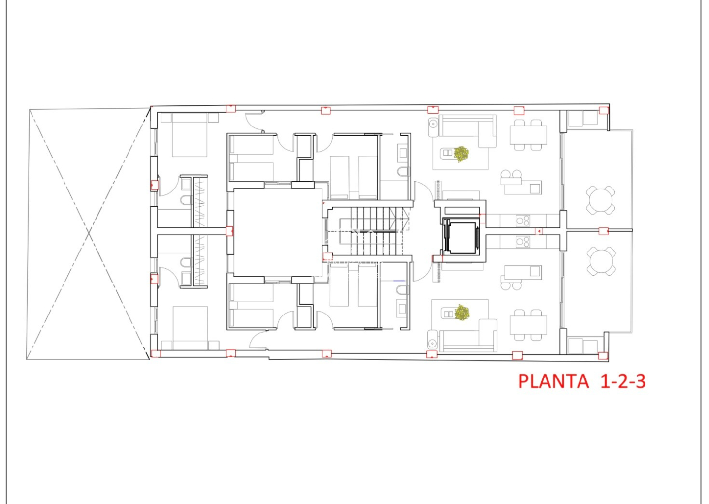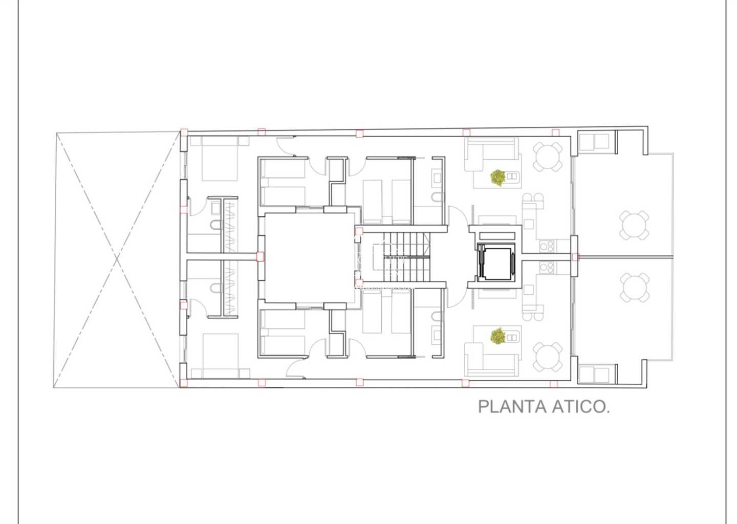 Do dyspozycji mieszkańców jest duży wspólny taras na dachu z zieloną strefą i jacuzzi — idealne miejsce na relaks i korzystanie z śródziemnomorskiego klimatu.