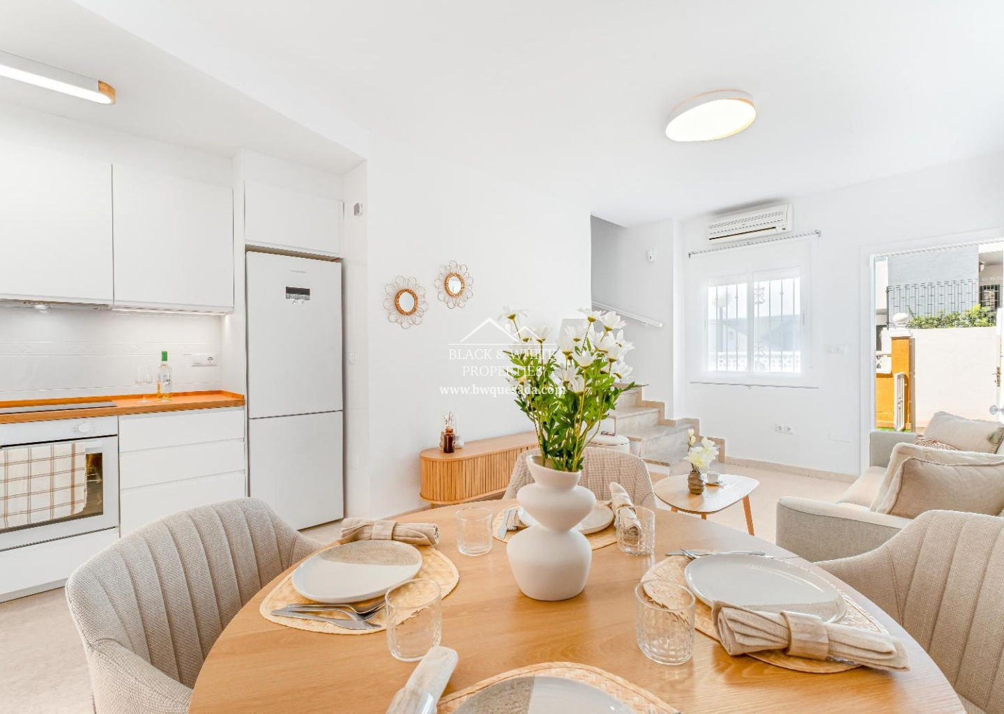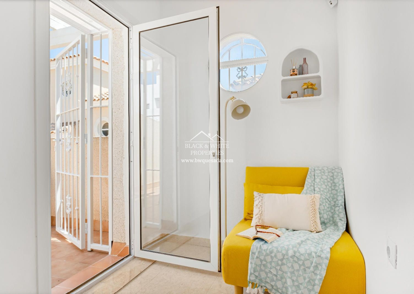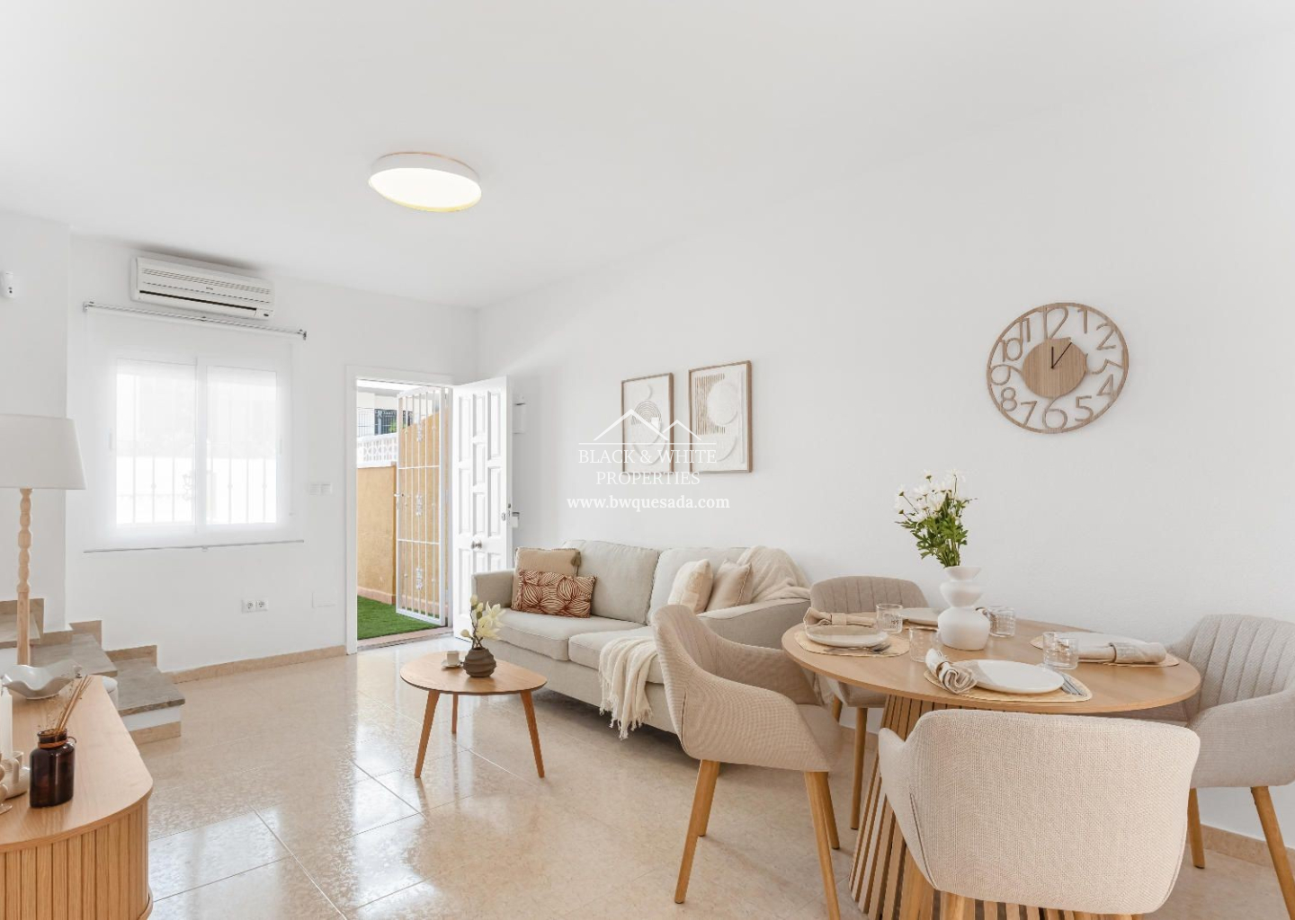Przedstawiamy uroczy dom szeregowy o powierzchni 80 m², położony w spokojnej, zadbanej urbanizacji z basenem wspólnym. Nieruchomość oferuje dwie przestronne sypialnie oraz dodatkowy pokój, który może służyć jako biuro lub garderoba – w zależności od potrzeb. Do dyspozycji są dwie w pełni wyposażone łazienki, zapewniające komfort na co dzień i podczas przyjmowania gości. Jednym z największych atutów domu jest prywatne solarium od strony południowo-zachodniej – idealne do opalania przez cały rok lub na kolacje pod gołym niebem. Dom jest w pełni umeblowany i wyposażony, z nową kuchnią oraz klimatyzacją – gotowy do zamieszkania od zaraz, bez żadnych zmartwień. Świetny wybór zarówno do zamieszkania na stałe, jak i na wakacyjny wypoczynek w słońcu Costa Blanca.