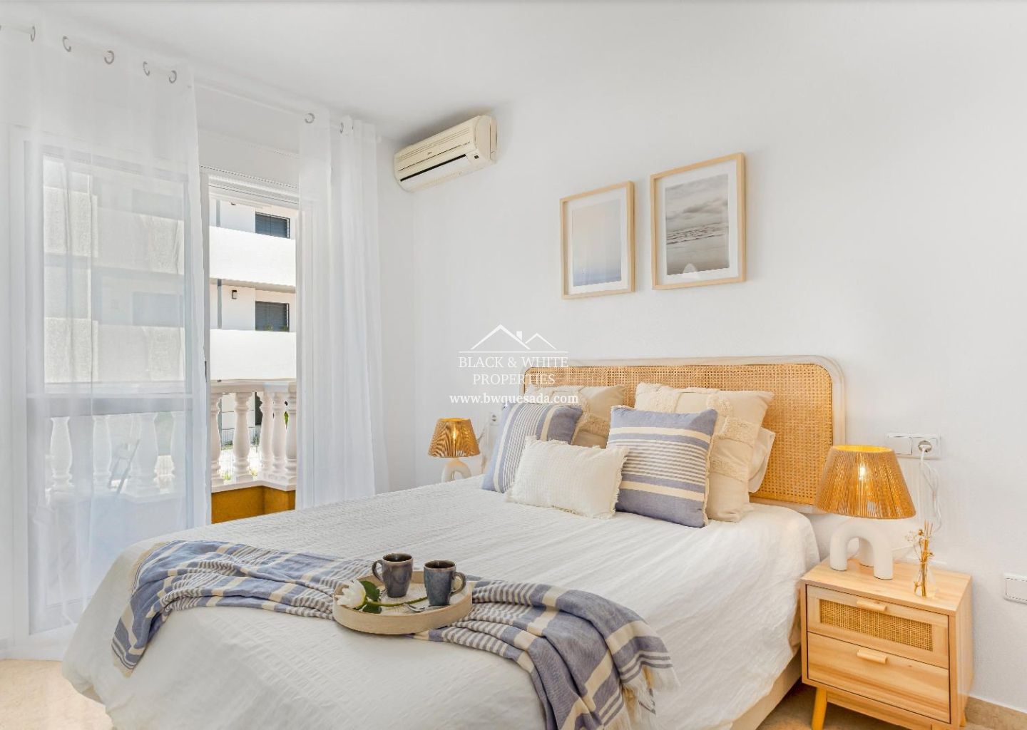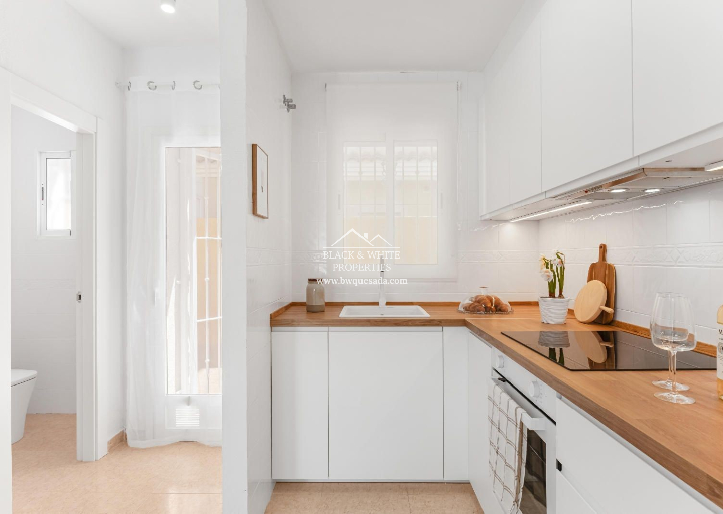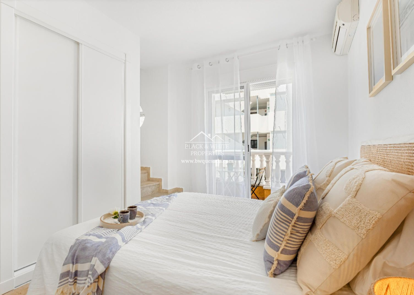 Przedstawiamy uroczy dom szeregowy o powierzchni 80 m², położony w spokojnej, zadbanej urbanizacji z basenem wspólnym. Nieruchomość oferuje dwie przestronne sypialnie oraz dodatkowy pokój, który może służyć jako biuro lub garderoba – w zależności od potrzeb. Do dyspozycji są dwie w pełni wyposażone łazienki, zapewniające komfort na co dzień i podczas przyjmowania gości. Jednym z największych atutów domu jest prywatne solarium od strony południowo-zachodniej – idealne do opalania przez cały rok lub na kolacje pod gołym niebem. Dom jest w pełni umeblowany i wyposażony, z nową kuchnią oraz klimatyzacją – gotowy do zamieszkania od zaraz, bez żadnych zmartwień. Świetny wybór zarówno do zamieszkania na stałe, jak i na wakacyjny wypoczynek w słońcu Costa Blanca.