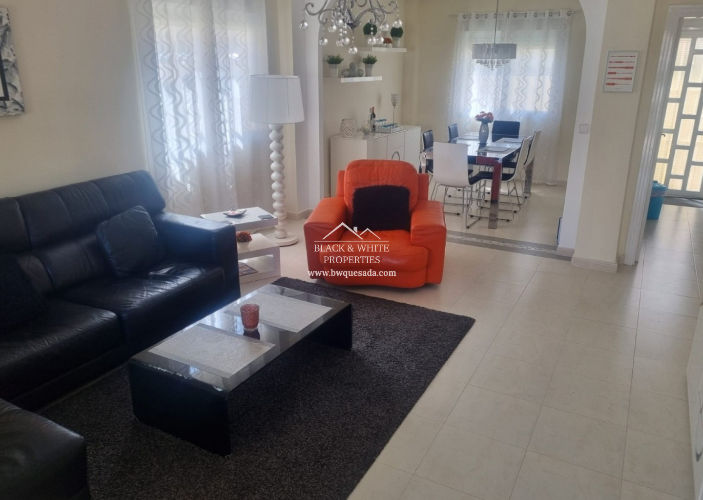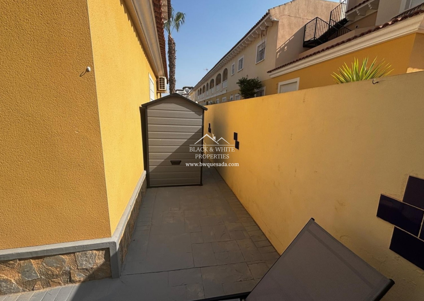 Prezentujemy ten 2- lub 3-pokojowy, w stylu Lola, szeregowiec położony w pożądanej dzielnicy Dona Pepa, w prywatnym osiedlu. Nieruchomość została odnowiona przy użyciu wysokiej jakości materiałów przez obecnych właścicieli. Ma narożną lokalizację, z ogrodem z przodu i z tyłu, a także bocznym wejściem. Zewnętrzne ściany zostały podniesione dla prywatności, a na zewnątrz dodano pomieszczenie gospodarcze z pralką i pomieszczeniem gospodarczym. Wewnątrz obecni właściciele zachowali salon-jadalnię. Jadalnię tę można łatwo przekształcić w trzecią sypialnię, jeśli zajdzie taka potrzeba. Meble, które są wliczone w cenę nieruchomości, są wyjątkowej jakości. Nieruchomość jest gotowa do zamieszkania, co pozwala cieszyć się nią od pierwszej chwili.