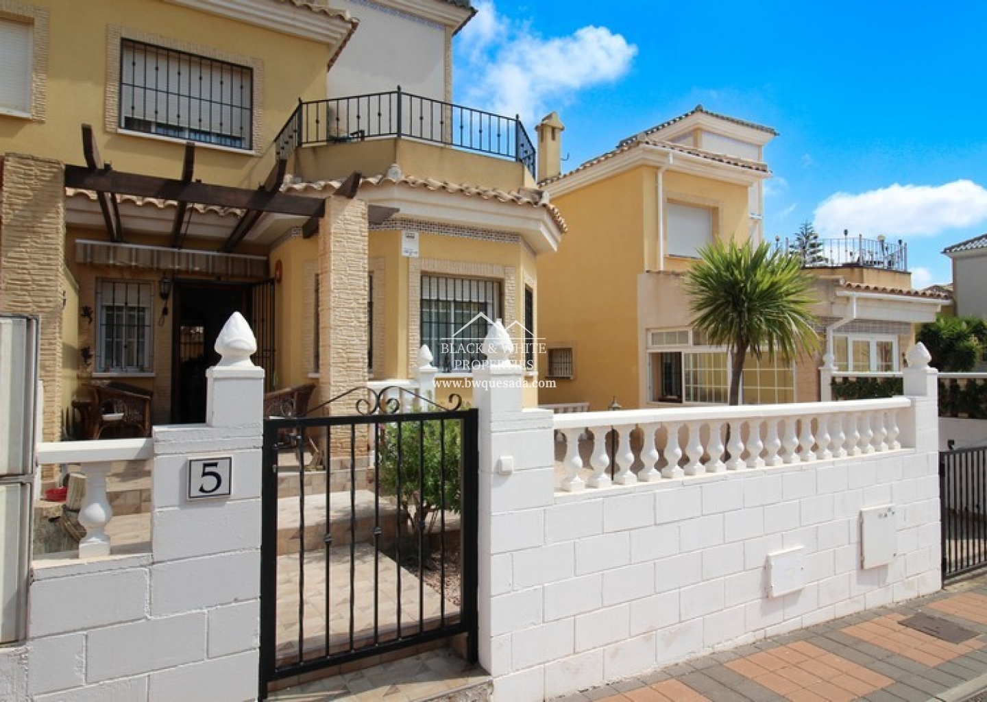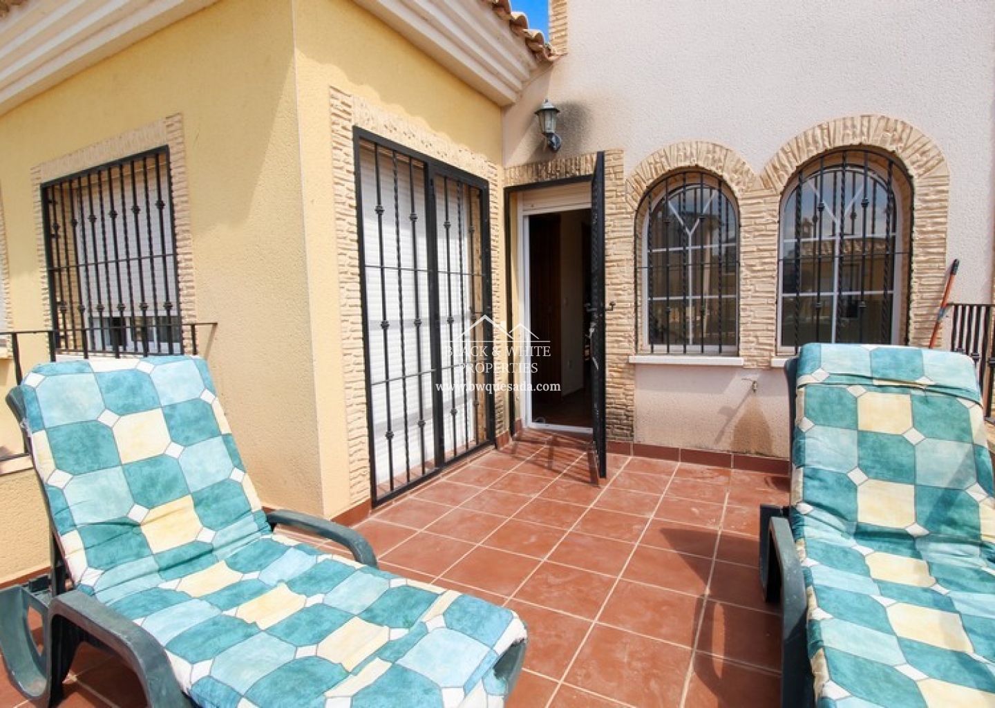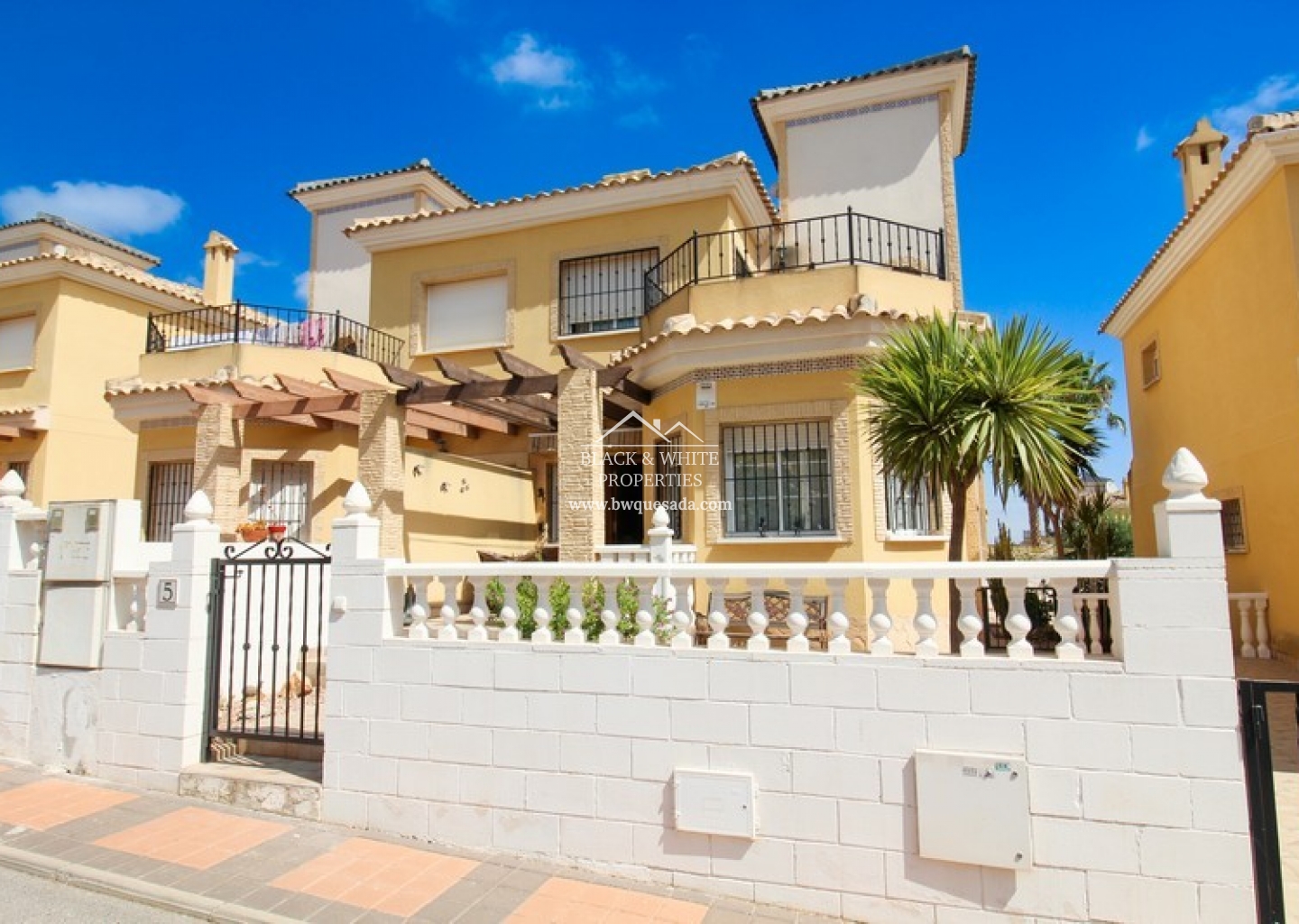 Three bedroom, two bathroom semi-detached villa in Lo Crispín urb, Algorfa is one of the best value properties on the market at the moment. The perfect blend of a holiday home and permanent residence, it could be either for the right buyer. On a low-maintenance plot of 195m2, there’s off road parking, a well cared for front garden and a good outside space to the rear of the property. Inside, the living/dining area is ample and the separate kitchen has access to the garden. There is one bedroom and a bathroom on this floor both of which are more than suitable in size. Upstairs are two further double bedrooms and the family bathroom; the master bedroom has direct access to the terrace at the front of the property although this can also be accessed from the stairwell. There is a large communal pool about thirty seconds walk from the property to emphasise that this property really is an all-rounder.