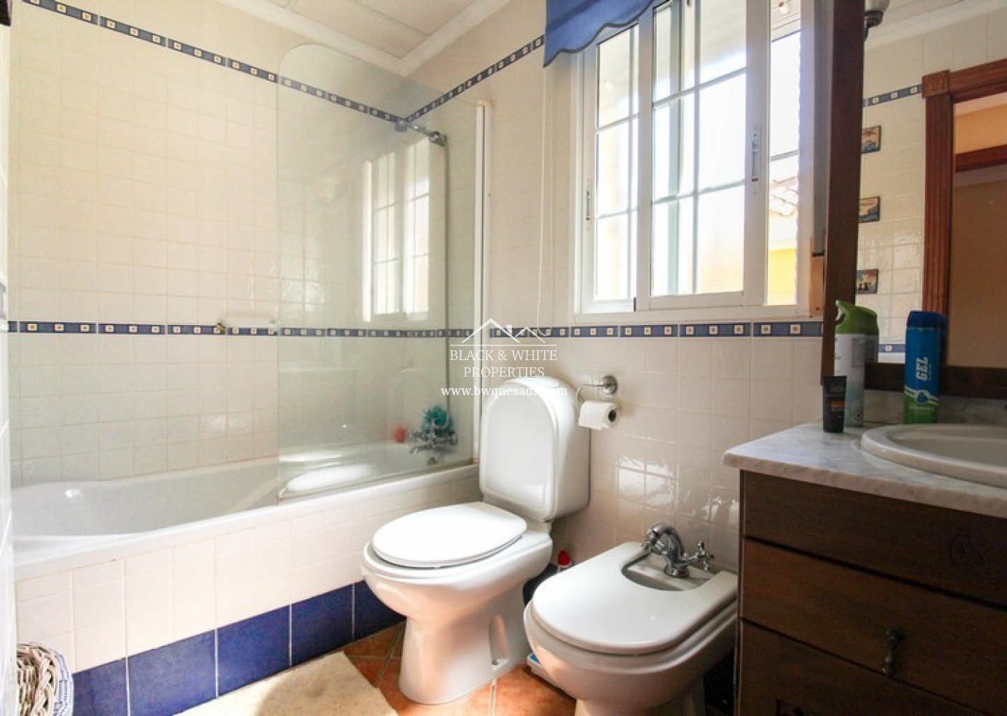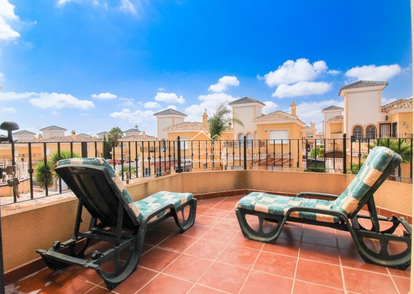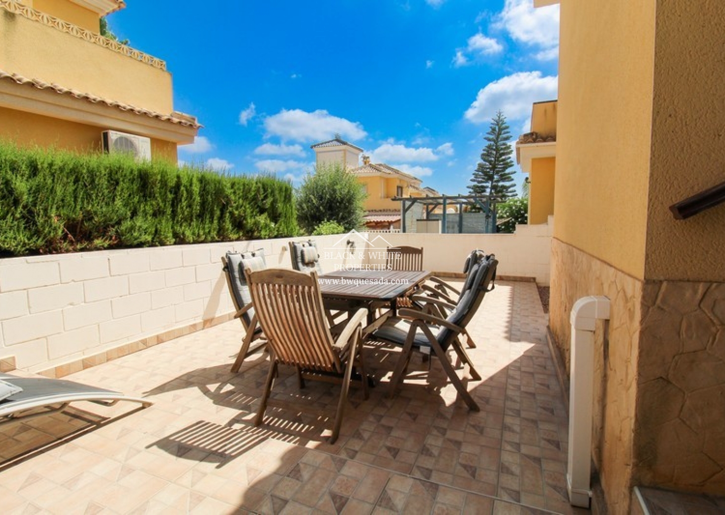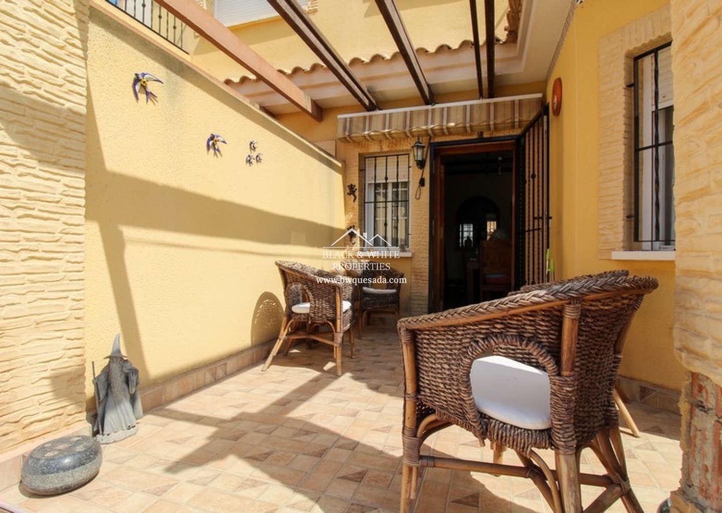 Three bedroom, two bathroom semi-detached villa in Lo Crispín urb, Algorfa is one of the best value properties on the market at the moment. The perfect blend of a holiday home and permanent residence, it could be either for the right buyer. On a low-maintenance plot of 195m2, there’s off road parking, a well cared for front garden and a good outside space to the rear of the property. Inside, the living/dining area is ample and the separate kitchen has access to the garden. There is one bedroom and a bathroom on this floor both of which are more than suitable in size. Upstairs are two further double bedrooms and the family bathroom; the master bedroom has direct access to the terrace at the front of the property although this can also be accessed from the stairwell. There is a large communal pool about thirty seconds walk from the property to emphasise that this property really is an all-rounder.