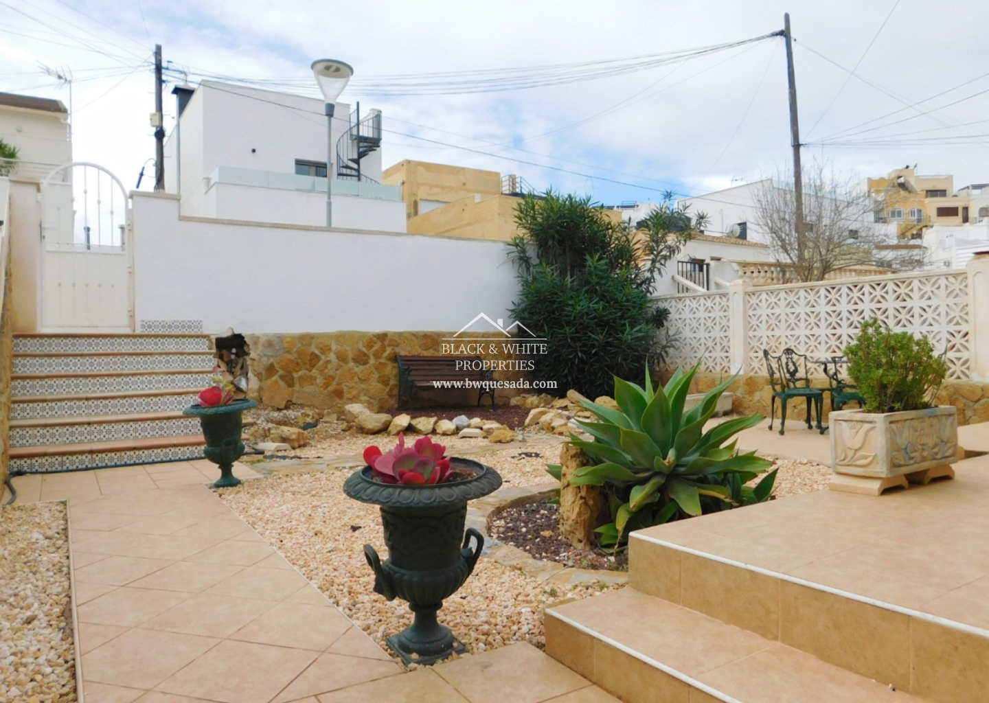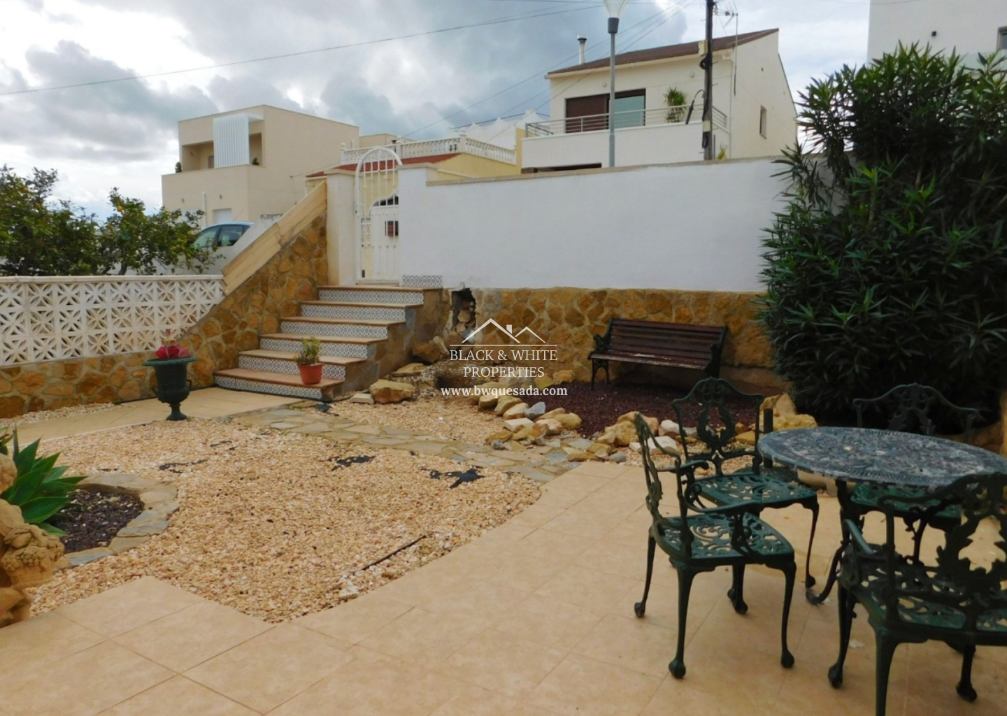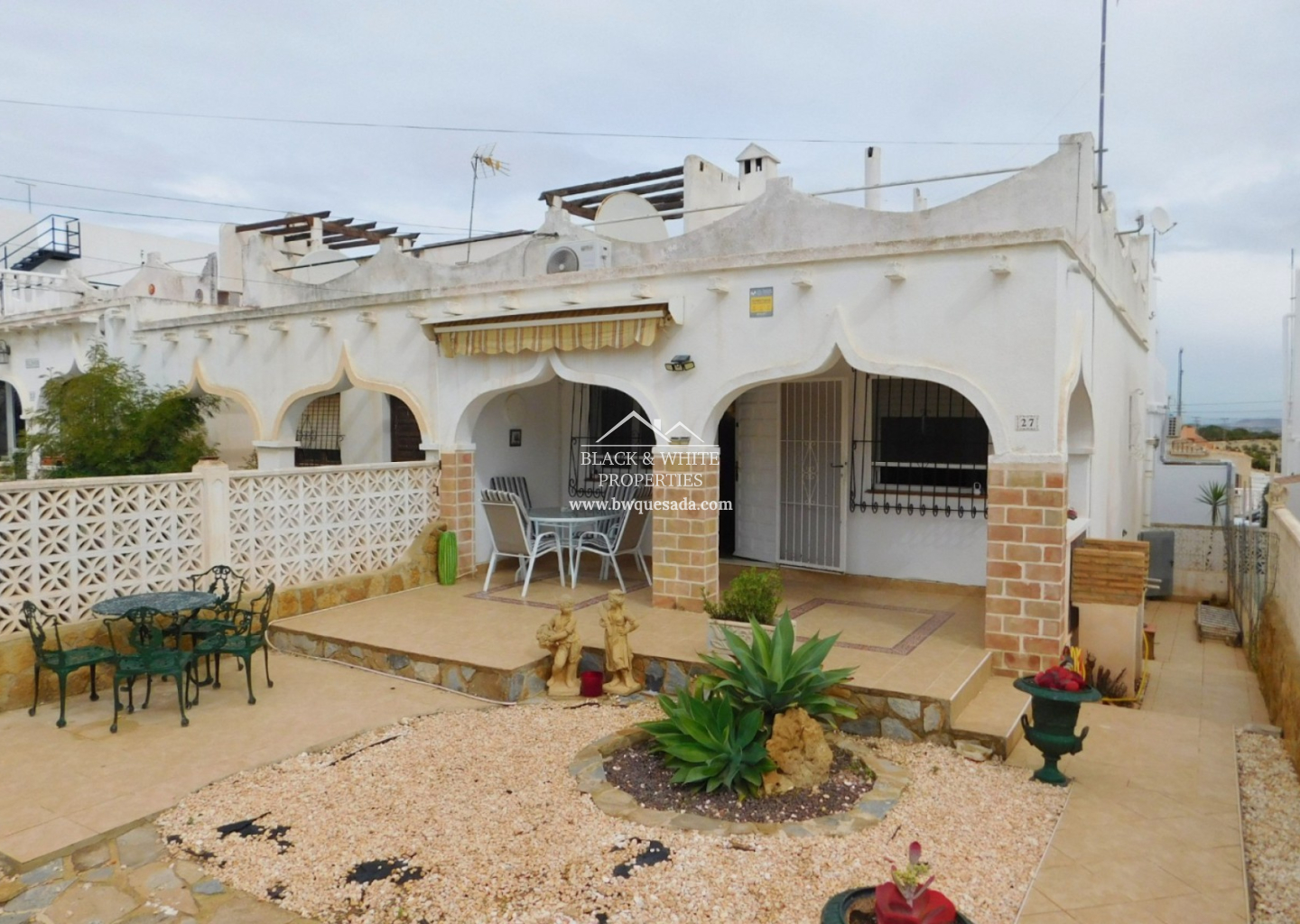 This beautiful semi-detached bungalow, located in the picturesque setting of San Miguel de Salinas, offers the perfect balance between comfort and Mediterranean lifestyle. The property features 2 cozy bedrooms, bright living room, functional kitchen, spacious and sunny private garden of 75 m² with south orientation, upper-floor terrace, basement with multiple possibilities. Additionally, it has permission to expand the first floor and build a private pool in the front garden. All plans have been approved by the town hall and designed by a professional architect. Its excellent location offers a peaceful environment, with an international school nearby and the charming town of San Miguel de Salinas just a short walk away. There, you will find a variety of shops, bars, restaurants, a 24/7 medical center, schools, and a municipal sports complex.
