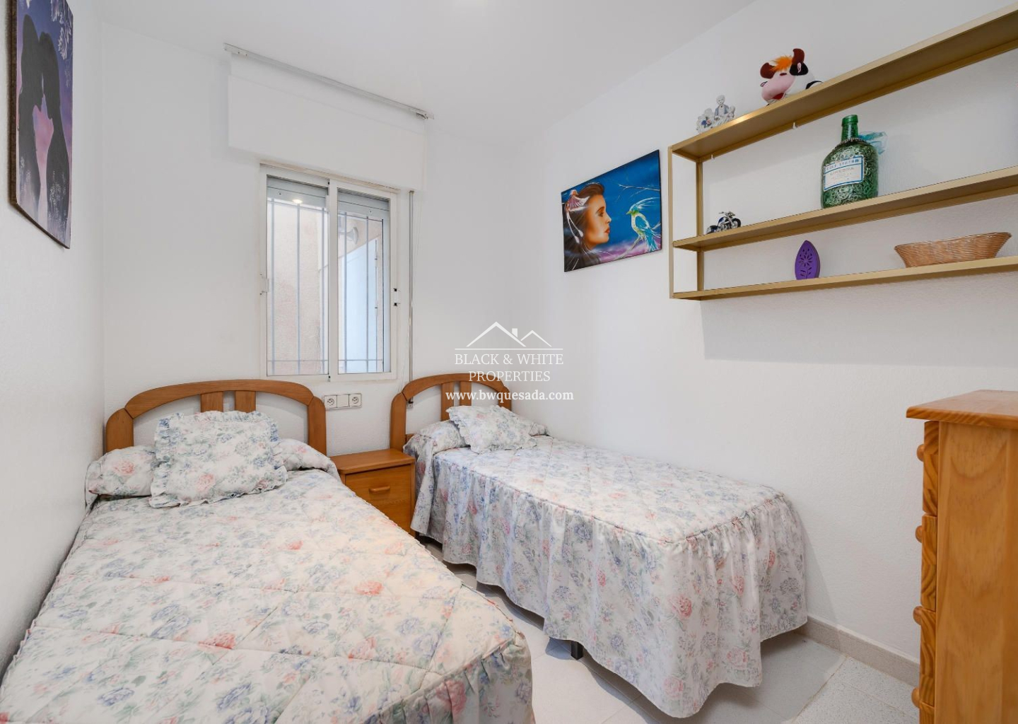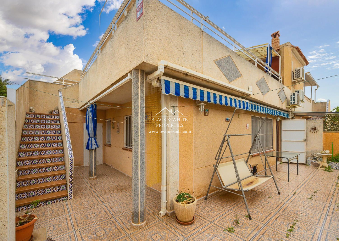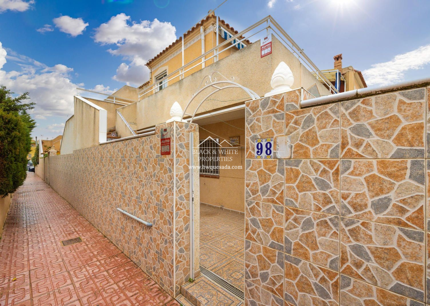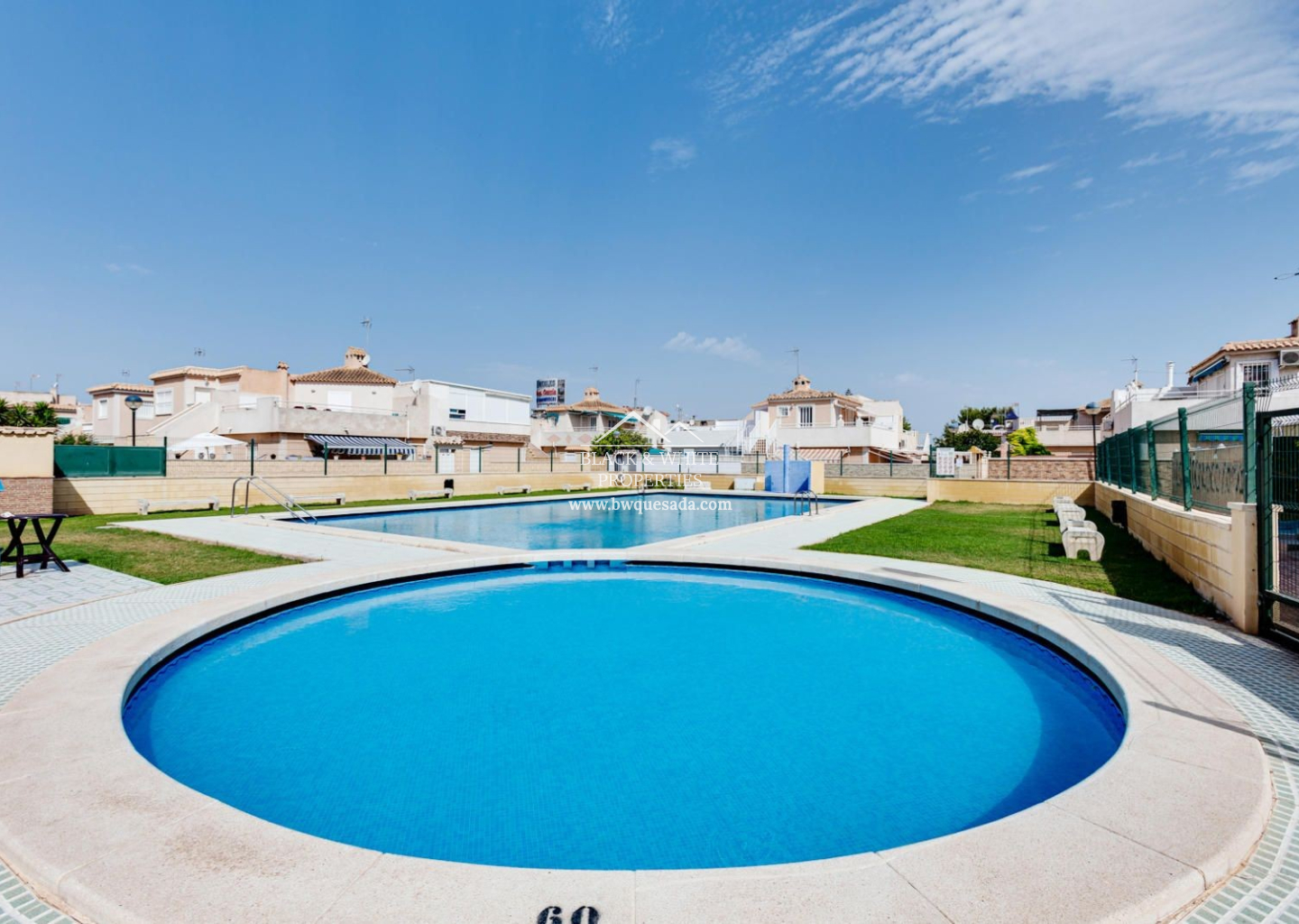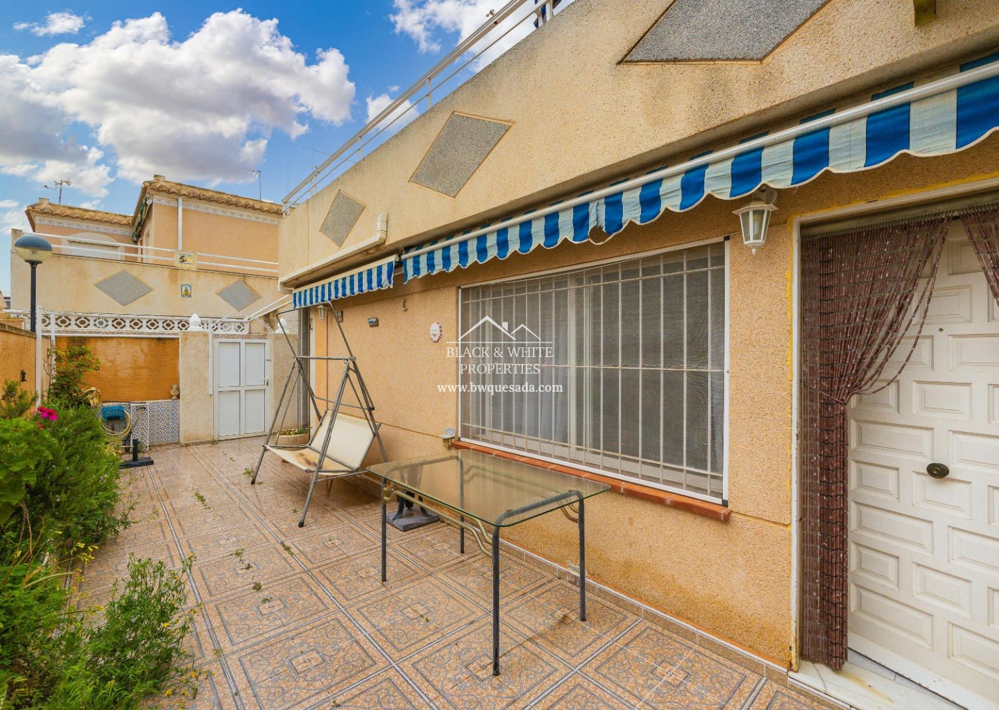 Cozy townhouse in Torrevieja that combines comfort, security, and good taste. This furnished property features 2 bedrooms and 1 bathroom on the ground floor, plus 2 bedrooms and 1 bathroom on the upper floor — ideal for families or as a second home near the sea. The property includes a private terrace, perfect for enjoying the Mediterranean climate, as well as air conditioning and heating, ensuring year-round comfort. It is also equipped with an indoor alarm system, offering added peace of mind and security. Part of a residential complex with a communal pool — perfect for cooling off in the warmer months — it also includes a storage room, providing extra storage space.