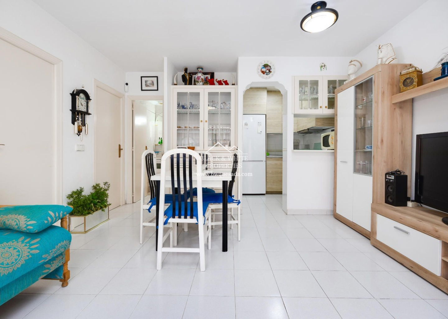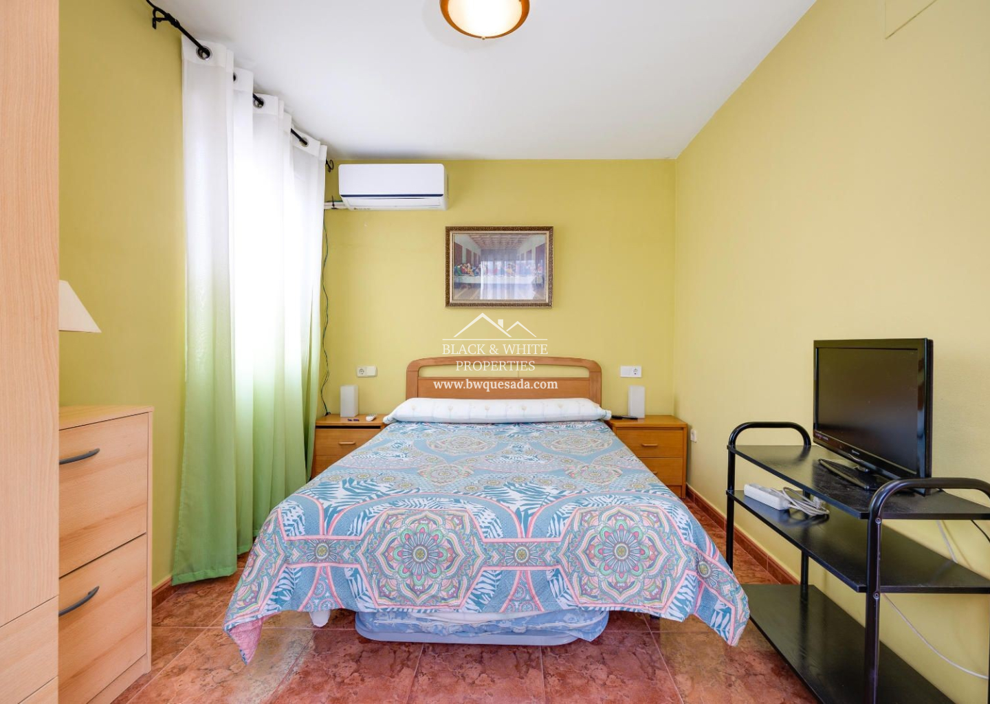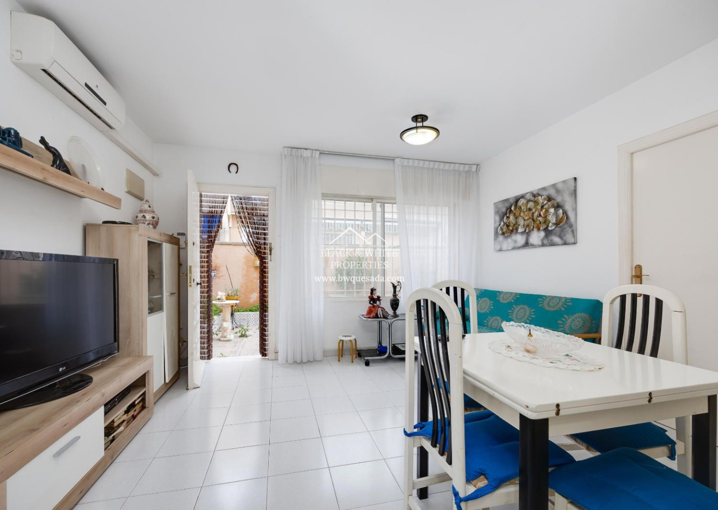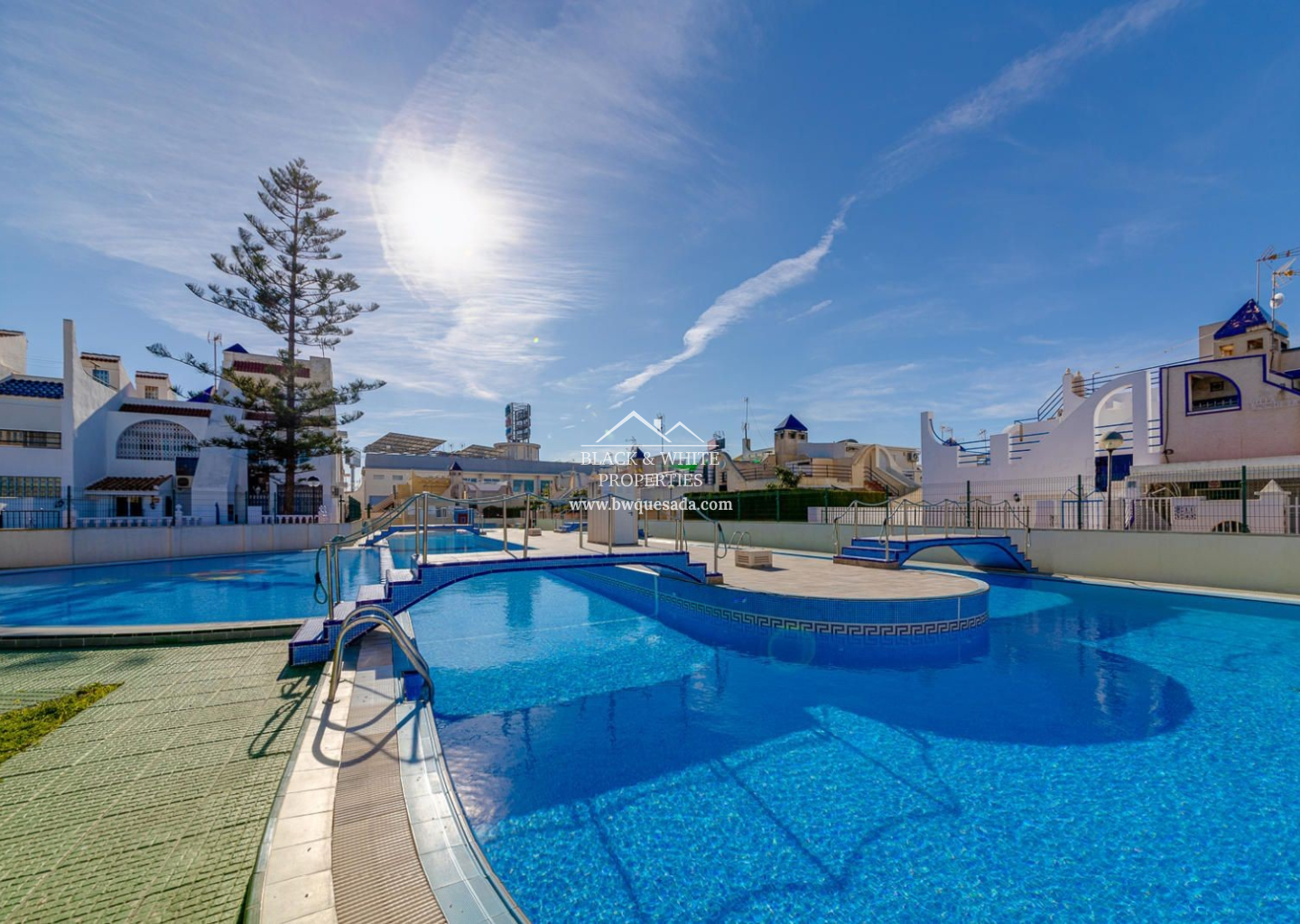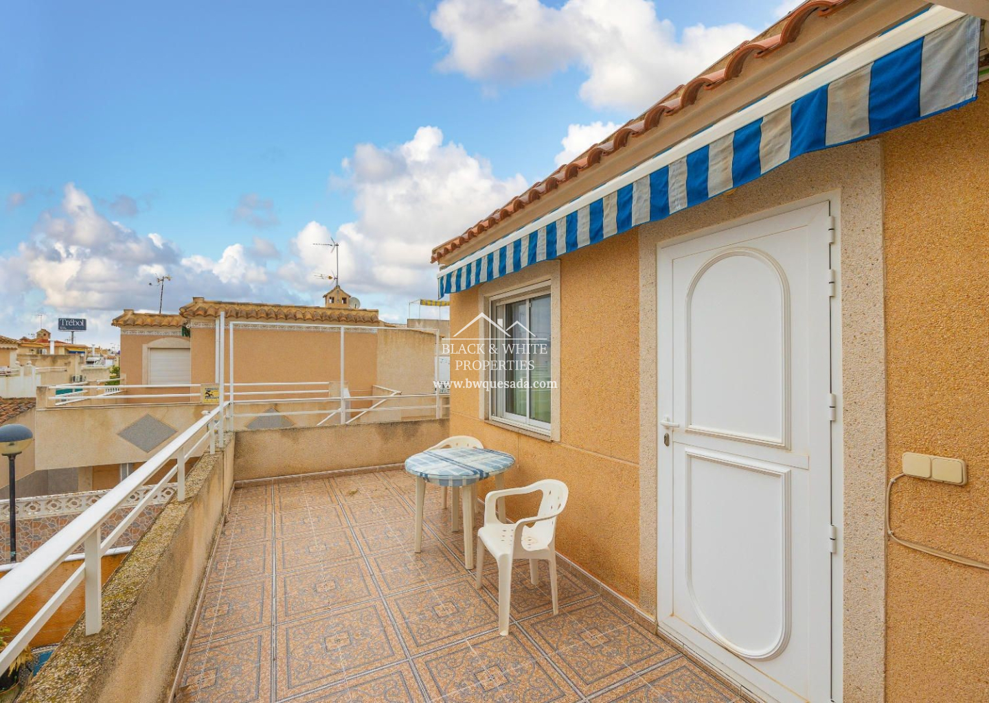 Cozy townhouse in Torrevieja that combines comfort, security, and good taste. This furnished property features 2 bedrooms and 1 bathroom on the ground floor, plus 2 bedrooms and 1 bathroom on the upper floor — ideal for families or as a second home near the sea. The property includes a private terrace, perfect for enjoying the Mediterranean climate, as well as air conditioning and heating, ensuring year-round comfort. It is also equipped with an indoor alarm system, offering added peace of mind and security. Part of a residential complex with a communal pool — perfect for cooling off in the warmer months — it also includes a storage room, providing extra storage space.