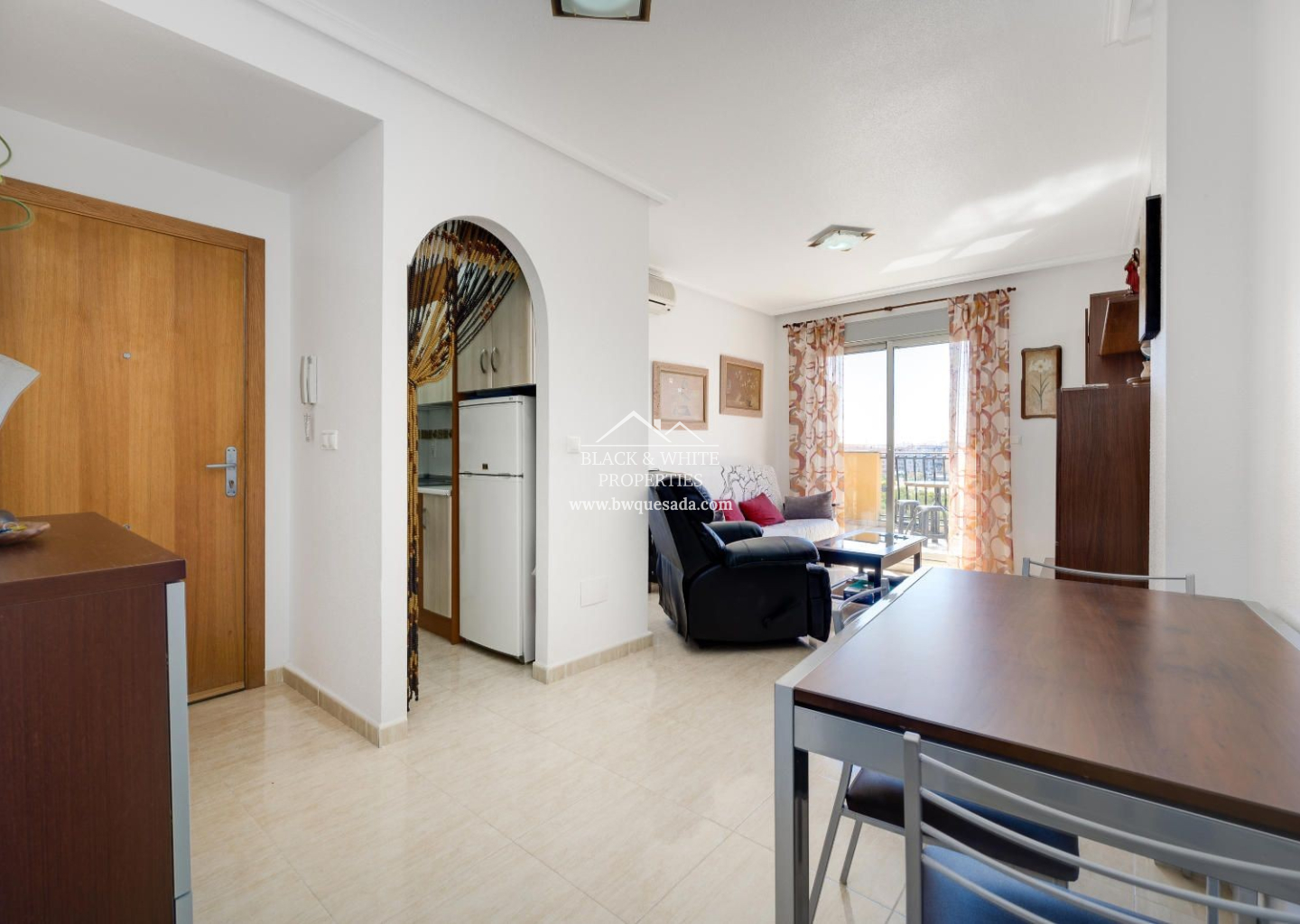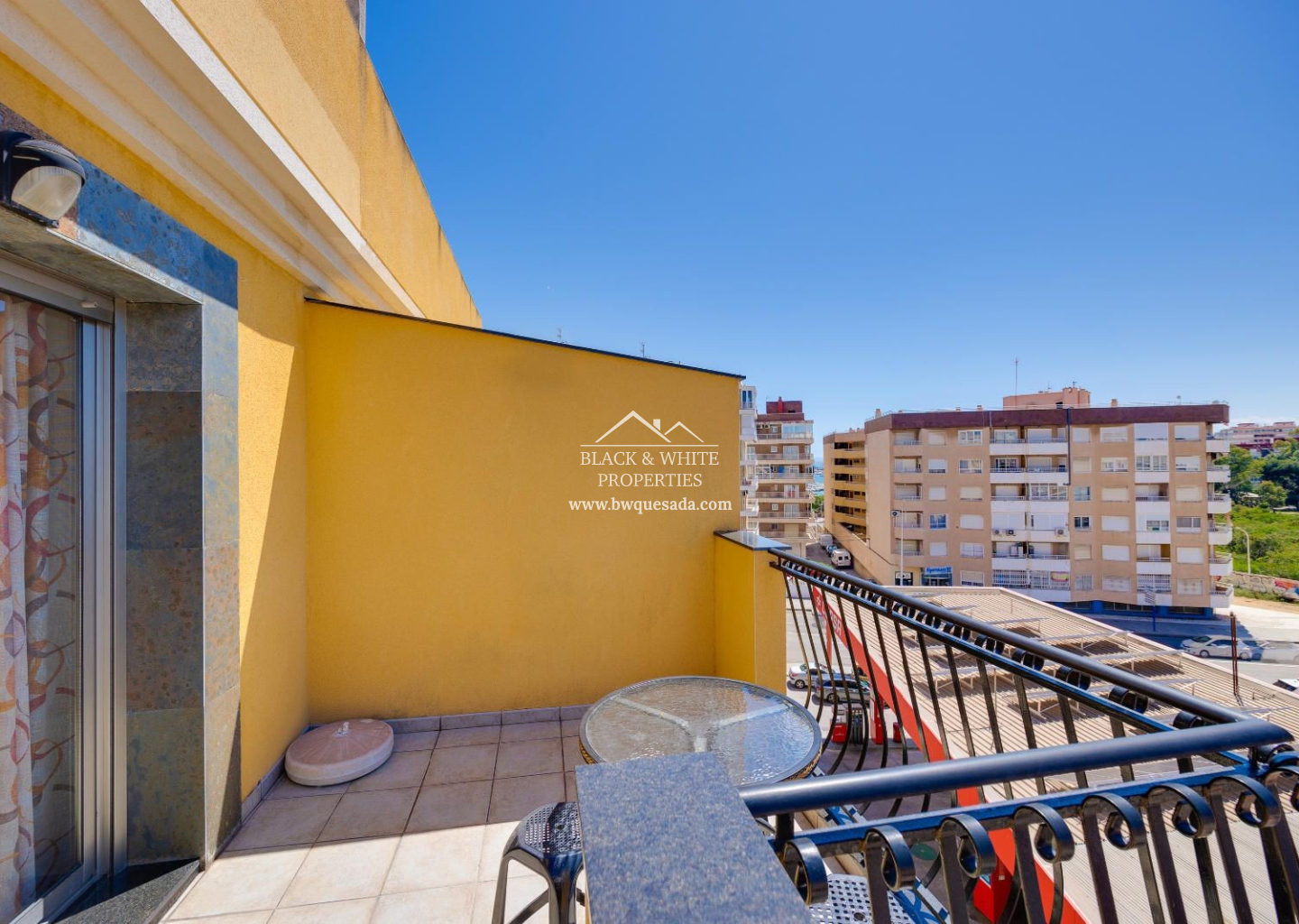 Bright penthouse just 300 meters from the sea in Torrevieja – Enjoy the Mediterranean lifestyle. We present this magnificent penthouse located on the fourth and top floor of a modern building with elevator. With a constructed area of 64 m², this cozy home offers a well-distributed space that includes two bedrooms with built-in wardrobes, a full bathroom, and a bright living-dining room with direct access to a large and sunny 8 m² private terrace. From this southeast-facing terrace, you can enjoy the sun practically all day long, making it the perfect spot for having breakfast al fresco, relaxing with a good book, or simply letting the sea breeze carry you away. The penthouse is being sold fully furnished and equipped, ready to move into without the need for any renovations.