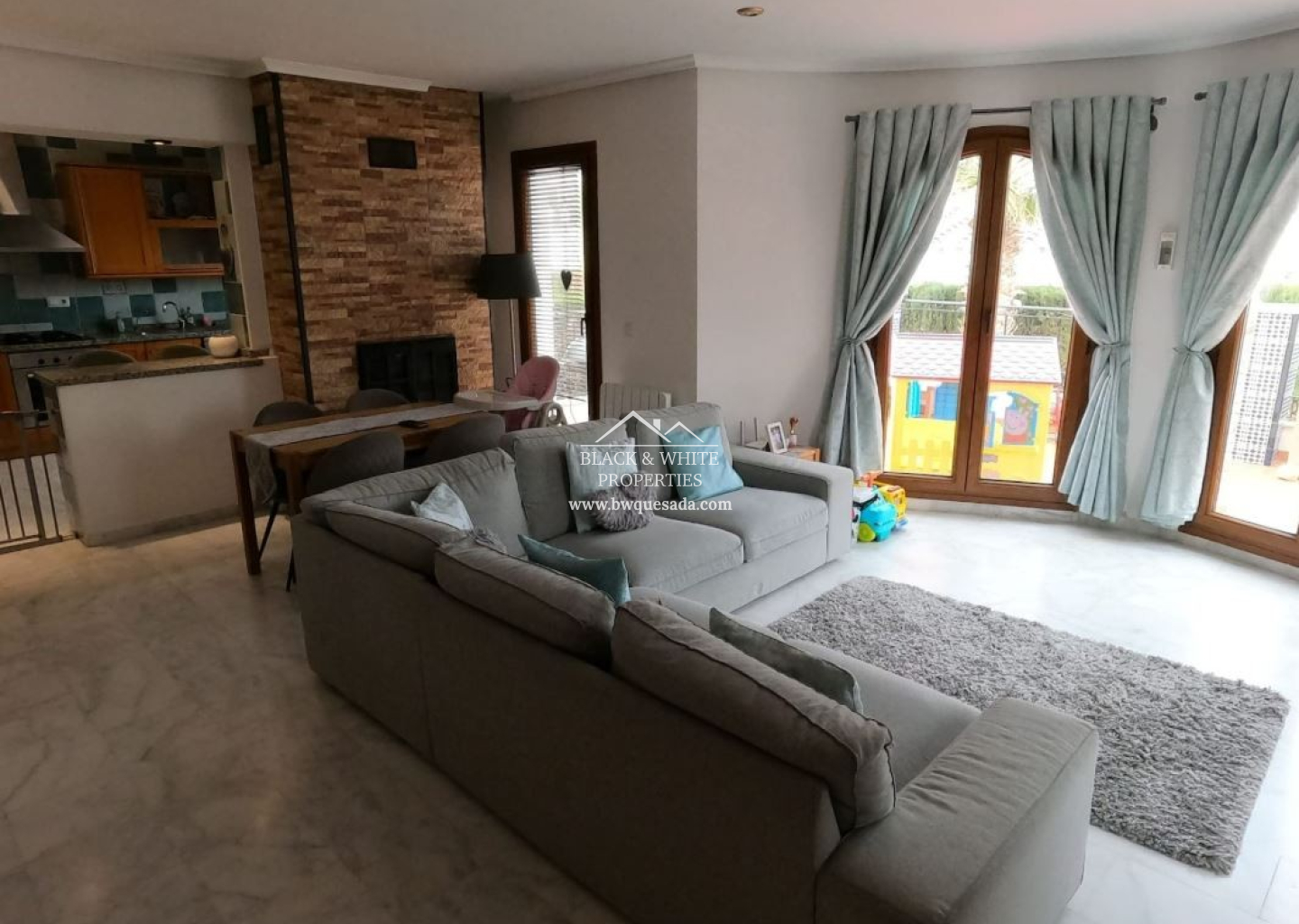 Detached Villa nestled on a corner plot in the prestigious La Finca Golf community. This spacious home boasts an impressive internal area of 160 m² and features four bright bedrooms, offering plenty of room for family and guests. With three well-appointed bathrooms, morning routines will be a breeze. The central AC system ensures year-round comfort, while the basement provides additional versatile space that you can tailor to your needs. Step outside to discover your own private swimming pool. This a perfect family home with 3 bedrooms in the upper levels and 1 bedroom, 1 bathroom and huge living space in the underbuilt with a separate entrance. This could be a guest apartment. Extra's include: air conditioning, log burner, guest accomodation with separate entrance.