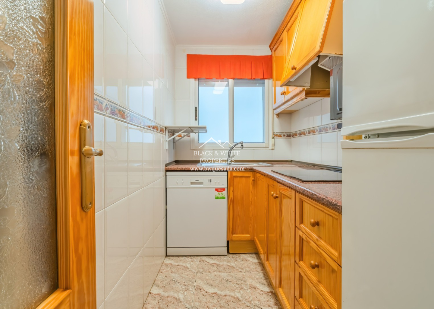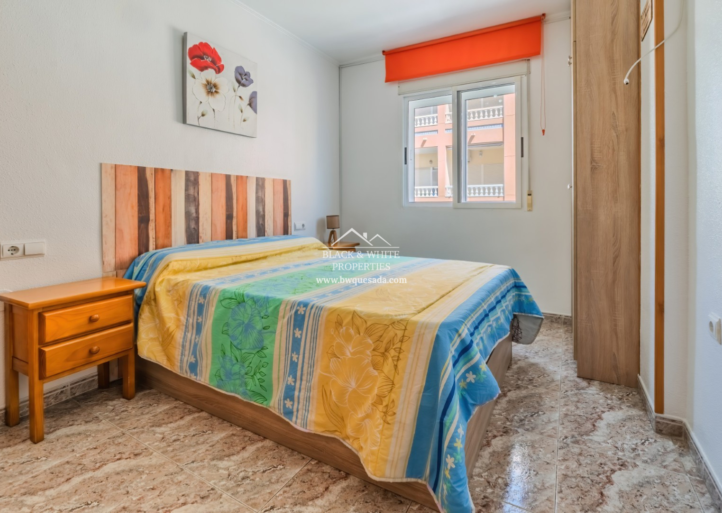 Fully furnished, move-in ready apartment for sale on the 3rd floor with a glazed terrace. It features 2 bedrooms with built-in wardrobes, 1 full bathroom, a living-dining room, a fully equipped separate kitchen, and air conditioning. North-facing, the building is wheelchair accessible. It is located just 350 meters from Playa del Cura.