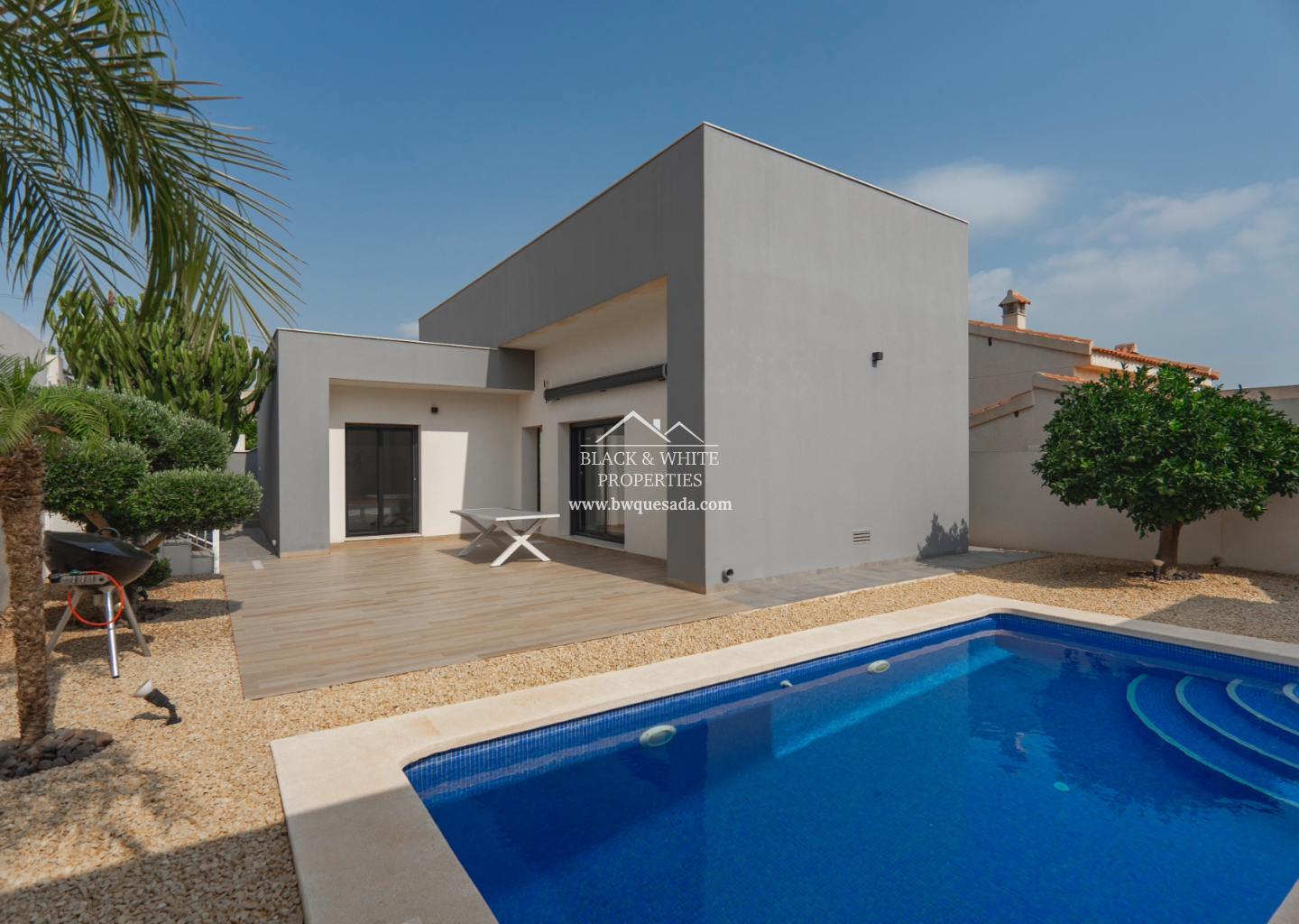 The villa combines modern design with practical elegance, creating bright and welcoming interiors that flow naturally into outdoor areas. Enjoy a private pool, several patios, and a rooftop solarium boasting panoramic views over the surrounding area and La Marquesa Golf Course. Whether as a permanent home, holiday retreat, or investment opportunity, this property offers the perfect blend of lifestyle and functionality.