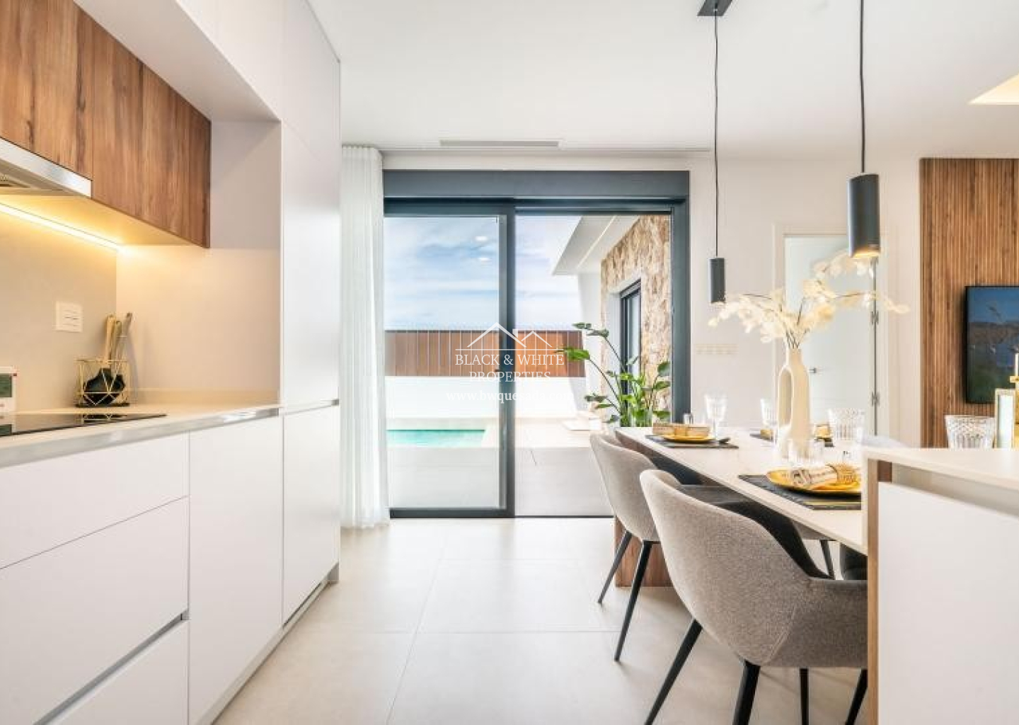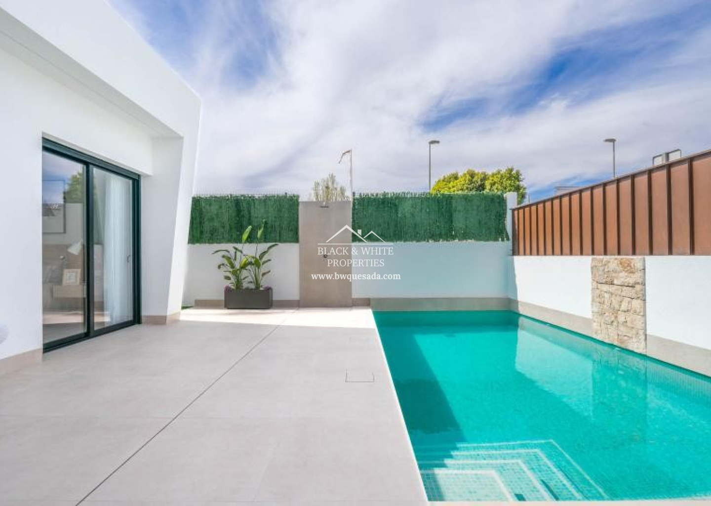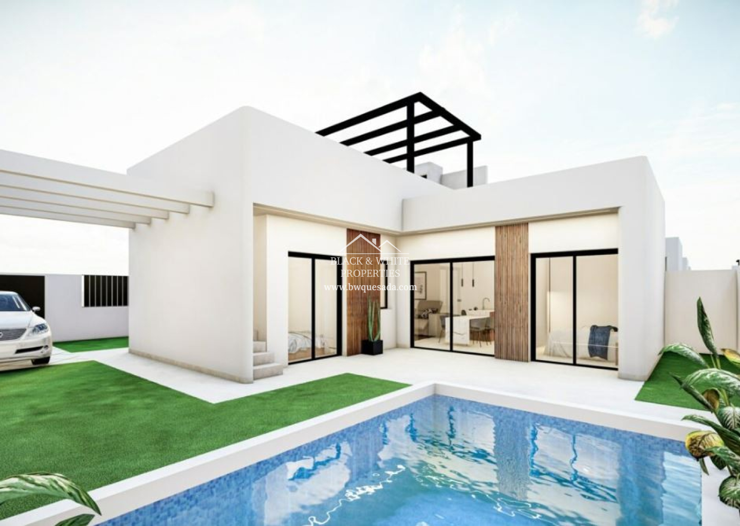The homes come fully equipped with a private swimming pool and outdoor shower, rooftop solarium, fitted kitchen and bathrooms with LED mirrors, built-in wardrobes with drawers, interior and exterior lighting, and pre-installation for air conditioning. The development is located in the sought-after area of Roldán (Murcia), next to two beautiful parks in a quiet residential setting.