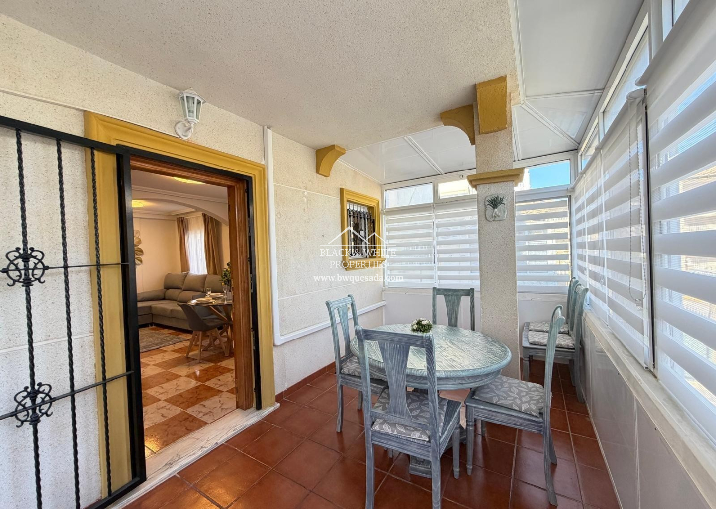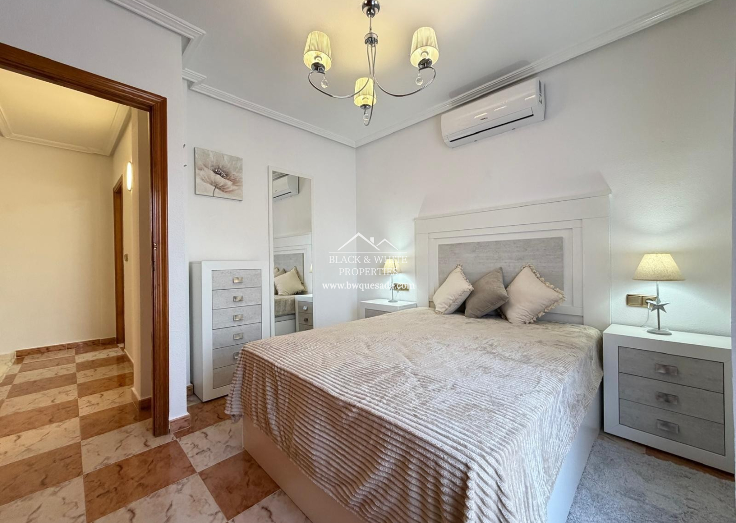 Cozy townhouse for sale in Orihuela Costa, in the Las Filipinas area, located in a quiet and well-maintained residential complex with a communal swimming pool and green areas. The property is in very good condition after an aesthetic renovation and is ready to move into. From the terrace and the solarium you can enjoy magnificent open views of the mountains and the sea. The property is sold furnished and equipped with appliances, as shown in the photographs.