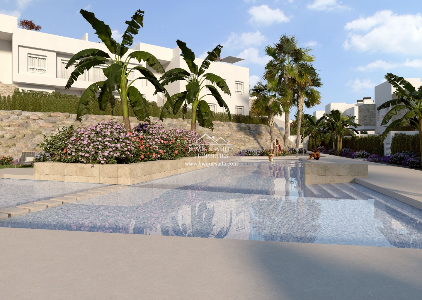 Bungalows de 2 habitaciones o 3 a elegir variando el precio y 2 baños, distribuidos en 3 bloques alrededor de la piscina comunitaria, dándole a todos ellos una espectacular vista.