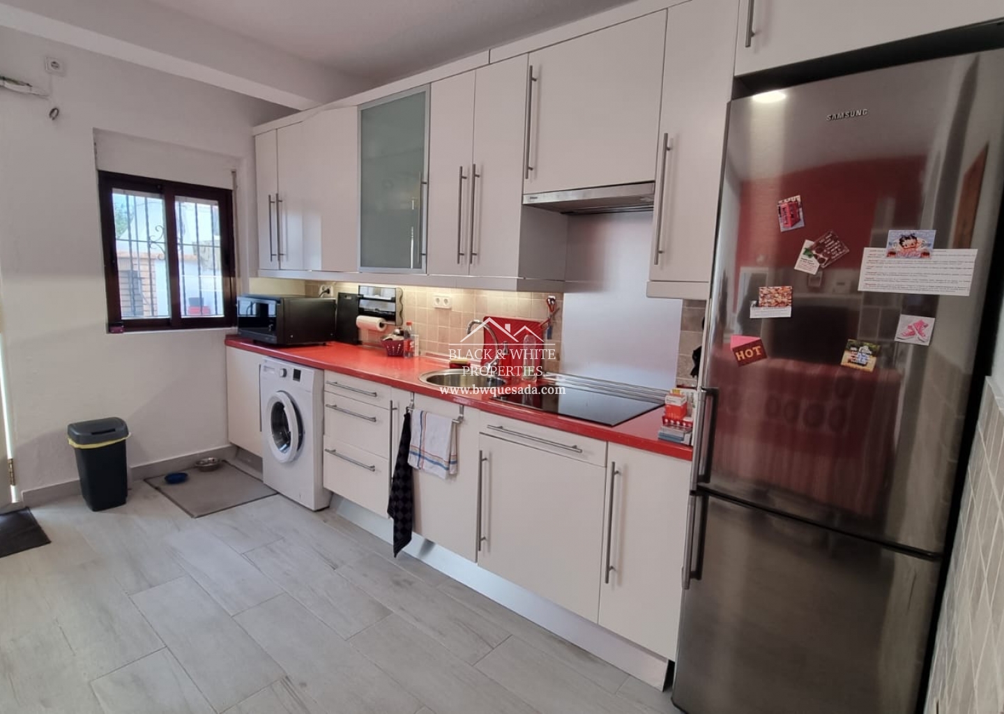 Bonito y acogedor bungalow situado en La Torreta, Torrevieja, cuenta con 1 dormitorio, 1 baño, una pequeña zona de trastero y jardín con barbacoa. Este bungalow está reformado y listo para entrar a vivir.