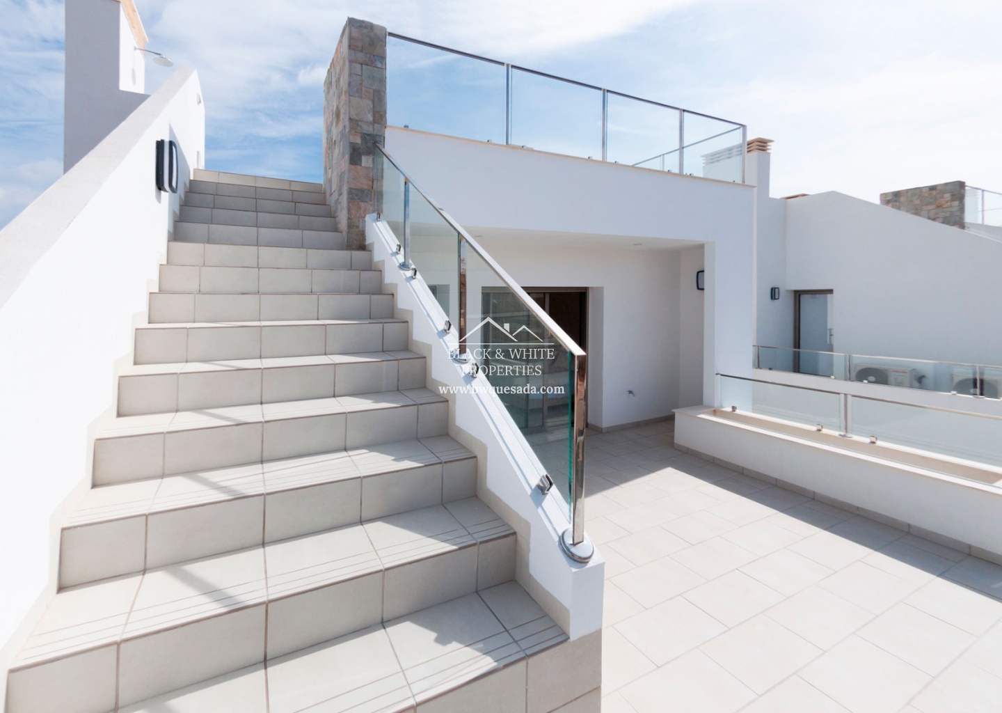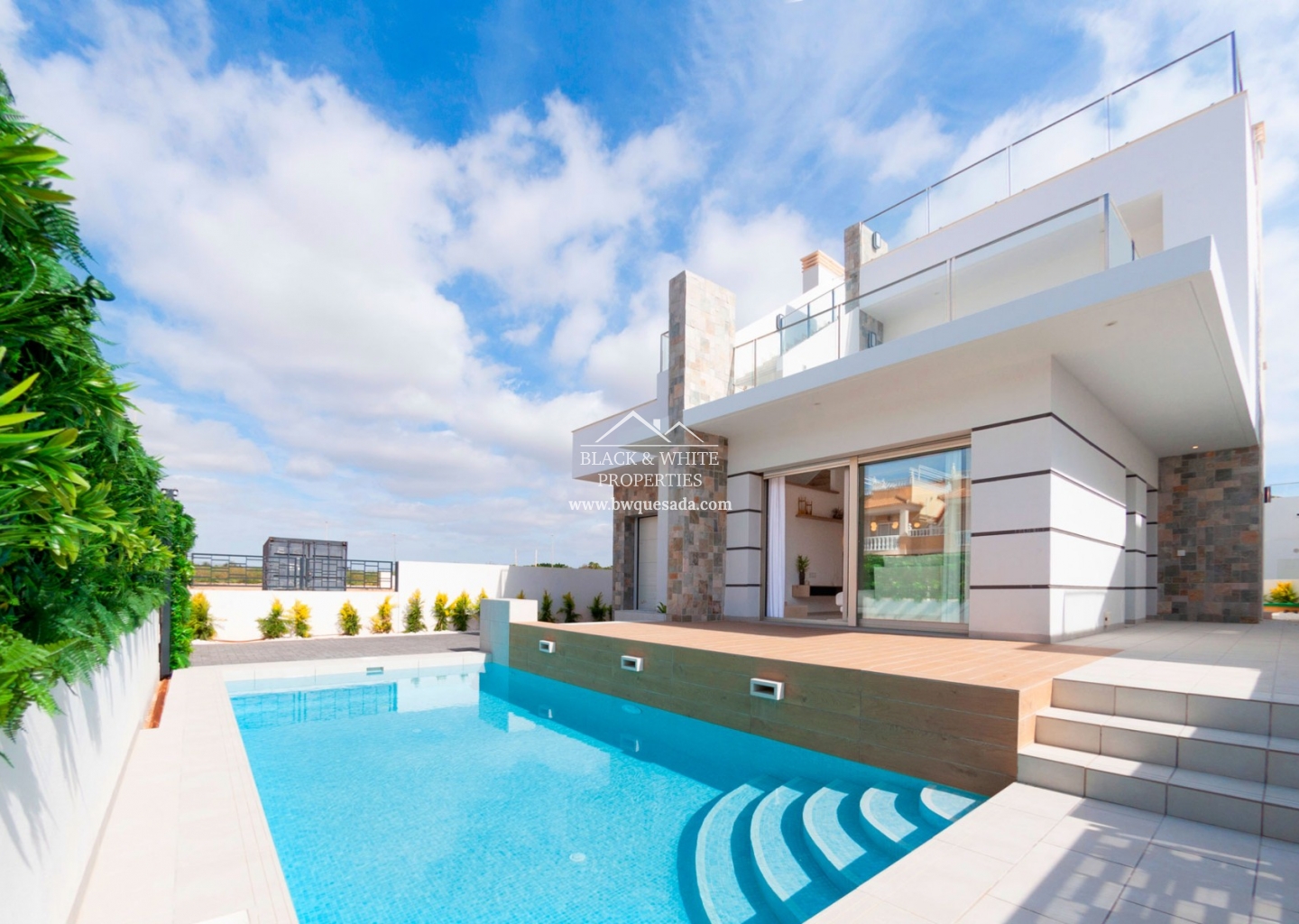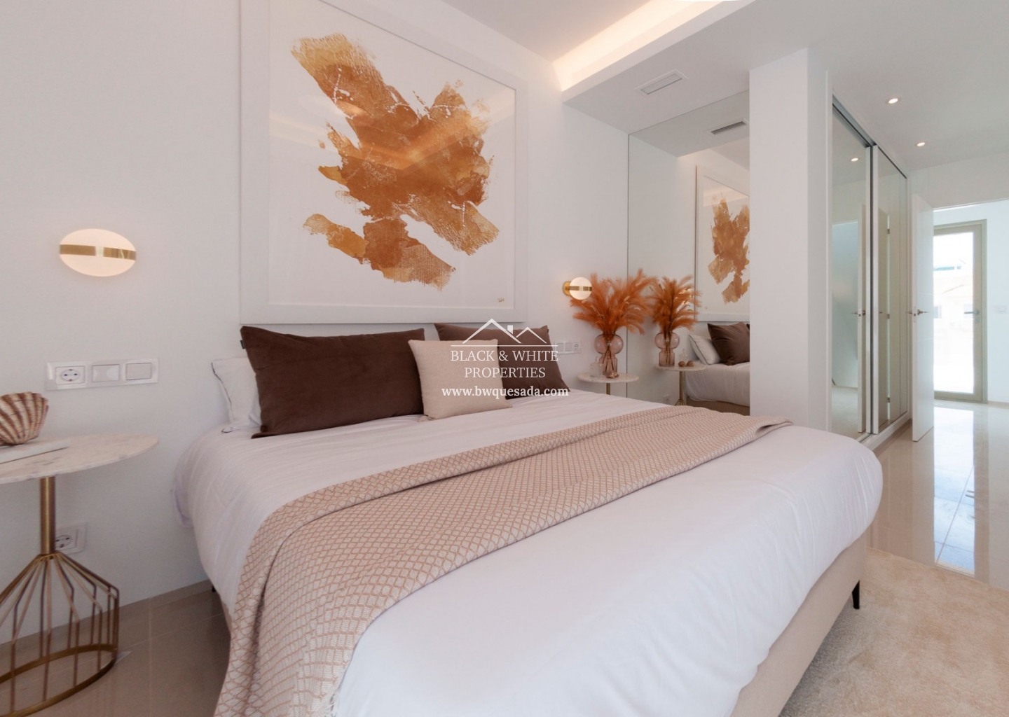 Os traemos esta magnífica promoción con diseños de líneas rectas en el que se han mezclado el blanco de la fachada con el efecto de la piedra. La villa tiene dos plantas con un bonito jardín privado con piscina, amplias terrazas y una espaciosa azotea. La vivienda consta de 3 dormitorios y 3 baños, dos de ellos en suite. Además, tiene un garaje que está conectado con la casa. La ubicación de estas villas es excelente: a sólo 10 minutos a pie de una de las playas más bonitas de la Costa Cálida. También, encontrará todas las comodidades a su alcance. Si está interesado o necesita más información no dude en contactarnos.