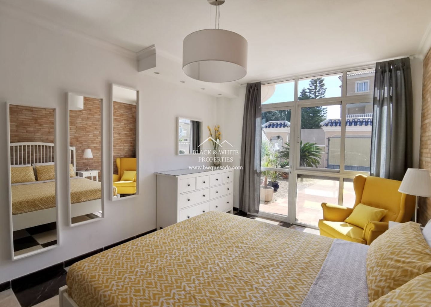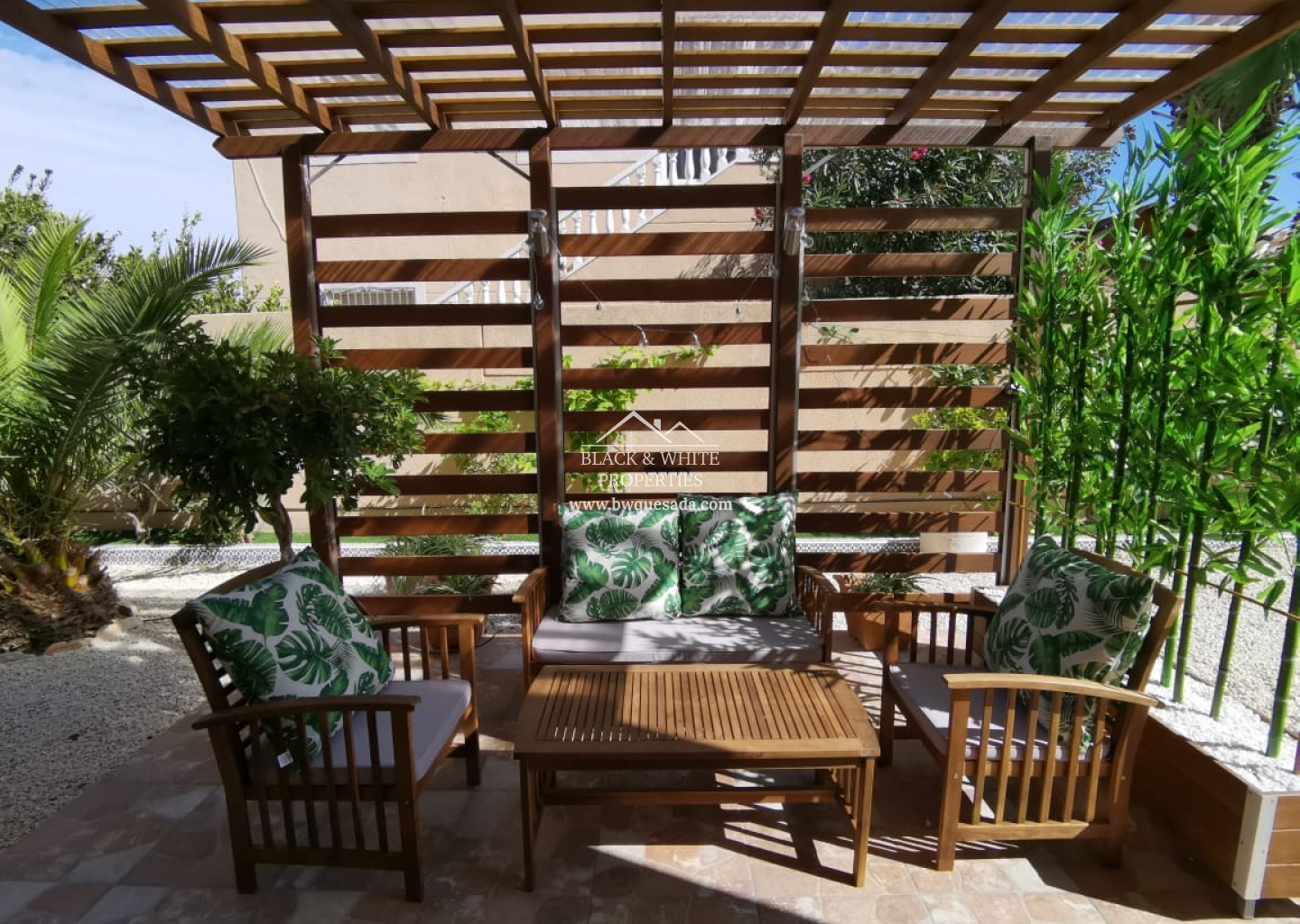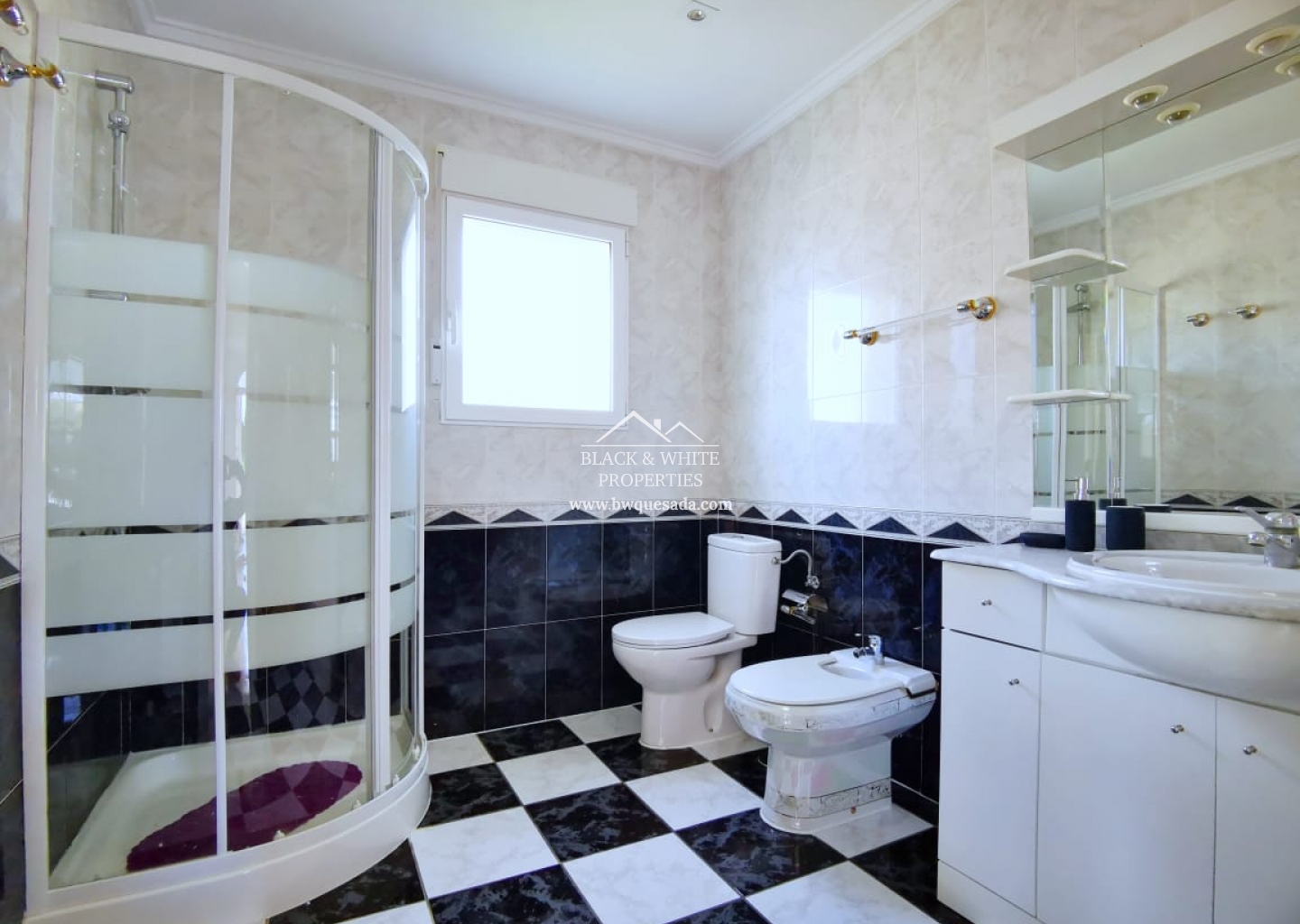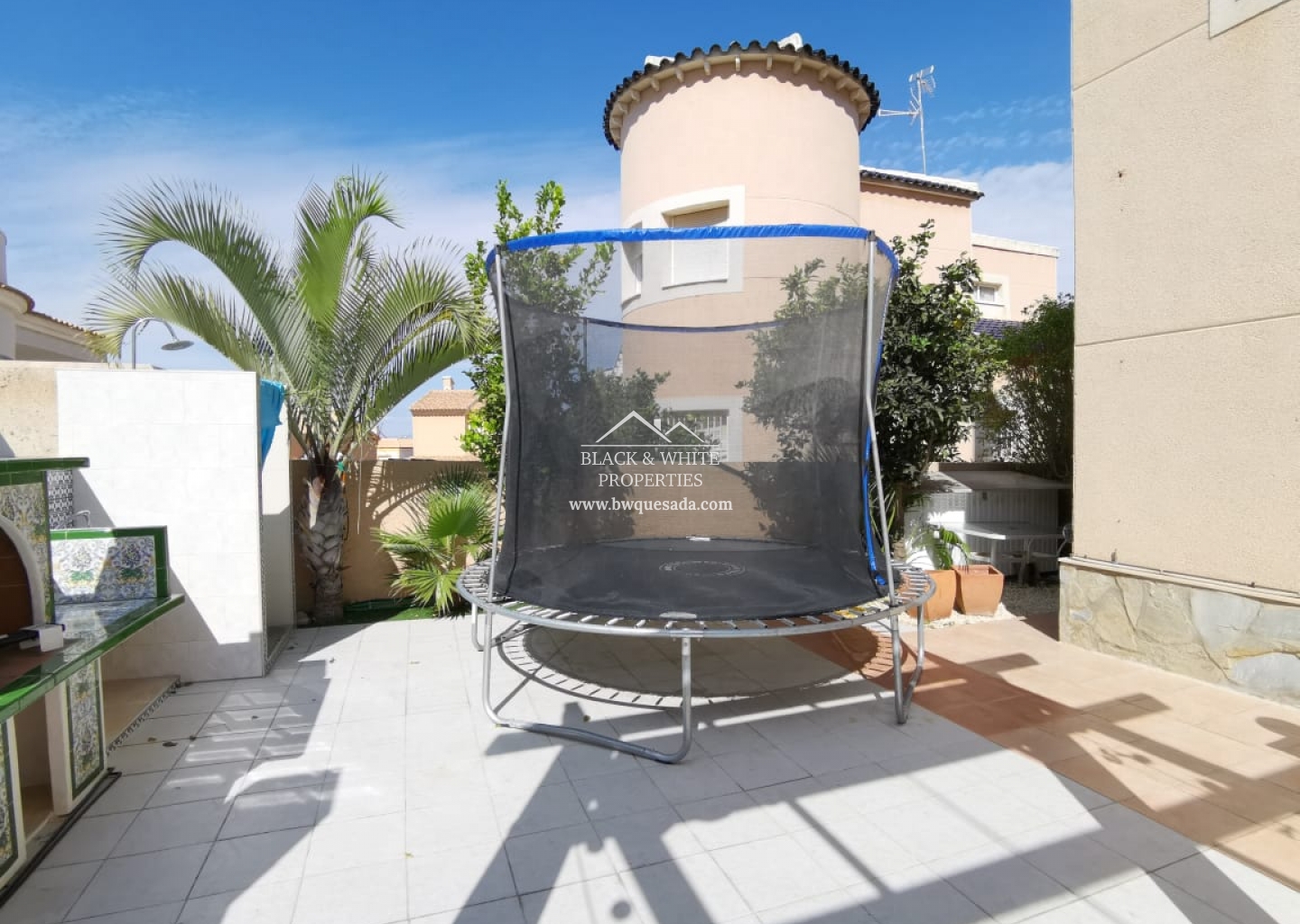 La villa está situada en una de las zonas más exclusivas de Orihuela Costa, en los Altos, una zona rodeada de chalets para disfrutar los 365 días del sol y poder disfrutar de la piscina durante todo el año, ya que es climatizada para poder ser usada tanto en verano como en invierno. Su grande parcela está muy equipada con todo lo necesario para poder estar con la familia y amigos, cuenta con barbacoa y horno de leña, zona de chill out, colchoneta para los más pequeños, tumbonas y una gran mesa donde poder comer. La casa se distribuye en 3 plantas: En la planta baja está el salón, la cocina independiente, un baño y dos dormitorios. En la primera planta un salón con cocina, un baños, una terraza acristalada, dos dormitorios y una gran terraza con vistas. En la segunda planta un dormitorio independiente con baño. El chalet está muy bien equipado, con todas las comodidades y con aire acondicionado en las estancias principales.