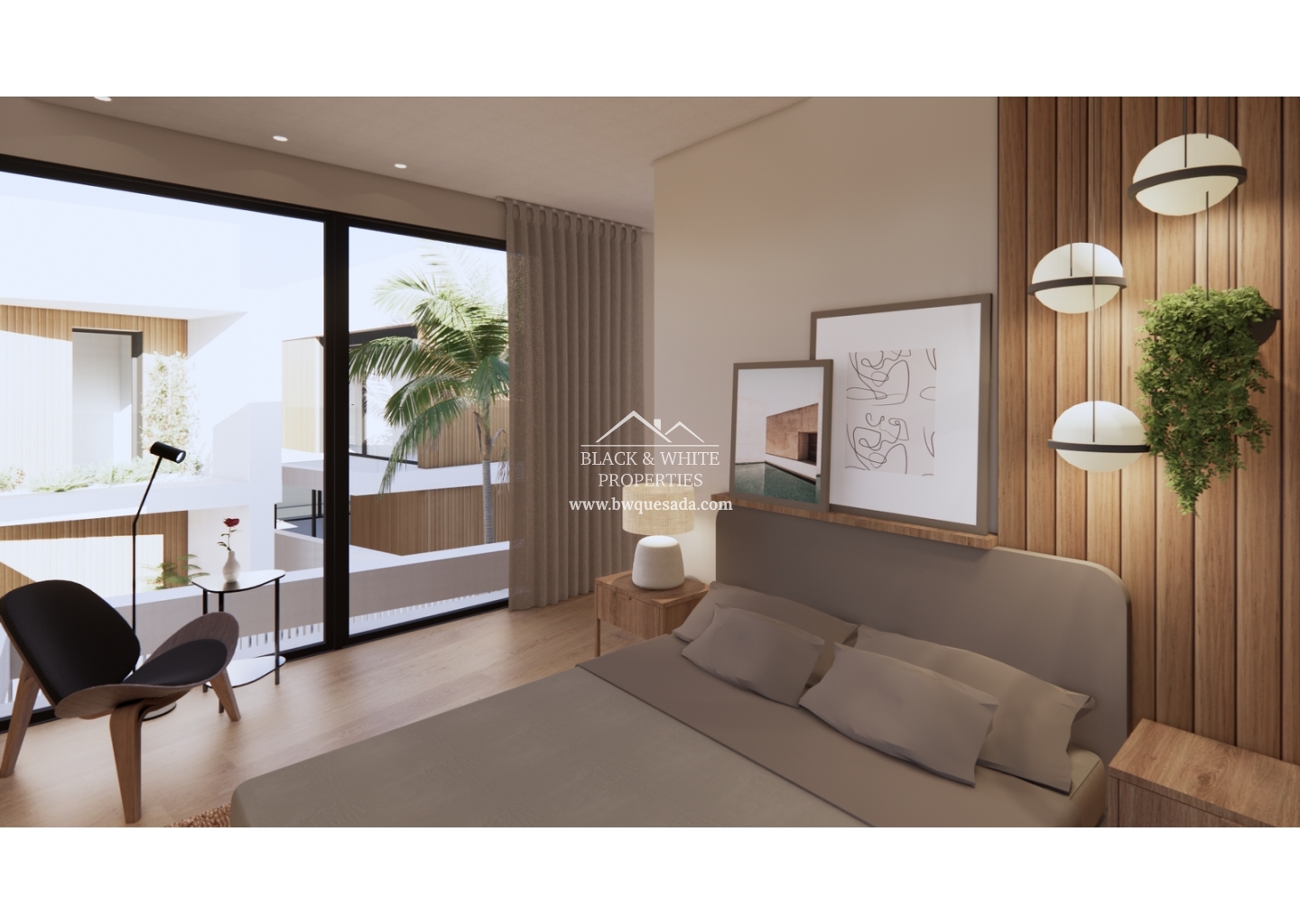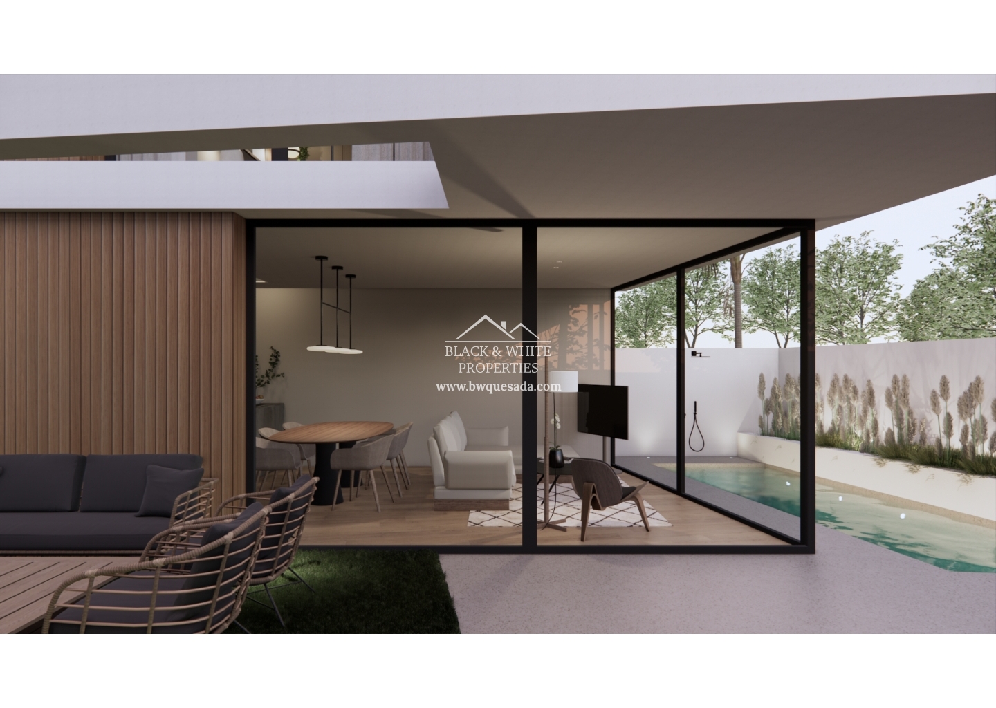 Os presentamos este exclusivo conjunto de 4 villas independientes situadas en Torre de la Horadada, Alicante. Cada villa tiene su piscina privada y solárium. Las piscinas, tienen un diseño único. Sus atractivos acabados en gresite en tonos blanco, gris y arena, junto con la iluminación interior, crean un escenario acuático sereno y encantador. Además, cada piscina se complementa con una ducha exterior. En el interior, los pavimentos de gres porcelánico rectificado con un acabado imitación madera enriquecen los espacios, mientras que el efecto hormigón en el exterior refleja un diseño moderno y sofisticado. Además, todos los aseos cuentan con alicatados de la reconocida marca PORCELANOSA. Por otro lado, se ha incorporado césped artificial en las parcelas y en los solárium, y preinstalado barbacoas en estos últimos para aquellos momentos de relax al aire libre. Los precios comienzan desde 580.000€ y la entrega será para diciembre de 2024.
