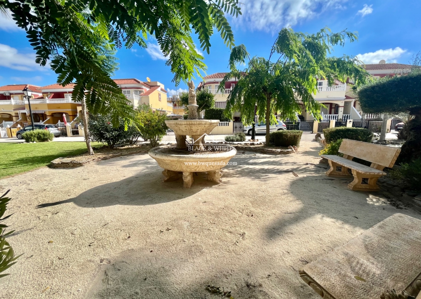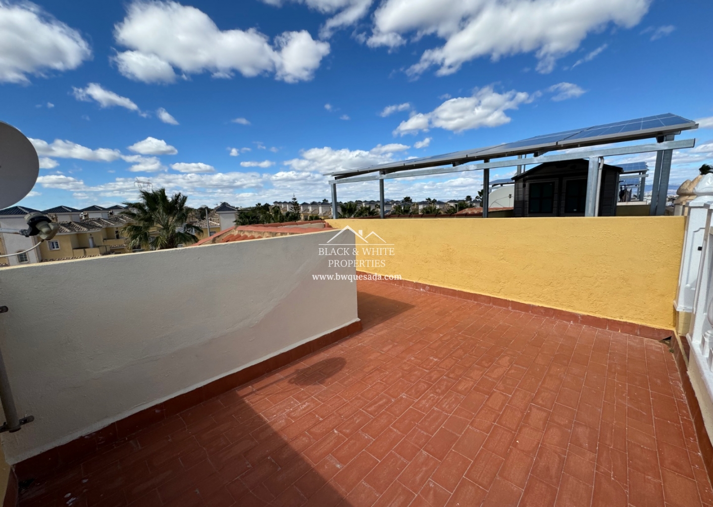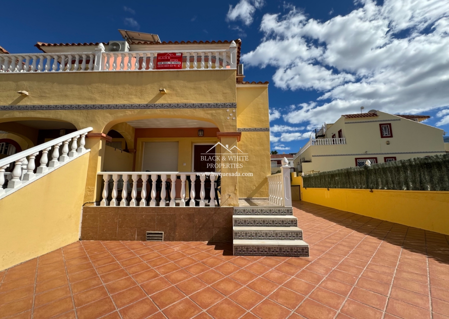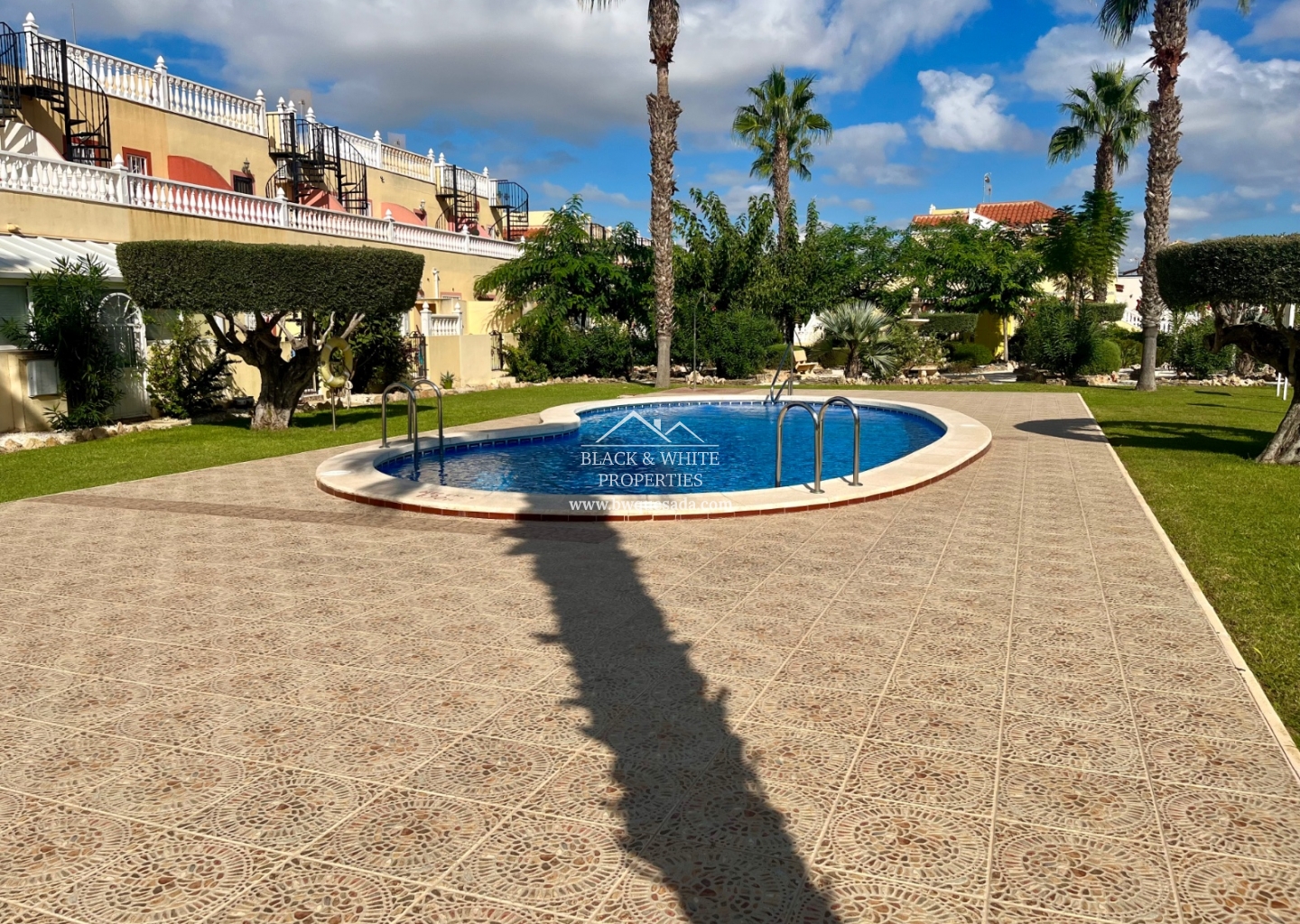 Tenemos el placer de presentaros este magnífico adosado con parcela en esquina la cual le brinda un buen tamaño de jardín, donde habría posibilidad de poner tu propia piscina privada. Este adosado cuenta con 3 dormitorios y 2 baños. En la primera planta tenemos un comedor-salón, con cocina, un baño con ducha y el primer dormitorio. La puerta de la cocina da salida al patio trasero y este también nos lleva a la bonita piscina comunitaria. En la segunda planta. contamos con 2 dormitorios uno de ellos el principal y con un bonito baño. Ambos dormitorios tienen balcón y uno de ellos te llevará al solarium con vistas despejadas a la calle o a la piscina y jardines. Se vende amueblado, tiene aire acondicionado y está listo para entrar a vivir. Si estás interesado, no lo dudes y contáctanos para concertar una visita.