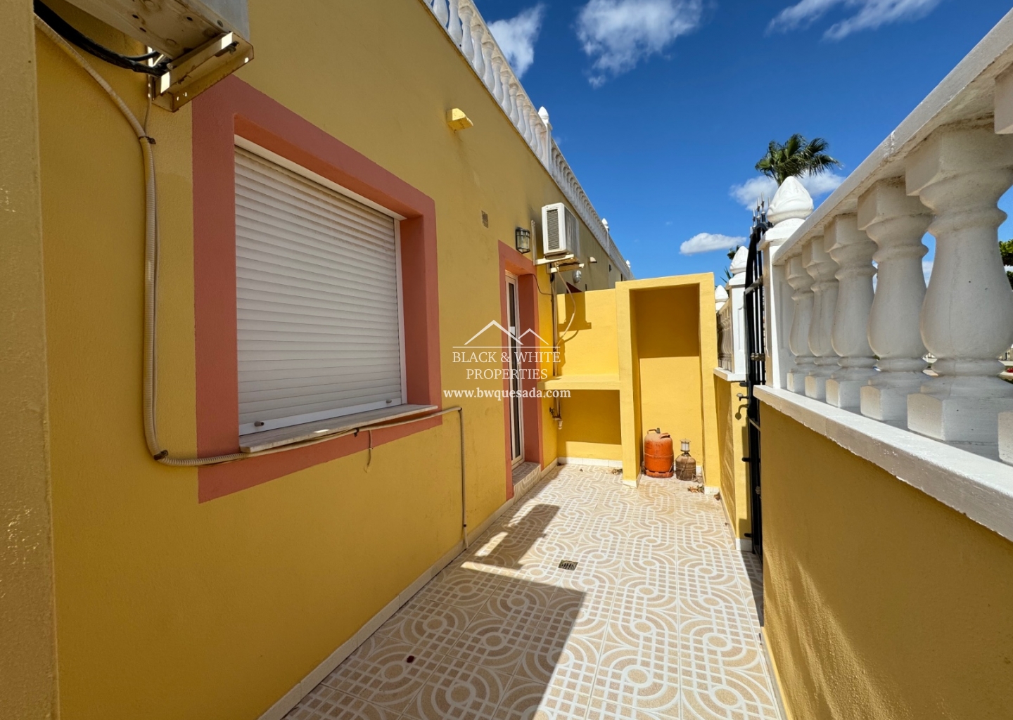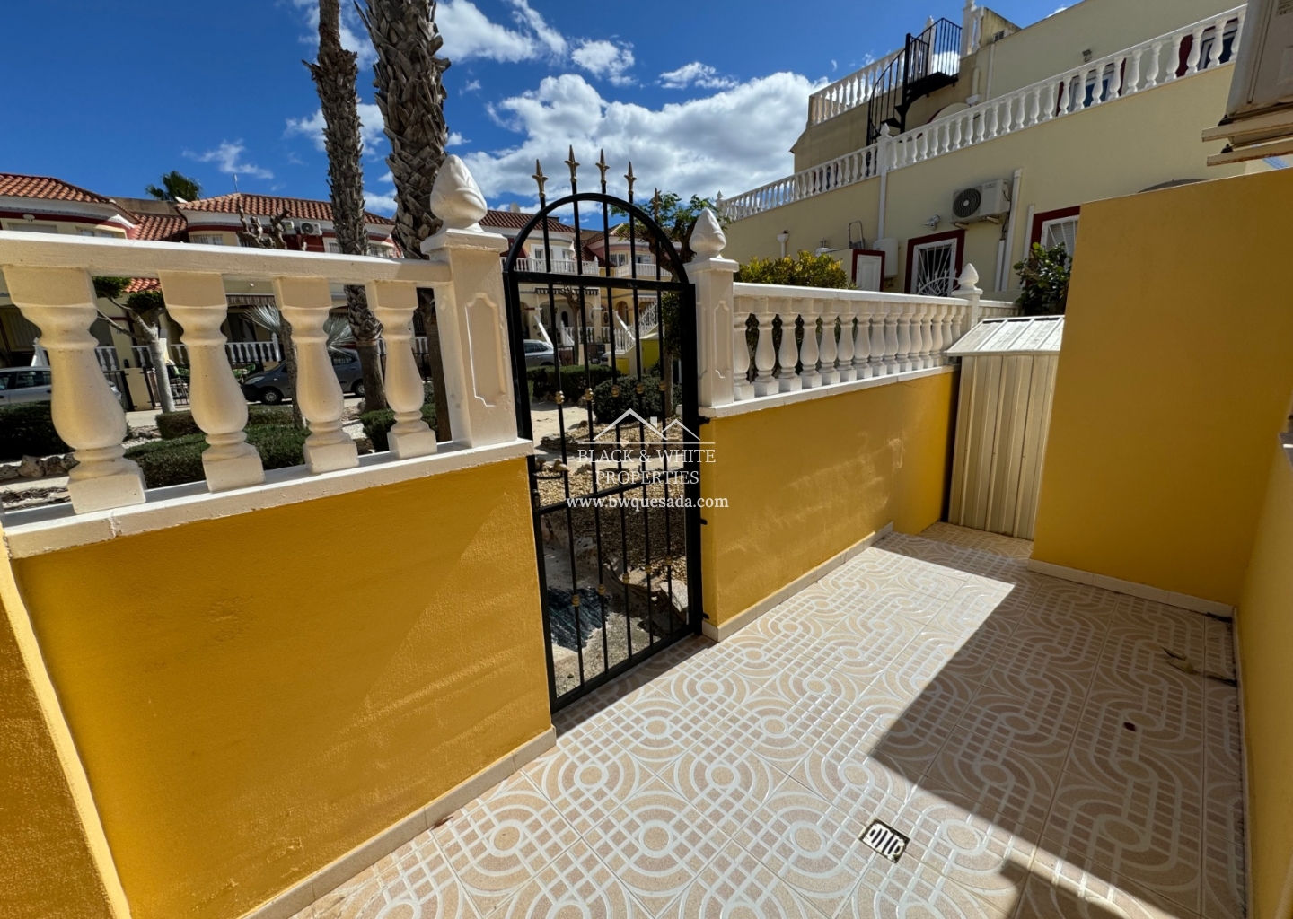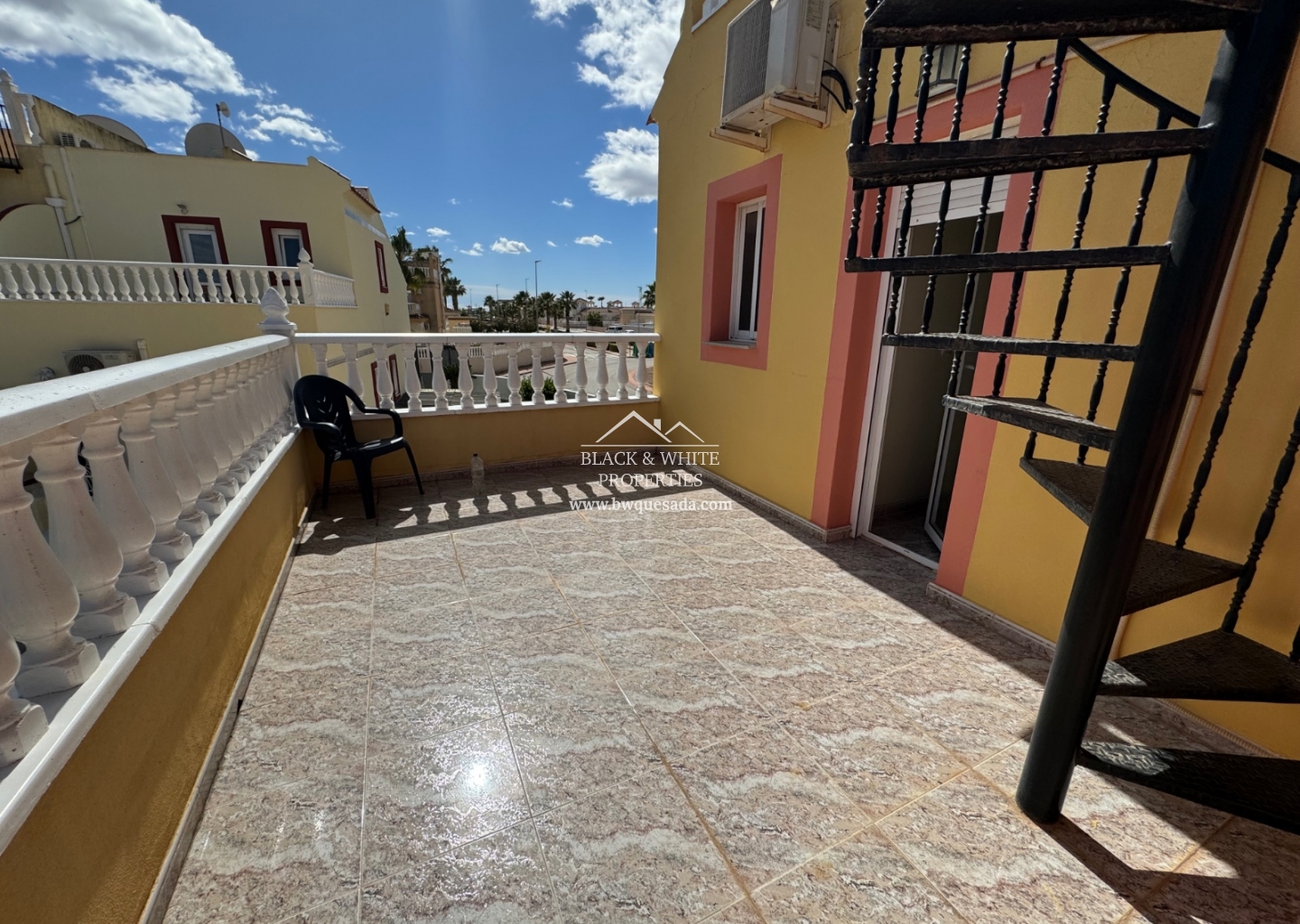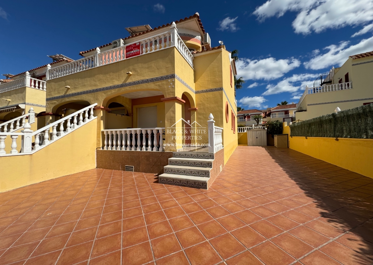 Tenemos el placer de presentaros este magnífico adosado con parcela en esquina la cual le brinda un buen tamaño de jardín, donde habría posibilidad de poner tu propia piscina privada. Este adosado cuenta con 3 dormitorios y 2 baños. En la primera planta tenemos un comedor-salón, con cocina, un baño con ducha y el primer dormitorio. La puerta de la cocina da salida al patio trasero y este también nos lleva a la bonita piscina comunitaria. En la segunda planta. contamos con 2 dormitorios uno de ellos el principal y con un bonito baño. Ambos dormitorios tienen balcón y uno de ellos te llevará al solarium con vistas despejadas a la calle o a la piscina y jardines. Se vende amueblado, tiene aire acondicionado y está listo para entrar a vivir. Si estás interesado, no lo dudes y contáctanos para concertar una visita.