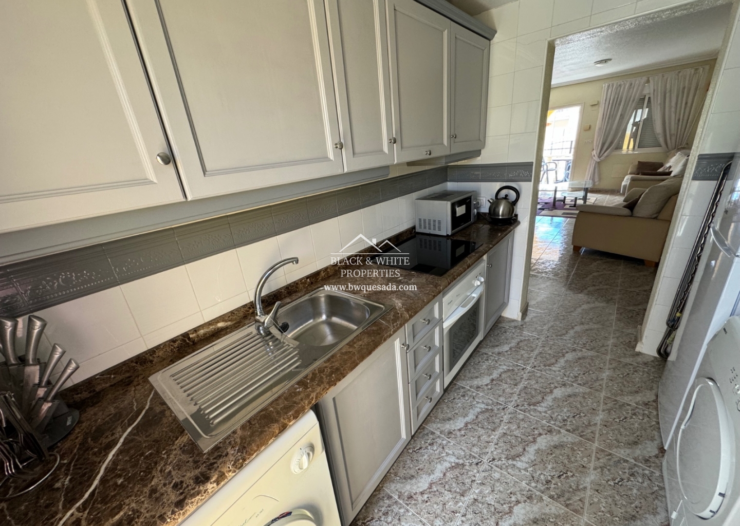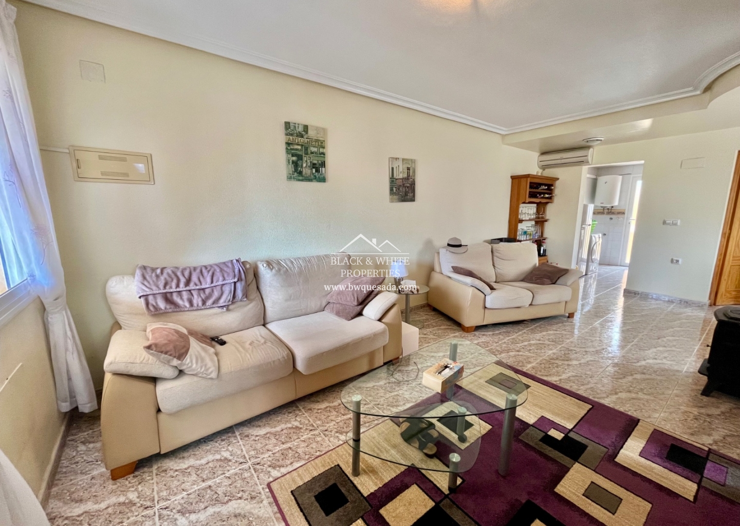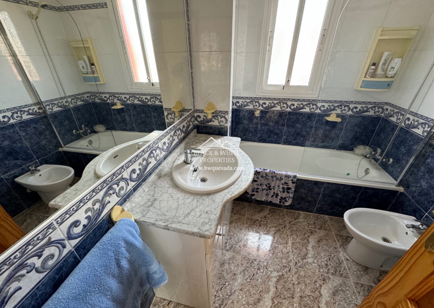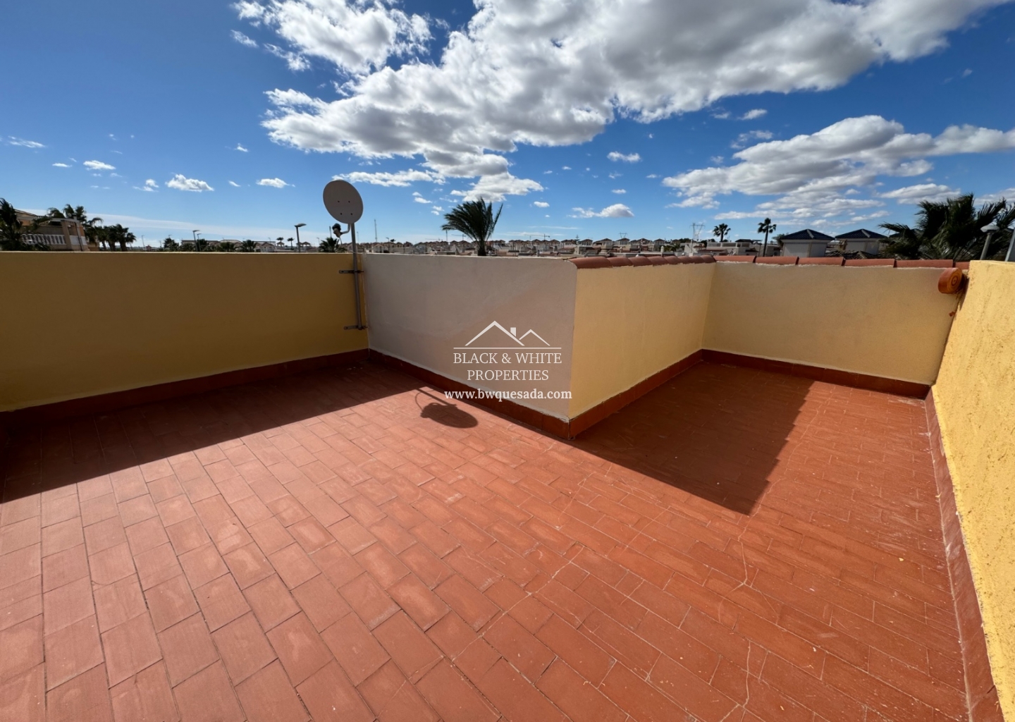 Tenemos el placer de presentaros este magnífico adosado con parcela en esquina la cual le brinda un buen tamaño de jardín, donde habría posibilidad de poner tu propia piscina privada. Este adosado cuenta con 3 dormitorios y 2 baños. En la primera planta tenemos un comedor-salón, con cocina, un baño con ducha y el primer dormitorio. La puerta de la cocina da salida al patio trasero y este también nos lleva a la bonita piscina comunitaria. En la segunda planta. contamos con 2 dormitorios uno de ellos el principal y con un bonito baño. Ambos dormitorios tienen balcón y uno de ellos te llevará al solarium con vistas despejadas a la calle o a la piscina y jardines. Se vende amueblado, tiene aire acondicionado y está listo para entrar a vivir. Si estás interesado, no lo dudes y contáctanos para concertar una visita.