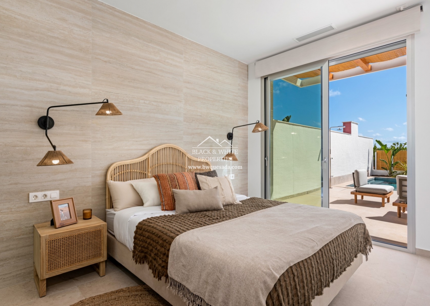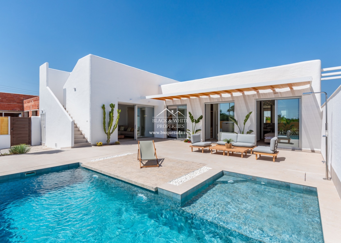 Os presentamos estas hermosas villas situadas en Benijófar, con precios desde 419.900 € y con esencia del mediterráneo. Estas villas cuentan con 3 dormitorios y 2 baños en parcelas de hasta 300m2 las cuales cuentan con piscina privada, persianas eléctricas en dormitorios, vitrocerámica y campana extractora en cocina, baños completos e iluminación interior y exterior. Si está interesado, no dude en contactarnos para obtener más información.