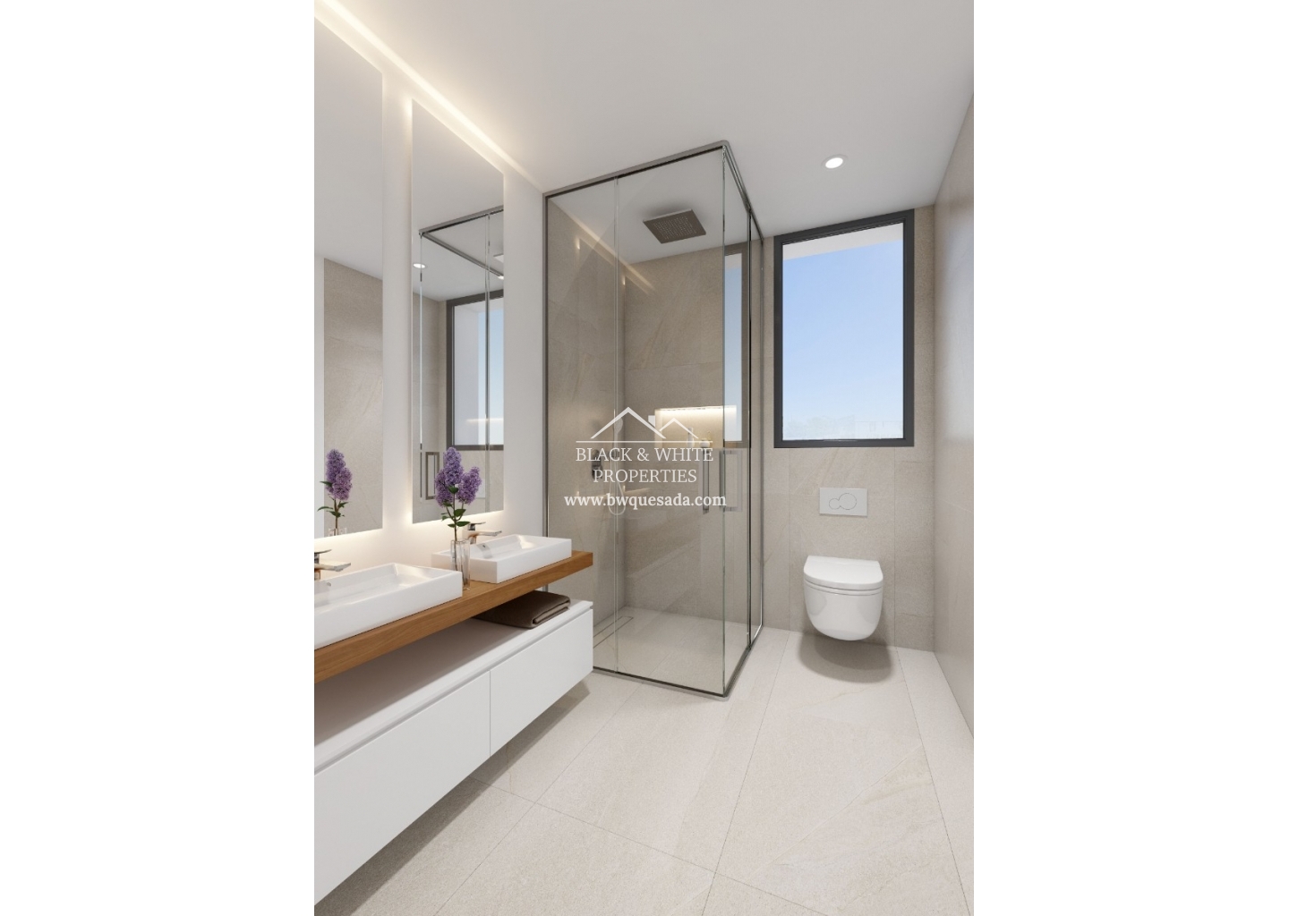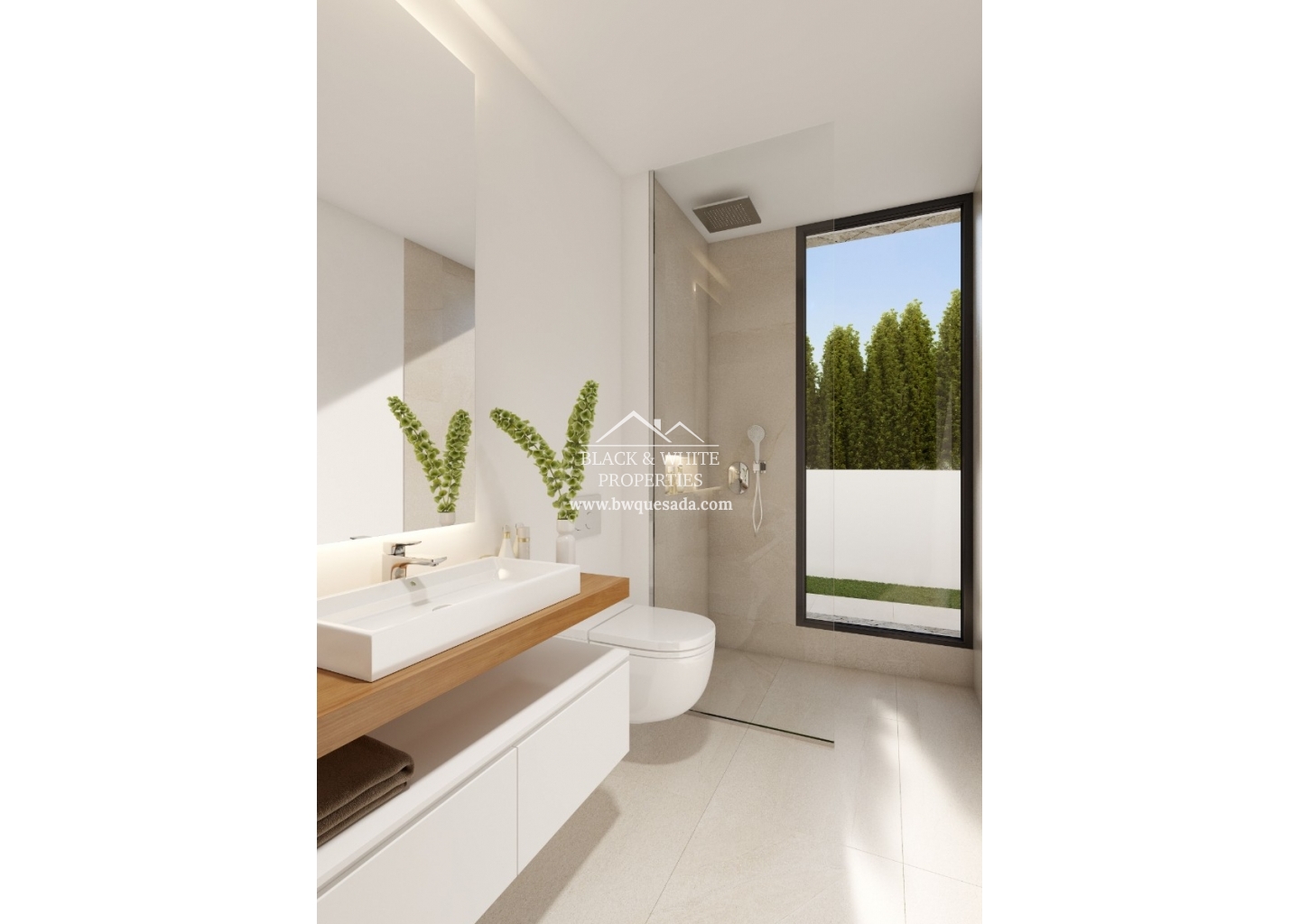 Promoción del mismo residencial que referencias (BW-1344 / BW-1345) Modelo tipo 3. Villas de obra nueva independientes con piscina privada, jardín y barbacoa. Estas villas cuentan con una superficie de 150 m2 construidos de vivienda y 452,79 m2 de parcela. La casa, cuenta con 2 plantas, alta y baja, disponen de 3 dormitorios y 3 baños, salón / comedor con cocina integrada, la cual se entregará completamente amueblada y equipada con la placa de inducción, la campana extractora, lavavajillas, horno, frigorífico y microondas. La vivienda se entrega con instalación domótica e instalación de aire acondicionado frío / calor para 2 máquinas, una en planta baja y otro en planta alta.