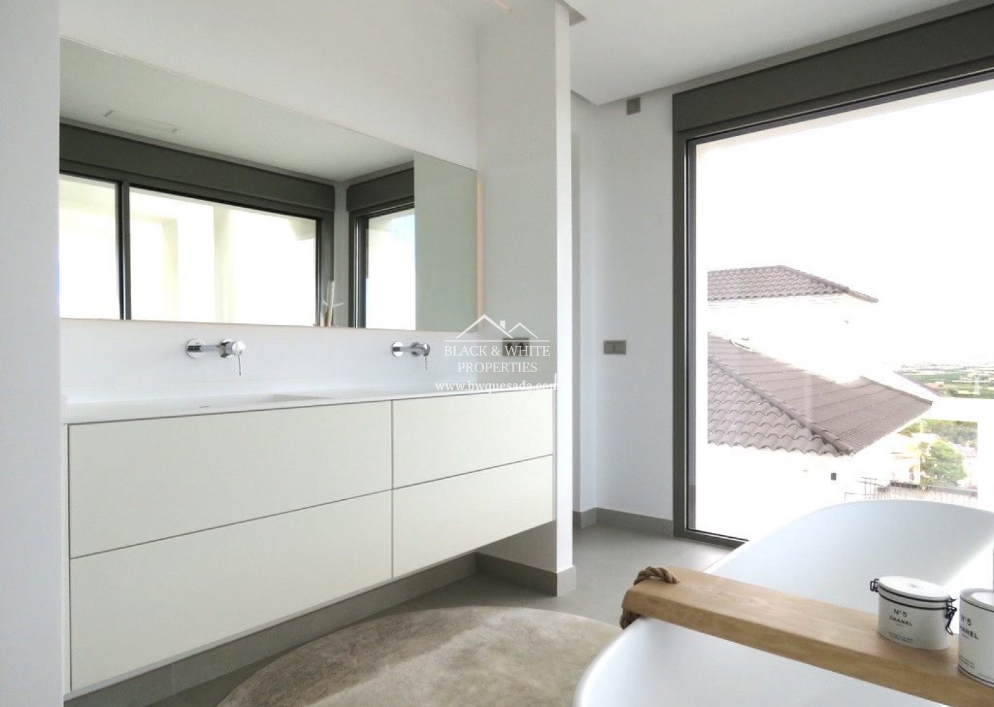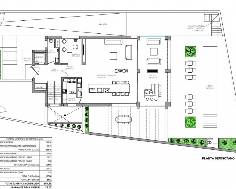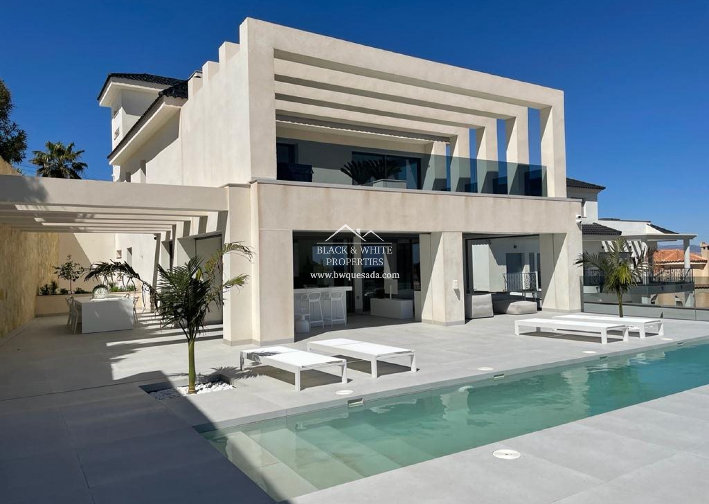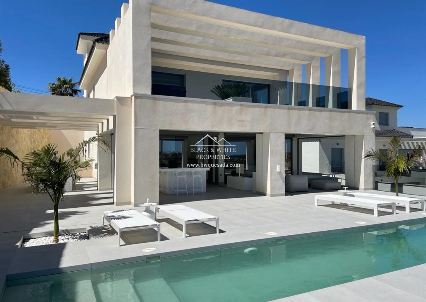 Os presentamos esta espectacular e impecable villa con unas magníficas vistas. Esta villa está equipada con la última tecnología y todos los materiales han sido cuidadosamente elegidos. En la planta baja se encuentra la cocina, el salón y el comedor, el lavadero y también la terraza cubierta. En la primera planta tenemos 3 dormitorios y 3 baños. El nivel del garaje es, por supuesto, el garaje con espacio para 8 coches, una zona de entretenimiento y el cuarto dormitorio y baño. Todos los niveles de la casa tienen calefacción por suelo radiante y la casa también dispone de aire acondicionado. El ascensor te lleva desde el garaje al nivel superior de la casa. Esta magnífica villa también está equipada con paneles solares. Y por si fuera poco, también cuenta con piscina de 12x2 .