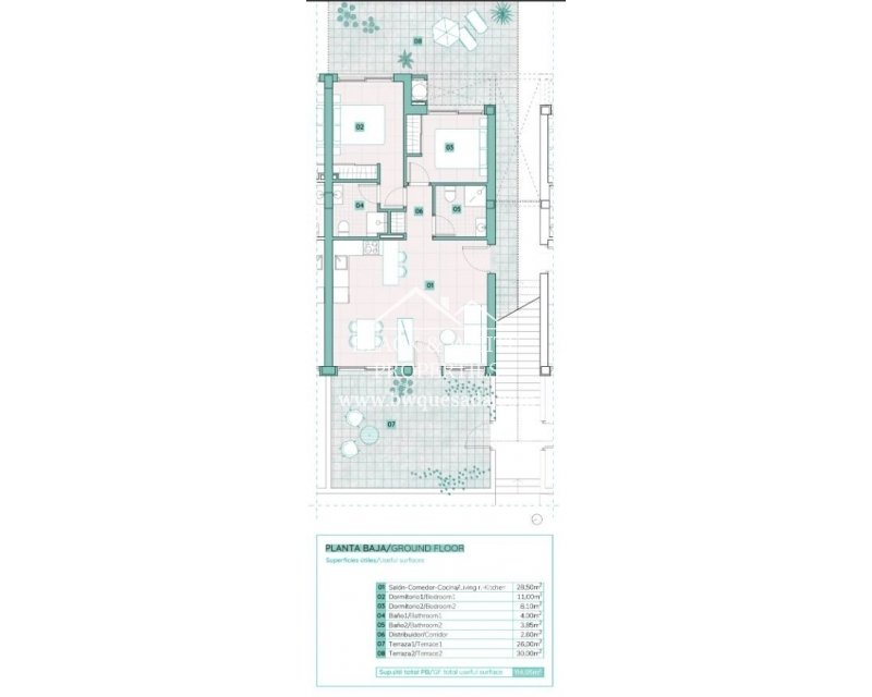 Tenemos el placer de presentaros estos estupendos apartamentos en construcción situados en Torrevieja. Los apartamentos de planta baja tienen jardín y los apartamentos de la planta superior tienen un balcón y solárium. Las viviendas cuentan con dos dormitorios y dos baños, con la opción de un tercer dormitorio a la medida de sus necesidades. Cada apartamento ofrece vistas espectaculares de la laguna rosa de Torrevieja. Lás áreas comunes de este residencial son un oasis privado! Tienen piscina infinita con vistas a laguna rosa, parque infantil para los pequeños o también puedes pasear por las áreas verdes y ajardinadas. Este residencial se sitúa a minutos de las playas de Torrevieja, el bullicioso centro comercial Zenia Boulevard, y una variedad de servicios como supermercados, farmacias y restaurantes. La proximidad a campos de golf y la salida de la autopista al aeropuerto de Alicante garantiza un fácil acceso a todo lo que amar.